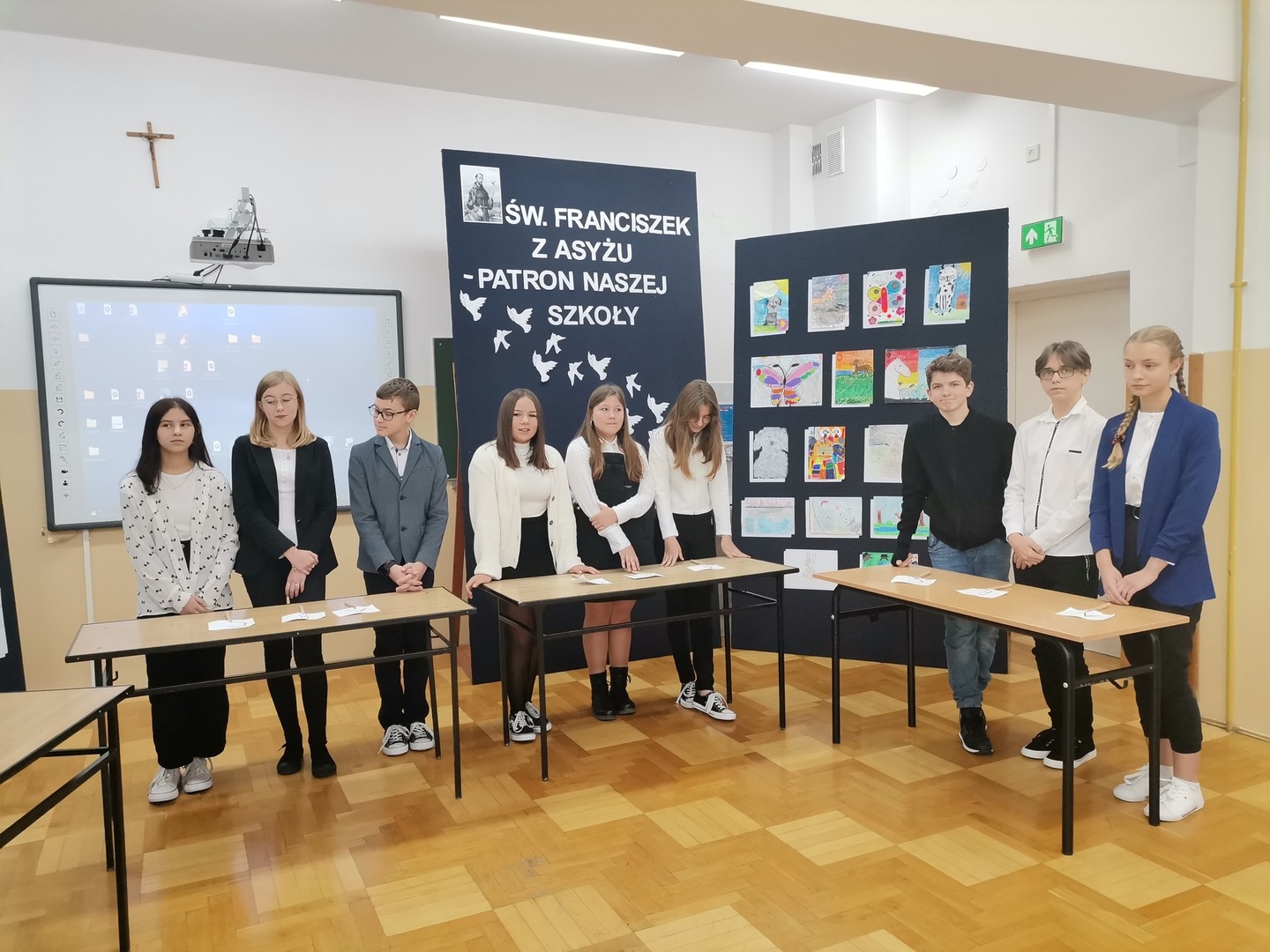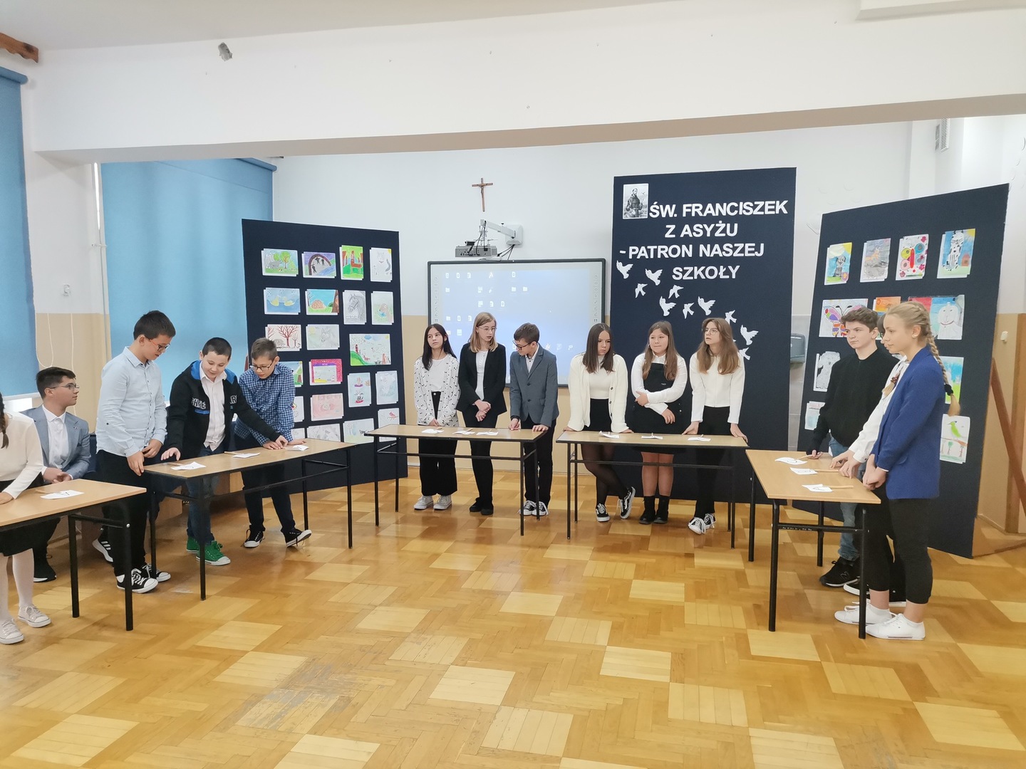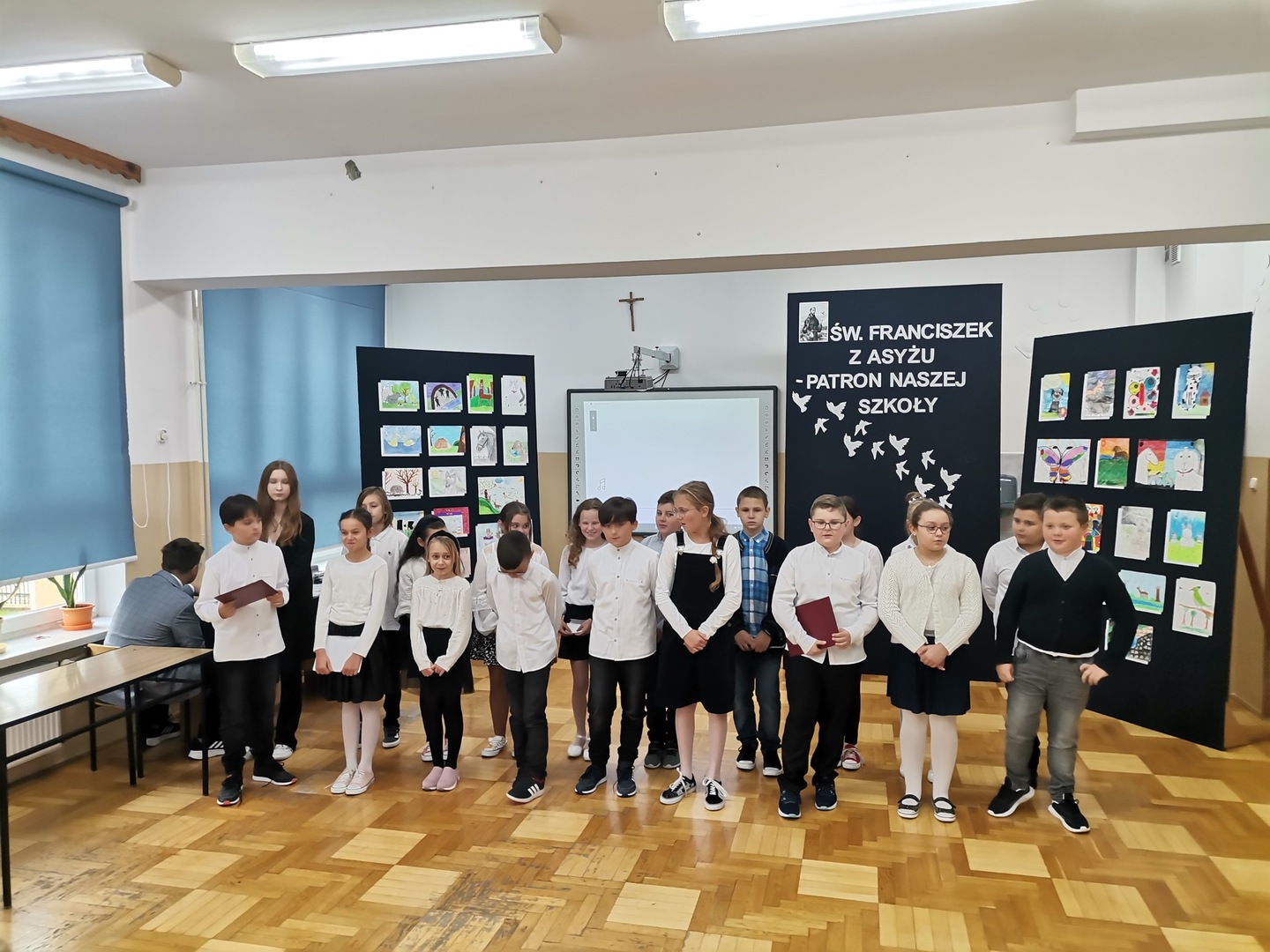 Jak co roku 4 października nasza społeczność szkolna obchodziła Święto Patrona szkoły - św. Franciszka z Asyżu. W tym dniu odbył się uroczysty apel przygotowany przez klasę czwartą. Uczniowie przypomnieli krótko sylwetkę naszego patrona, zaprezentowali 14 mądrych rad świętego Franciszka z Asyżu na dzisiejsze czasy oraz jego ekologiczny dekalog.
