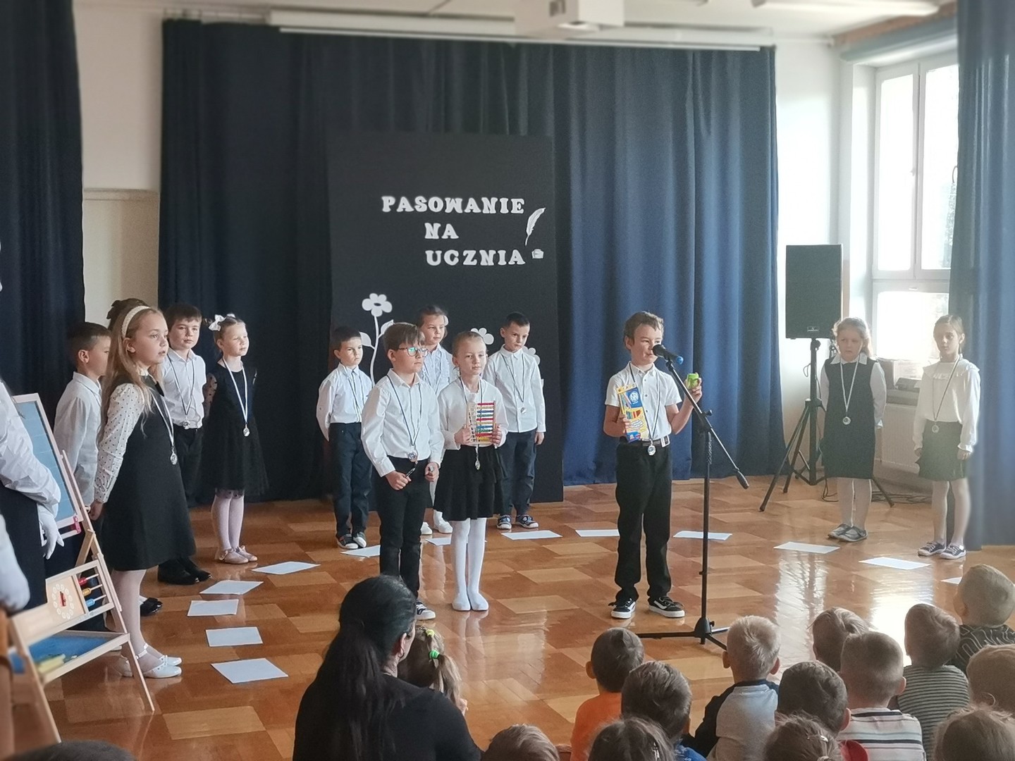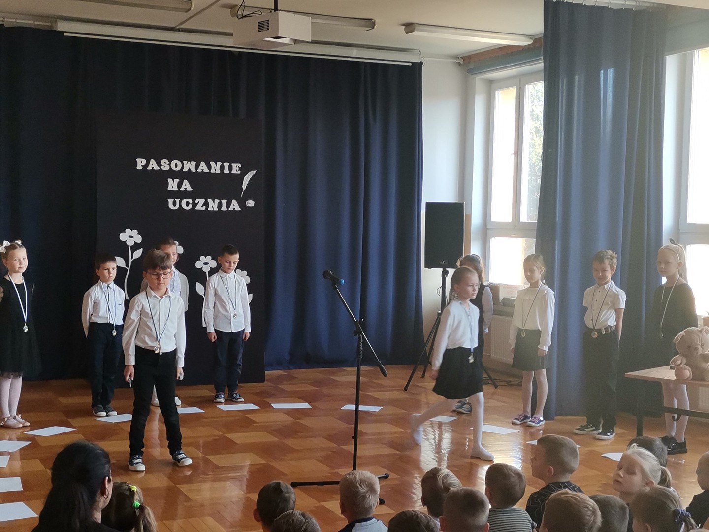Dnia 27 października odbyła się uroczystość pasowania na ucznia. W tym dniu uczniowie oficjalnie zostali przyjęci do grona uczniów szkoły. Najważniejszą częścią było ślubowanie i pasowanie wielkim ołówkiem. Pierwszoklasiści pokazali także, że potrafią pięknie śpiewać i recytować.