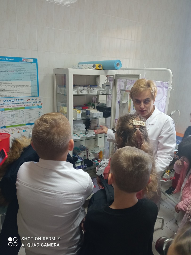 Dnia 09 listopada klasy druga i trzecia wybrały się z opiekunami na wycieczkę do Ośrodka Zdrowia w Rozborzu w ramach projektu „ Zawsze razem”. Pani Anna Szczepankiewicz oprowadziła dzieci ,pokazała gabinet lekarza, pokój zabiegowy i aptekę. Opowiedziała o pracy lekarza, pań pielęgniarek oraz o tym jak należy dbać o swoje zdrowie. Na pewno jeszcze kiedyś odwiedzimy Ośrodek Zdrowia – oczywiście w celach edukacyjnych. Wiemy już, że praca lekarza i pielęgniarki jest nie tylko ciekawa , ale też bardzo ważna oraz, że nie należy się bać wizyt i zabiegów medycznych – pomagają naszemu zdrowiu. Na pamiątkę spotkania dzieci dostały naklejki i lizaki.