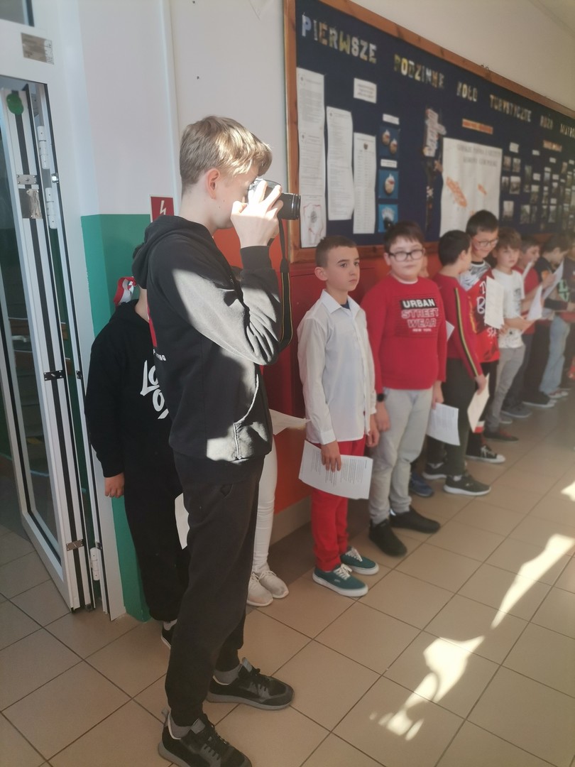 W listopadzie uczniowie klas VIII wraz z wychowawcami przygotowywali akademię z okazji Święta Niepodległości . Zespół zajmujący się techniczną obsługą uroczystości, postanowił dokumentować wydarzenia związane z tą uroczystością. Zapoznali się z instrukcją obsługi aparatu fotograficznego oraz kamery. Wysłuchali też uwag dotyczących pracy z kamerą, oświetlaniem sceny i budowaniem scenografii. Następnie z dużym zaangażowaniem podjęli się dokumentowania podjętych działań w szkole. Widać było, że sprawia im to dużo przyjemności i radości. Uczniowie z innych klas pytali, czy również będą mogli uczyć się obsługi tego typu sprzętu. Dyrektor Szkoły w trakcie akademii zapewnił, że chętni uczniowie będą mogli z tego sprzętu korzystać i rozwijać w ten sposób swoje zainteresowania i pasje, co w przyszłości może przełożyć się na losy zawodowe uczniów.