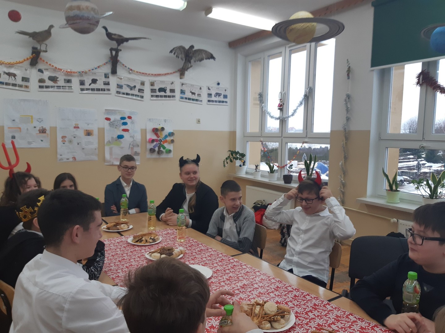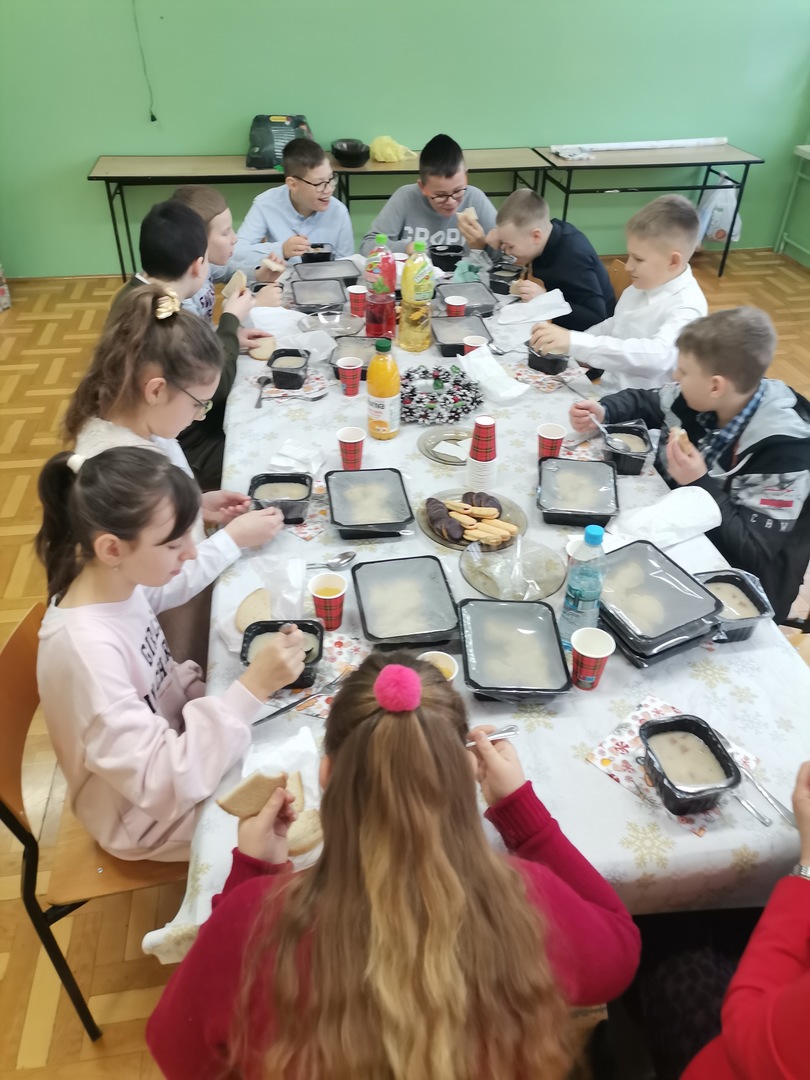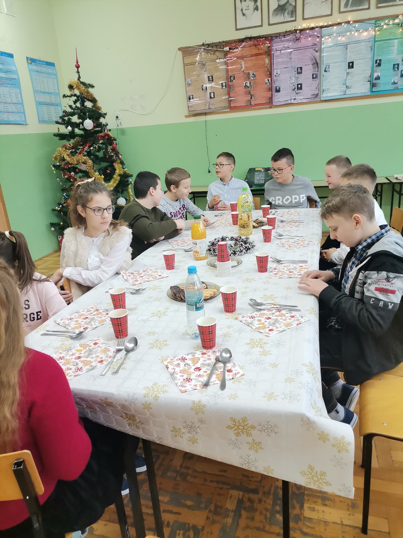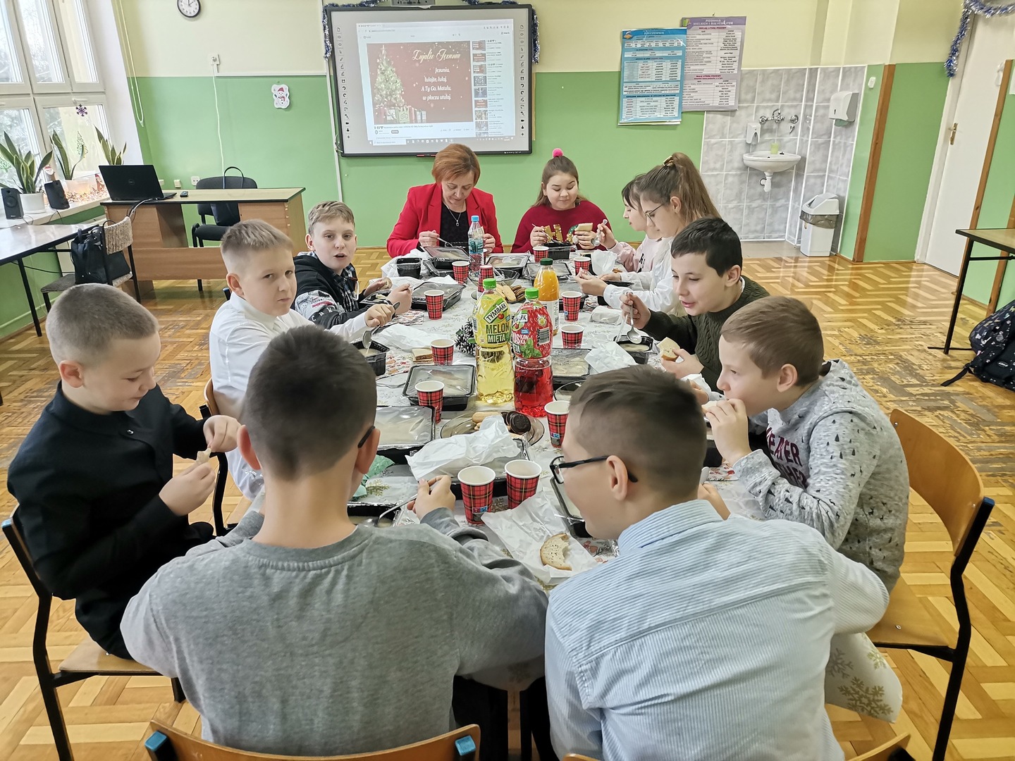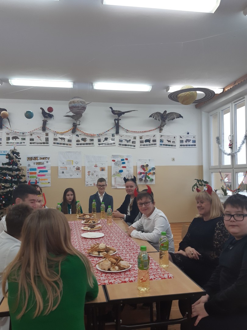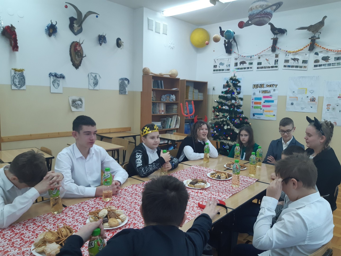 W tym dniu uczniowie każdej klasy spotkali się przy wigilijnym stole wspólnie z wychowawcami i nauczycielami. Nie brakowało serdeczności, życzeń, świątecznej atmosfery i wspólnego kolędowania.