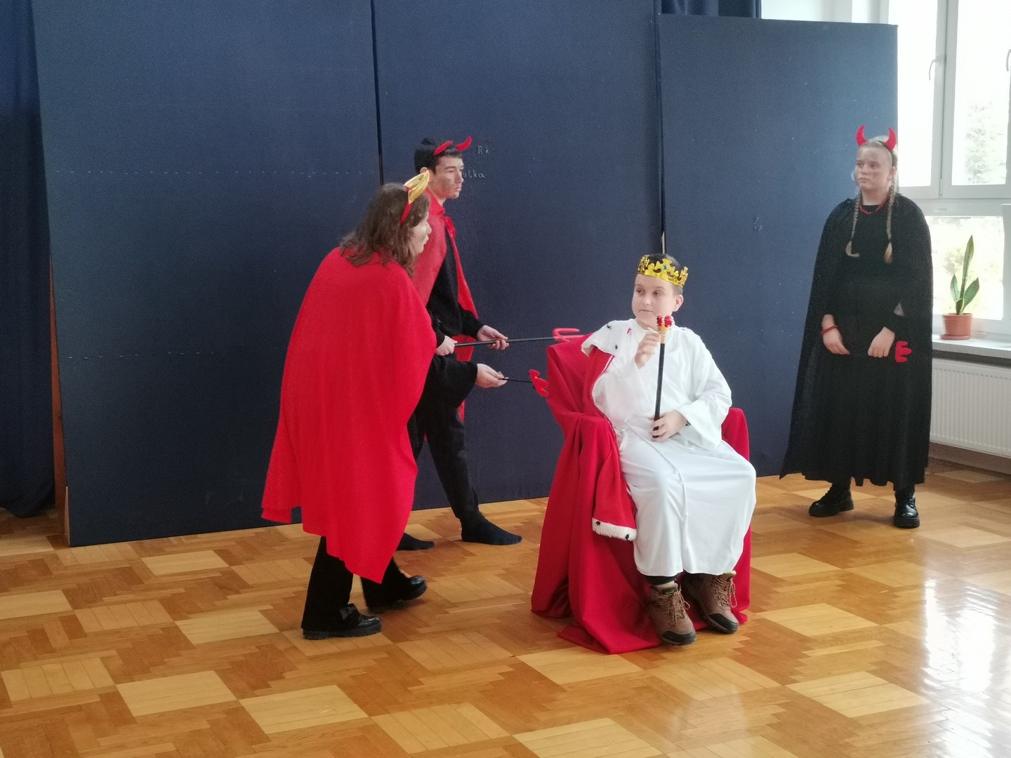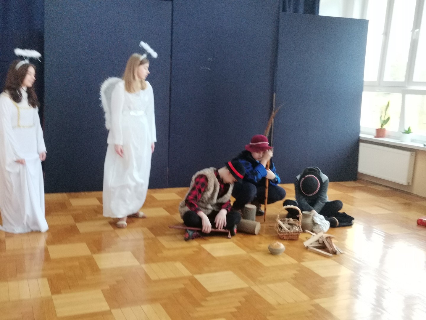 Uczniowie w tradycyjny, ale też humorystyczny sposób, ukazali okoliczności narodzin Tego, Który przyszedł, by mas zbawić. Zło, pokusy i pragnienie władzy (jak u Heroda) można pokonać pokorą, dobrem i miłością.