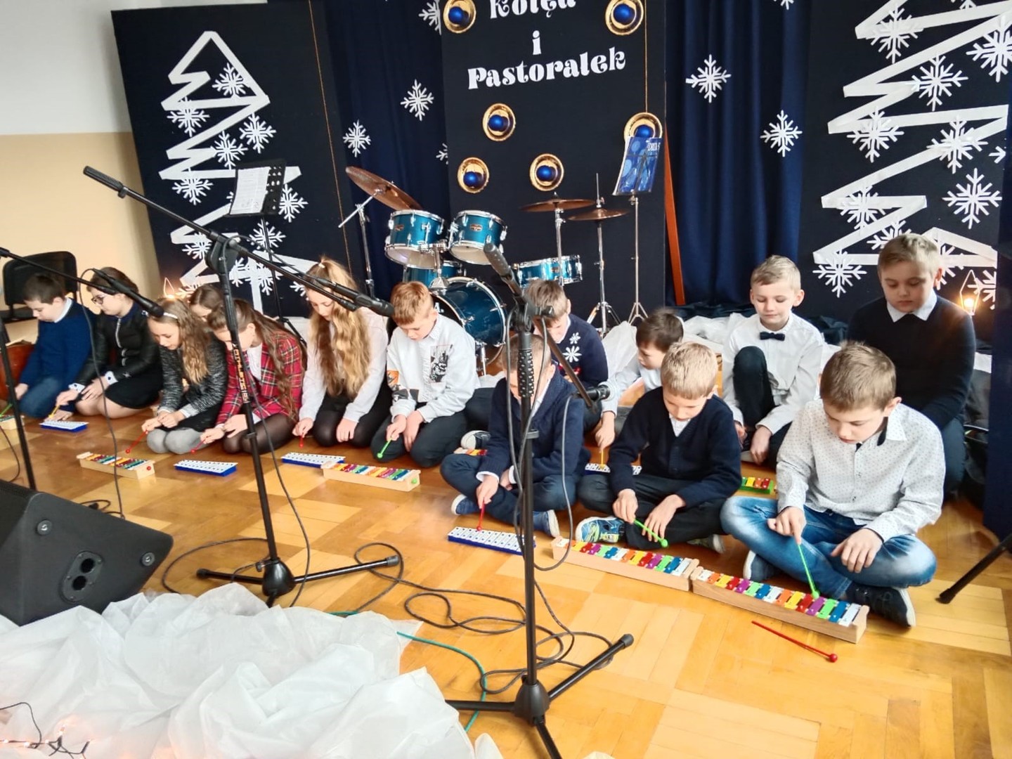 Młodzi artyści indywidualnie i zespołowo przy akompaniamencie pianina, perkusji, fletów, gitary, ukulele, wiolonczeli, dzwonków oraz instrumentów perkusyjnych zaprezentowali najpiękniejsze polskie pieśni bożonarodzeniowe. Radosna i rozśpiewana atmosfera opanowała całą szkolną społeczność. Zgromadzeni uczniowie, rodzice i nauczyciele włączyli się do wspólnego kolędowania, a występy nagradzali gromkimi brawami.