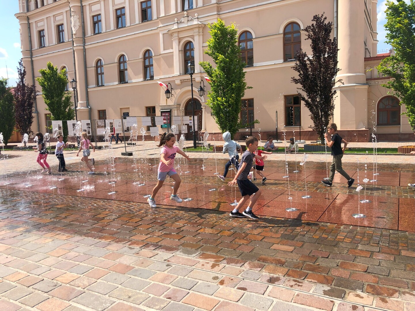Ostatni punkt wycieczki to lody i zabawa przy fontannach.