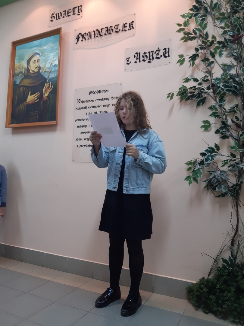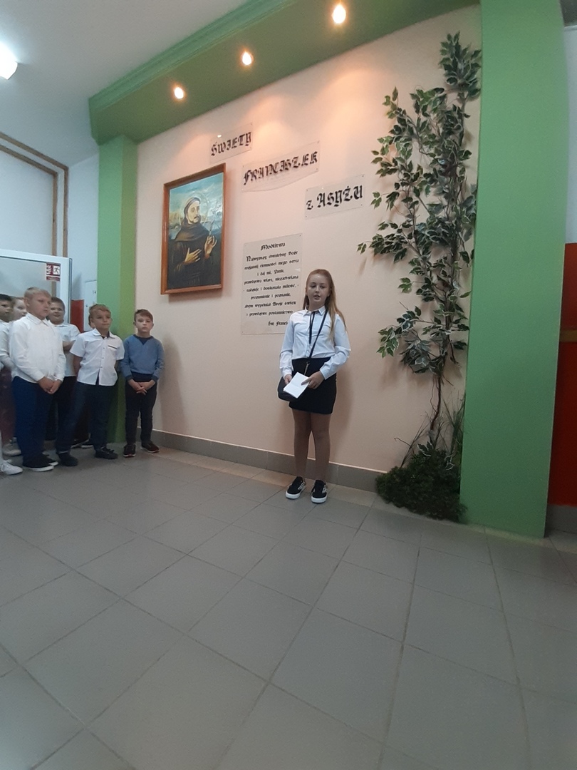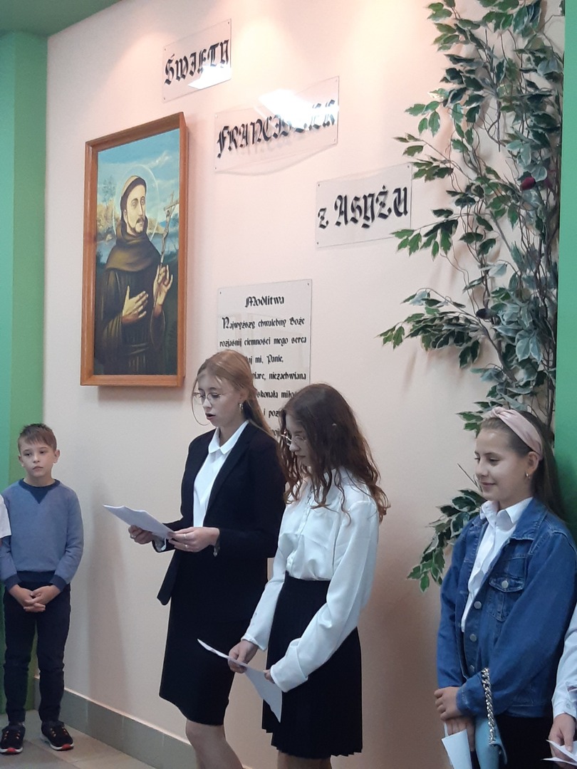 Dnia 4 października 2023 roku jak co roku, obchodzone było święto patrona naszej szkoły - św. Franciszka z Asyżu. Uczniowie naszej szkoły rozpoczęli ten dzień od wspólnej Mszy Świętej w kościele. Następnie cała społeczność szkolna zgromadziła się przy obrazie naszego patrona, gdzie razem odmówiliśmy modlitwę. Uczniowie klasy IV przygotowali dla nas krótką część artystyczną natomiast samorząd uczniowski przybliżył nam historie świętego Franciszka. Uroczystość zakończyliśmy oglądając film dotyczący patrona naszej szkoły.