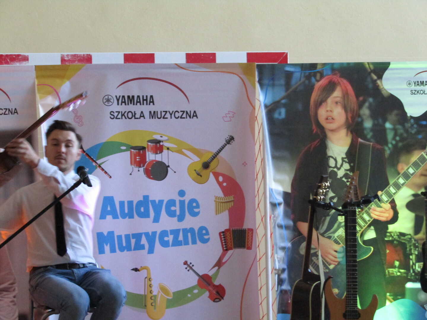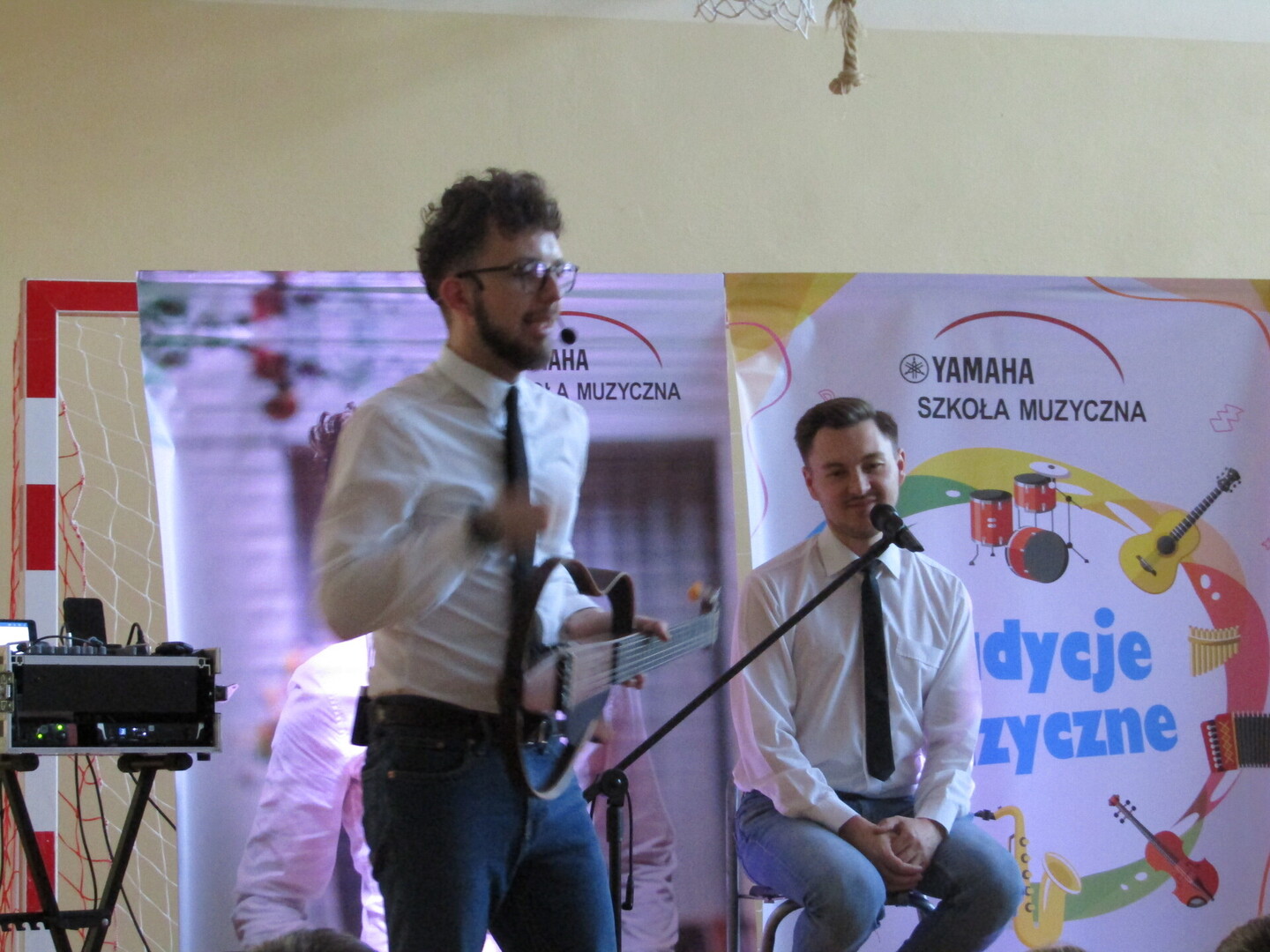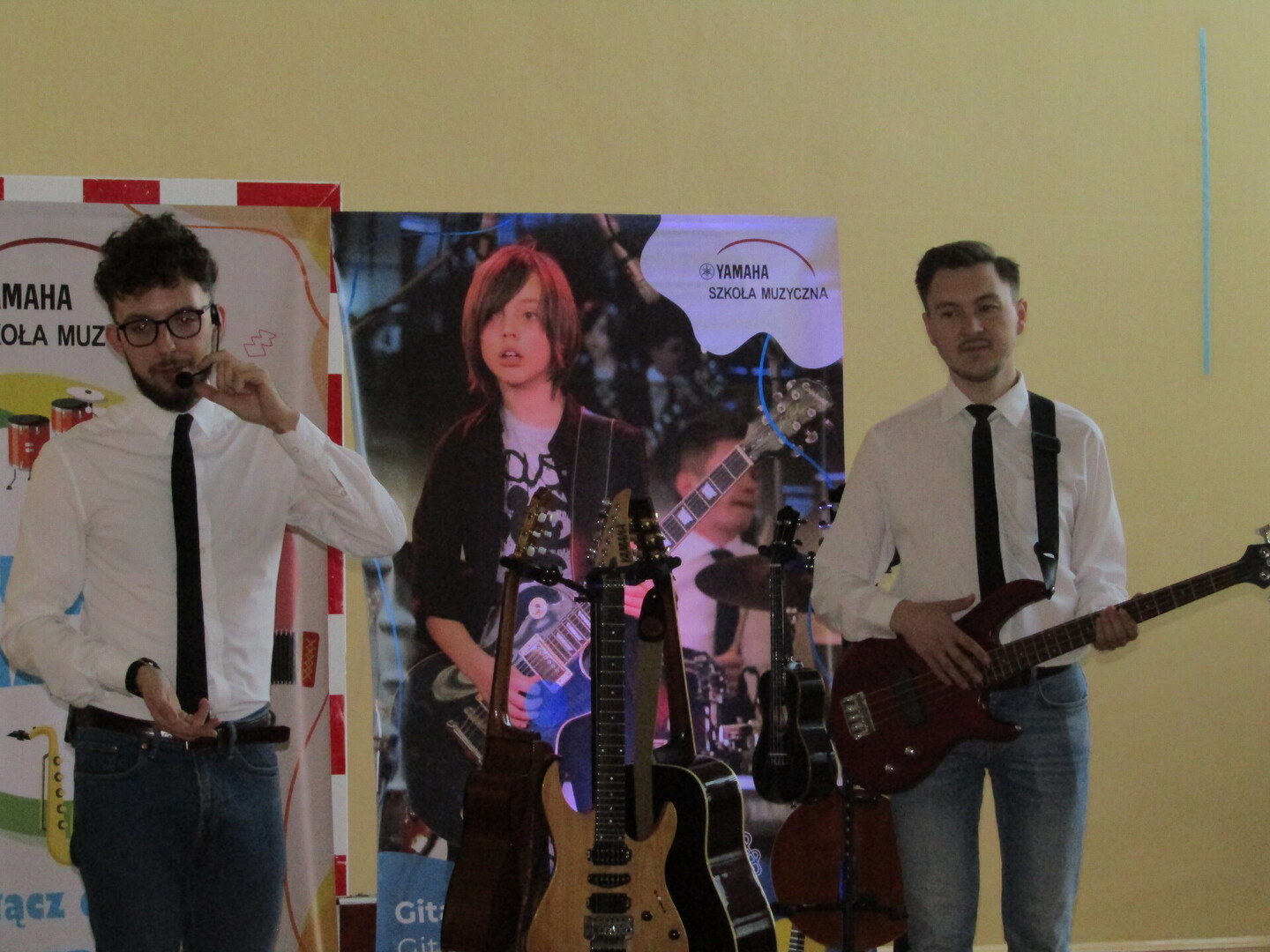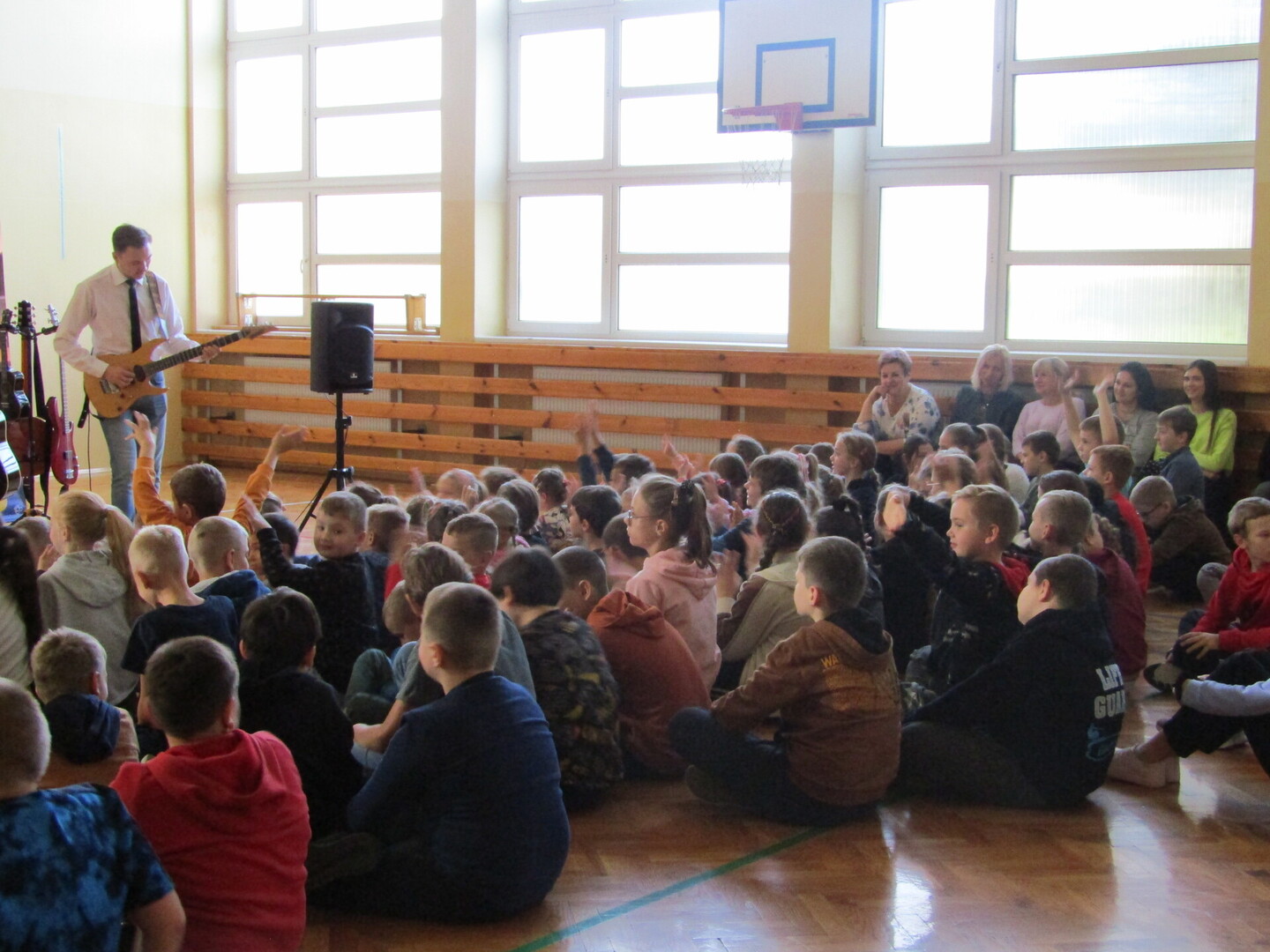 W dniu 12 października 2023r. społeczność naszej szkoły wzięła udział w lekcji muzycznej przygotowanej przez Muzyków ze Szkoły Muzycznej ,,Yamaha’’ w Przeworsku. Prezentowali oni różnego rodzaju gitary m. in. akustyczną, basową i rockową. Wszyscy uczniowie, od najmłodszych po najstarszych, z zainteresowaniem przyglądali się i słuchali programu muzycznego. Na zakończenie została zagrana, wesoła hawajska piosenka. Następnie wszyscy uczniowie, zadowoleni i weseli udali się z powrotem na lekcje.