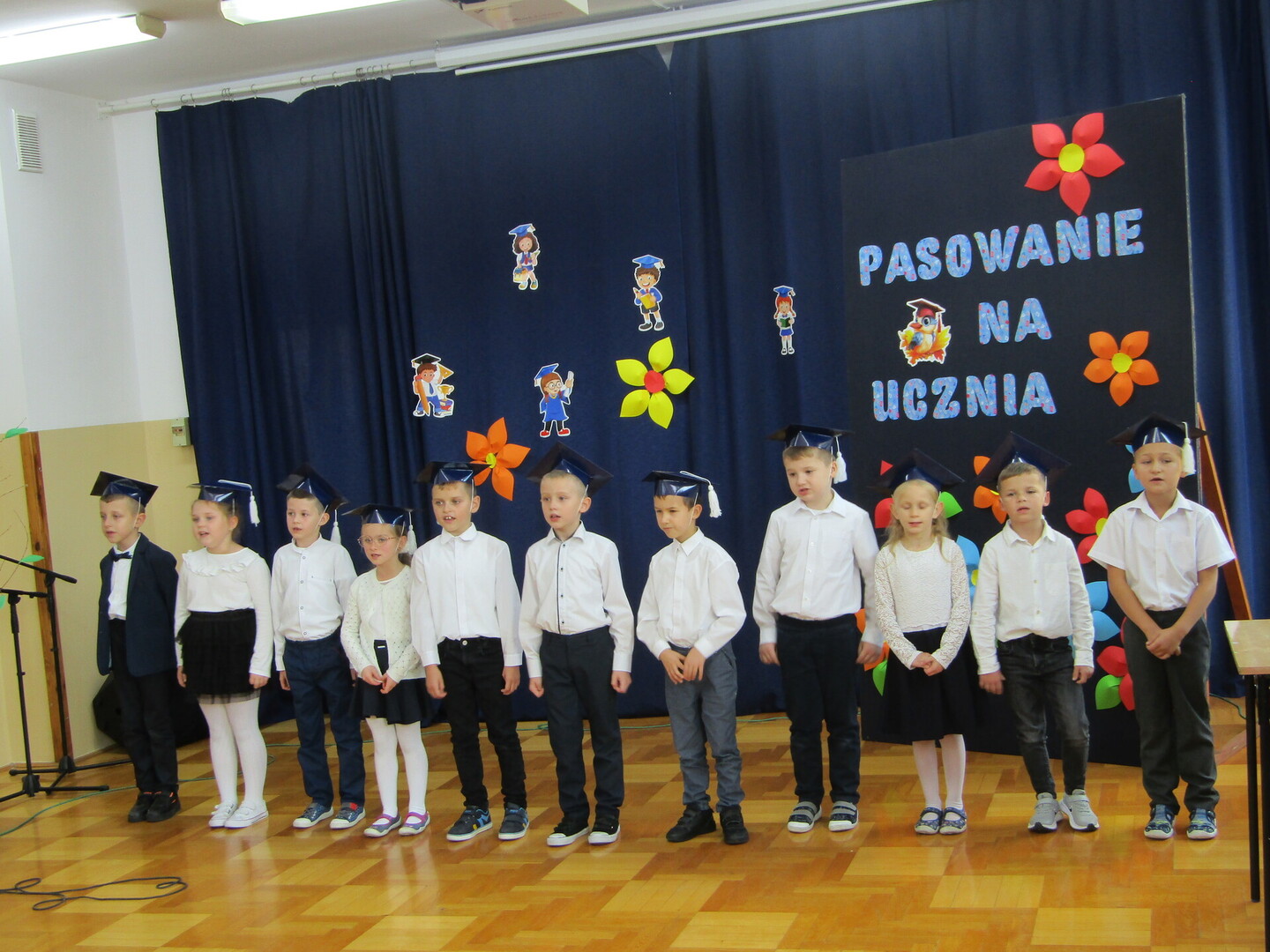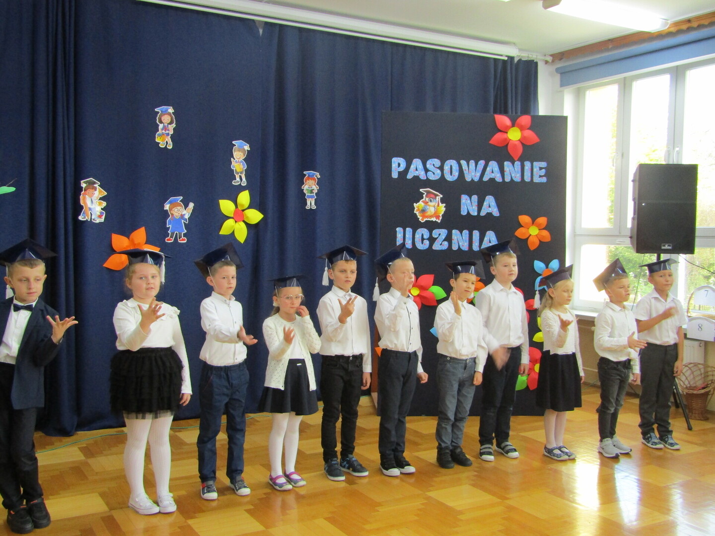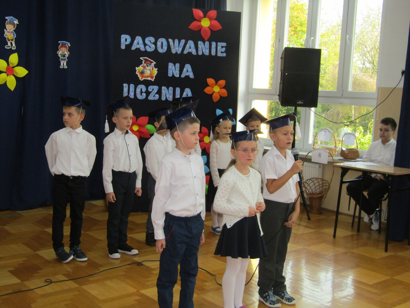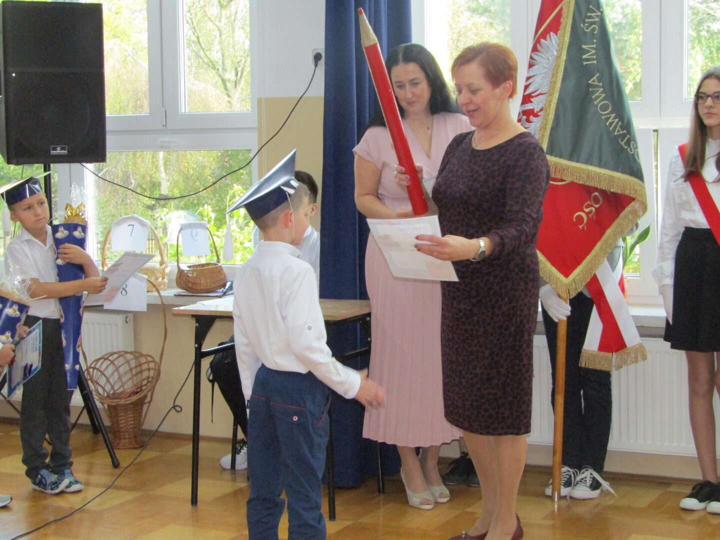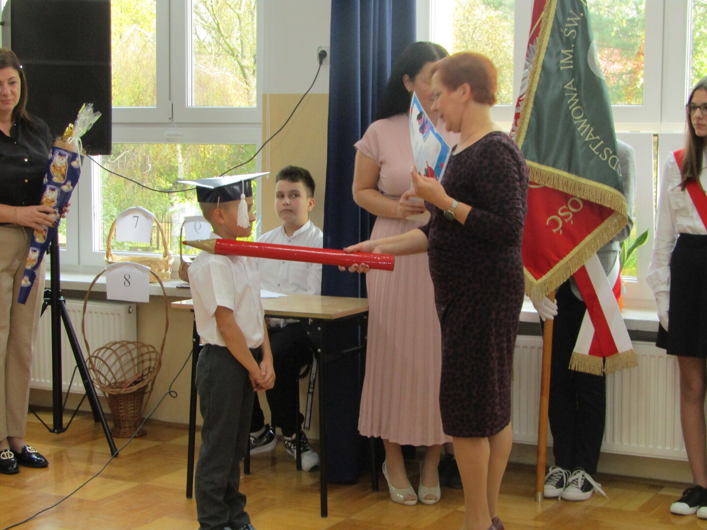 23 października 2023r. odbyła się w naszej szkole uroczystość pasowania na ucznia. Jest to szczególny dzień, który na długo pozostanie w pamięci każdego ucznia klasy pierwszej. W tym dniu dzieci oficjalnie przyjęte zostały do grona uczniów szkoły. Podczas uroczystości pierwszoklasiści pokazali, że potrafią pięknie śpiewać i recytować wiersze. Najważniejszą częścią uroczystości, na którą wszyscy czekali było ślubowanie oraz pasowanie wielkim ołówkiem przez Panią Dyrektor Martę Całka. Pierwszaki głośno i z przekonaniem przyrzekały być dobrymi i pilnymi uczniami oraz rzetelnie wypełniać swoje obowiązki, o czym przypominać im będą otrzymane dyplomy. Wszystkim pierwszoklasistom w tak ważnym dla nich dniu życzymy wielu sukcesów na nowej drodze obowiązków szkolnych.