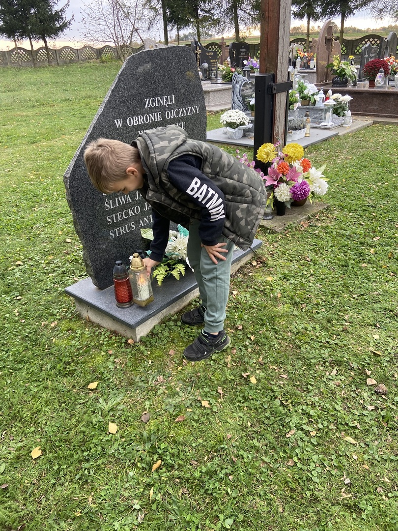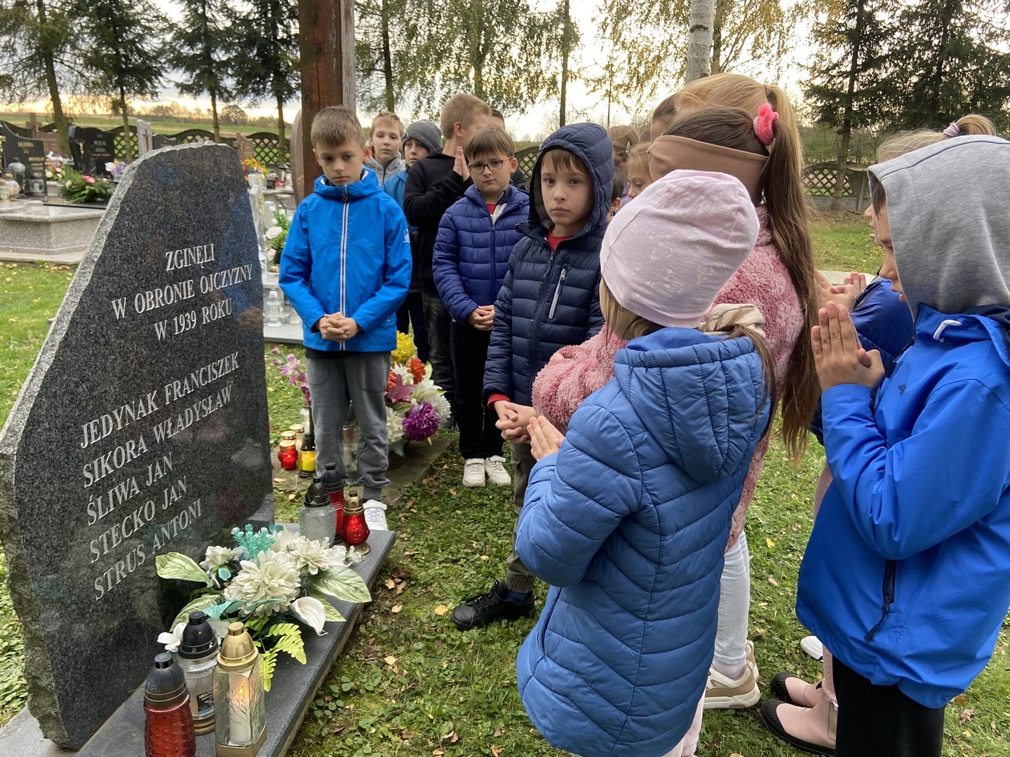 W dniu 31.10 klasy druga i trzecia odwiedziły miejscowy cmentarz. Uczniowie zaświecili znicze na grobach bliskich oraz przed tablicą pamiątkową tych, którzy oddali życie za wolną i niepodległą ojczyznę.