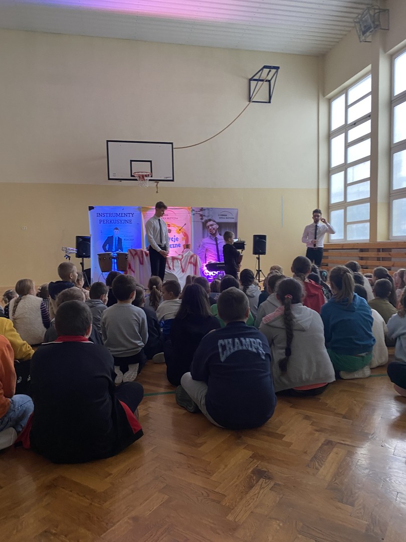 30 listopada, ponownie w tym roku, w naszej szkole zagościli muzycy ze Szkoły Muzycznej „YAMAHA” w Przeworsku. Tym razem główną rolę odgrywały instrumenty perkusyjne takie jak: perkusja elektroniczna, dzwonki czy ksylofon. Uczniowie naszej szkoły aktywnie brali udział w lekcji, w której nie brakowało elementów humorystycznych. Dzięki temu dostarczyła nam ona wiele pozytywnej energii. Niektórzy przedstawili nam swoje talenty muzyczne. Wszyscy uczestnicy świetnie spędzili ten czas oraz z uśmiechami na twarzy wrócili na lekcje.