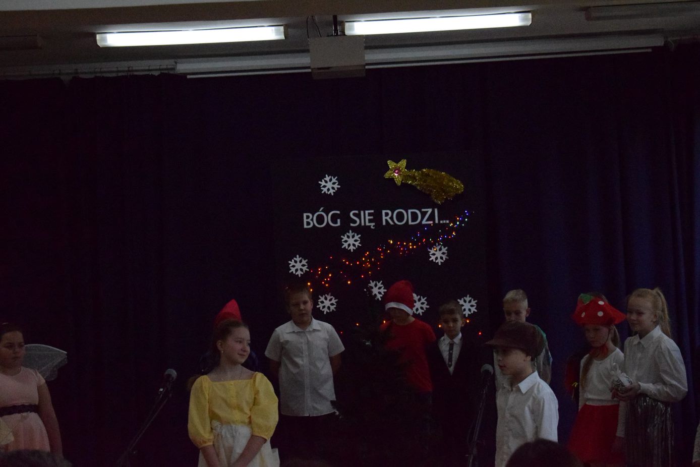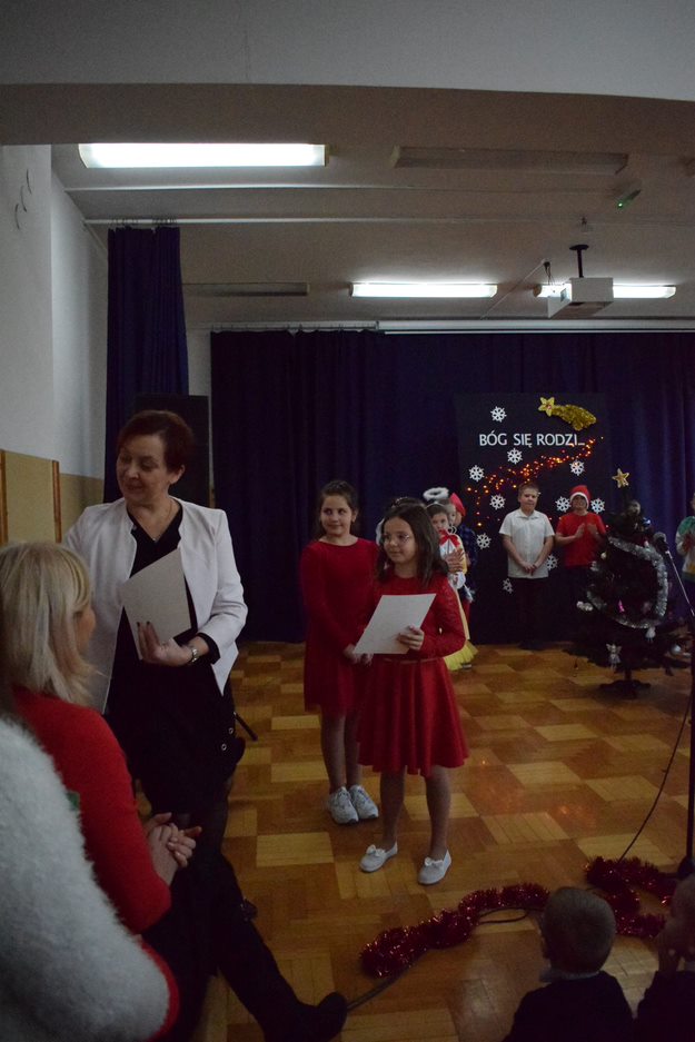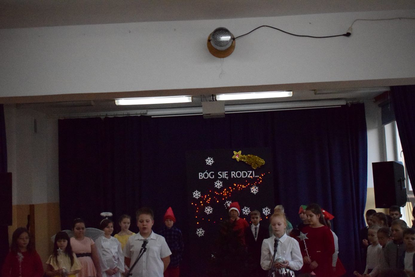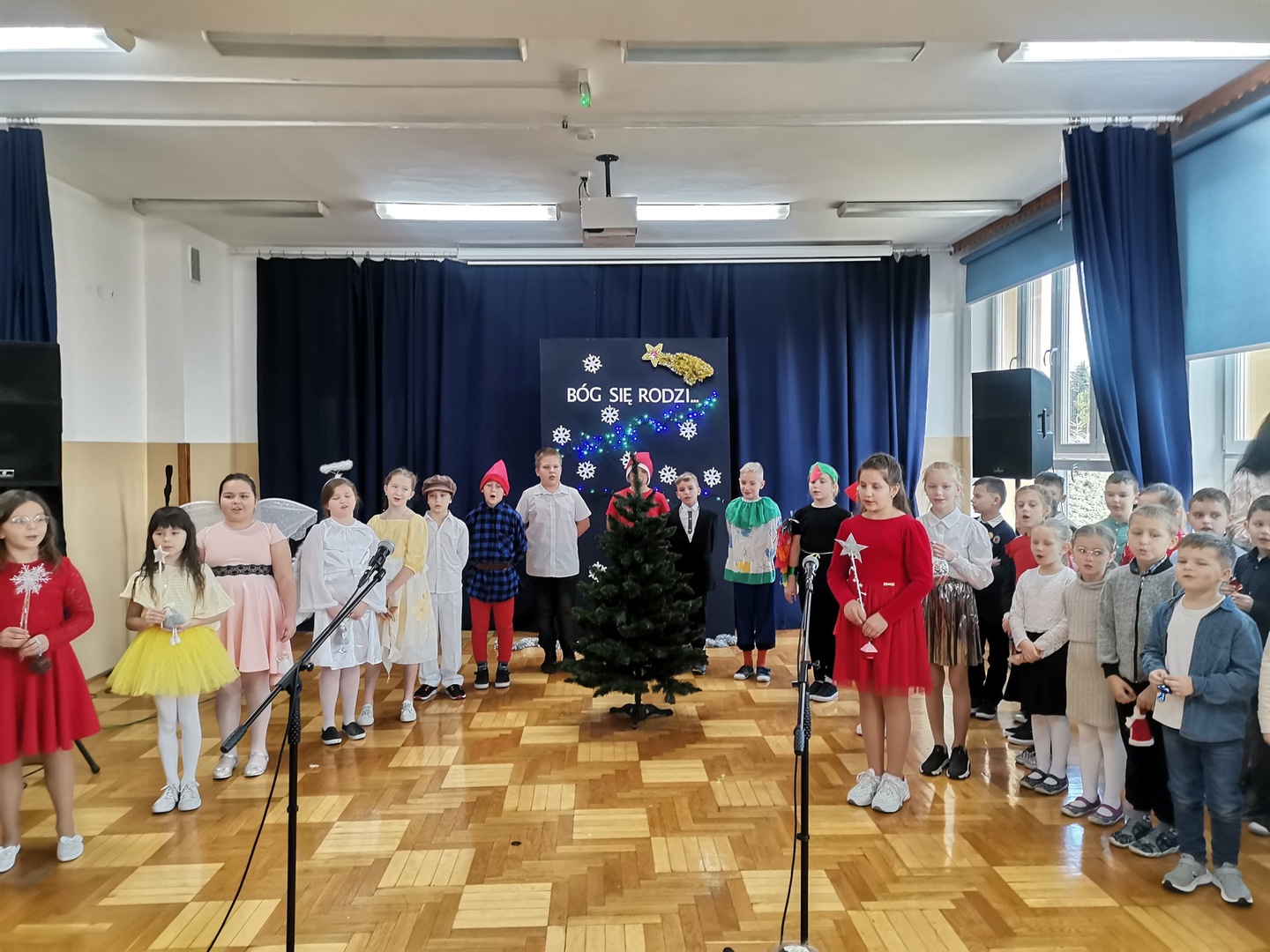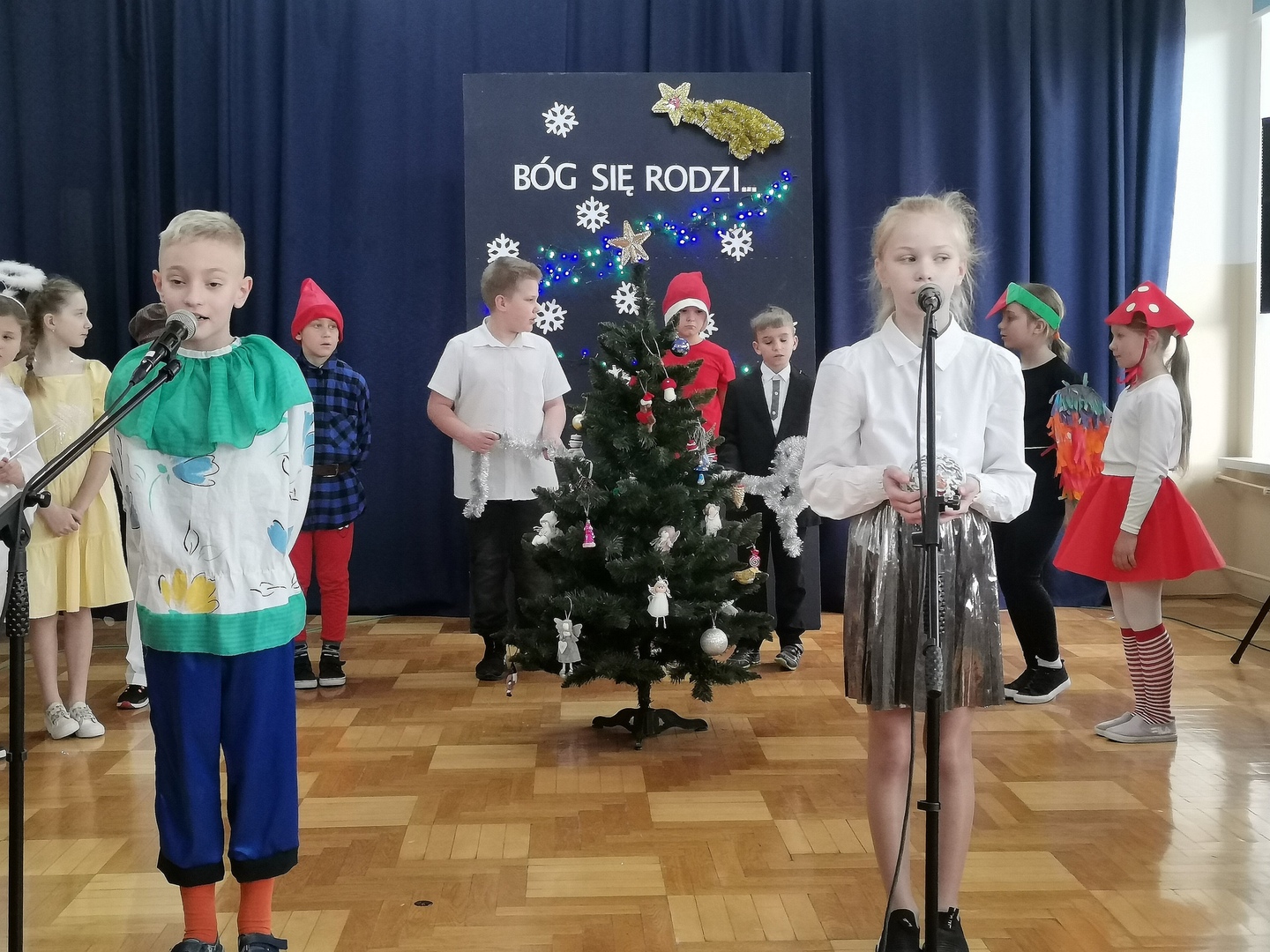 W piątek 22 grudnia w naszej szkole wspólnie obchodziliśmy Wigilię Bożego Narodzenia. Świętowanie rozpoczęliśmy akademią przygotowaną przez uczniów z klas 1-3, podczas której wręczone zostały nagrody dla laureatów Szkolnego Konkursu Informatycznego na wykonanie kartki świątecznej techniką komputerową. Cała społeczność szkolna włączyła się w kolędowanie. Następnie przeszliśmy na salę gimnastyczną, gdzie zasiedliśmy do stołów, złożyliśmy sobie najserdeczniejsze życzenia oraz zjedliśmy wspólny posiłek, przygotowany przez naszych rodziców. Nie brakowało przyjemnego, świątecznego nastroju.