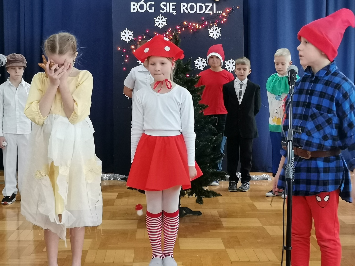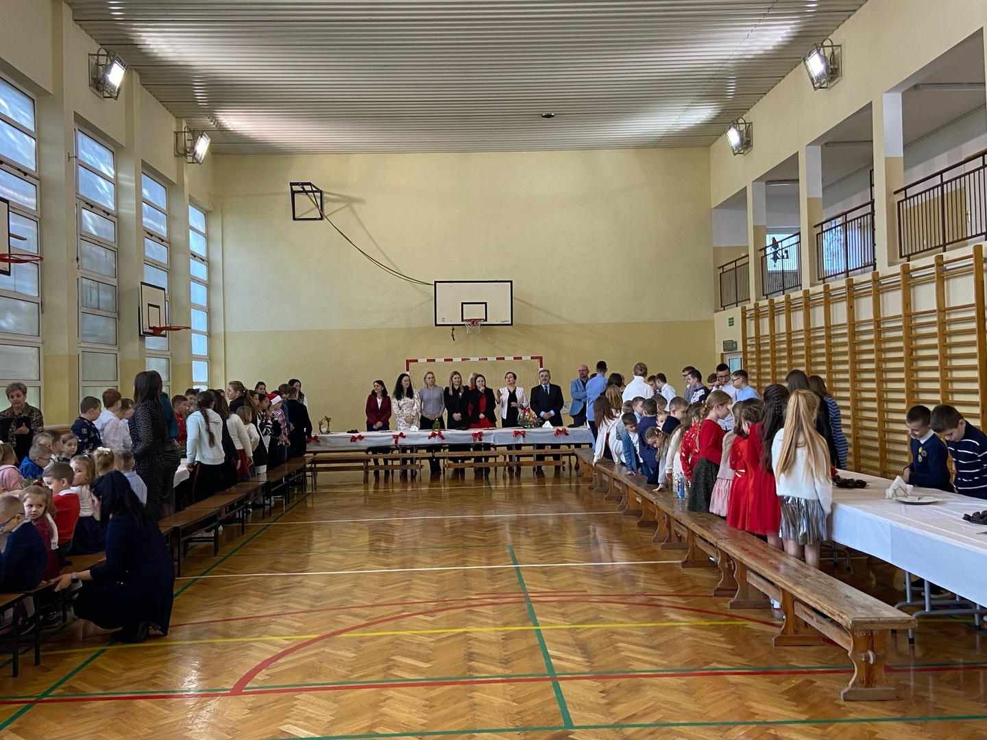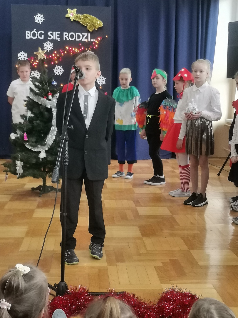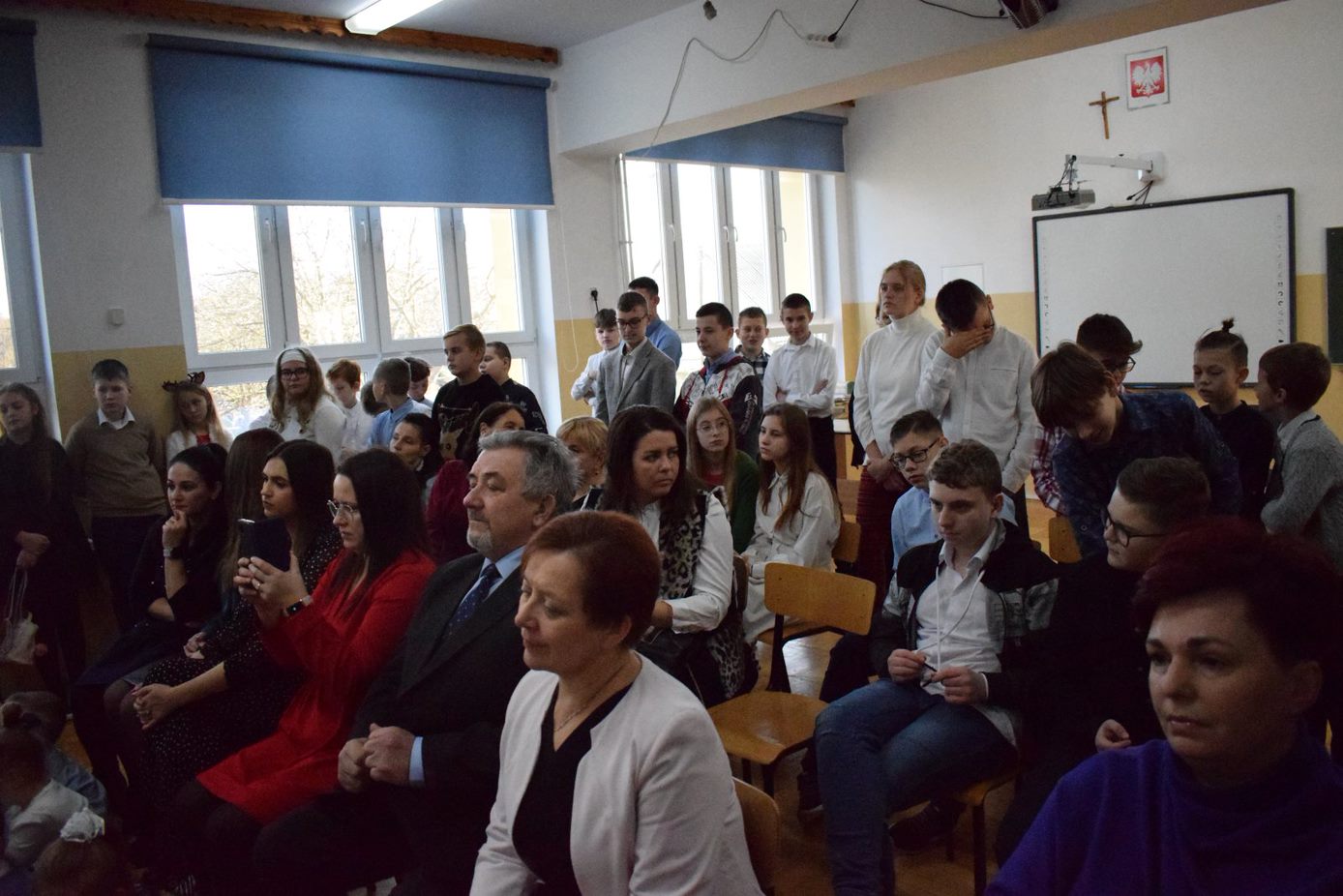 W piątek 22 grudnia w naszej szkole wspólnie obchodziliśmy Wigilię Bożego Narodzenia. Świętowanie rozpoczęliśmy akademią przygotowaną przez uczniów z klas 1-3, podczas której wręczone zostały nagrody dla laureatów Szkolnego Konkursu Informatycznego na wykonanie kartki świątecznej techniką komputerową. Cała społeczność szkolna włączyła się w kolędowanie. Następnie przeszliśmy na salę gimnastyczną, gdzie zasiedliśmy do stołów, złożyliśmy sobie najserdeczniejsze życzenia oraz zjedliśmy wspólny posiłek, przygotowany przez naszych rodziców. Nie brakowało przyjemnego, świątecznego nastroju.