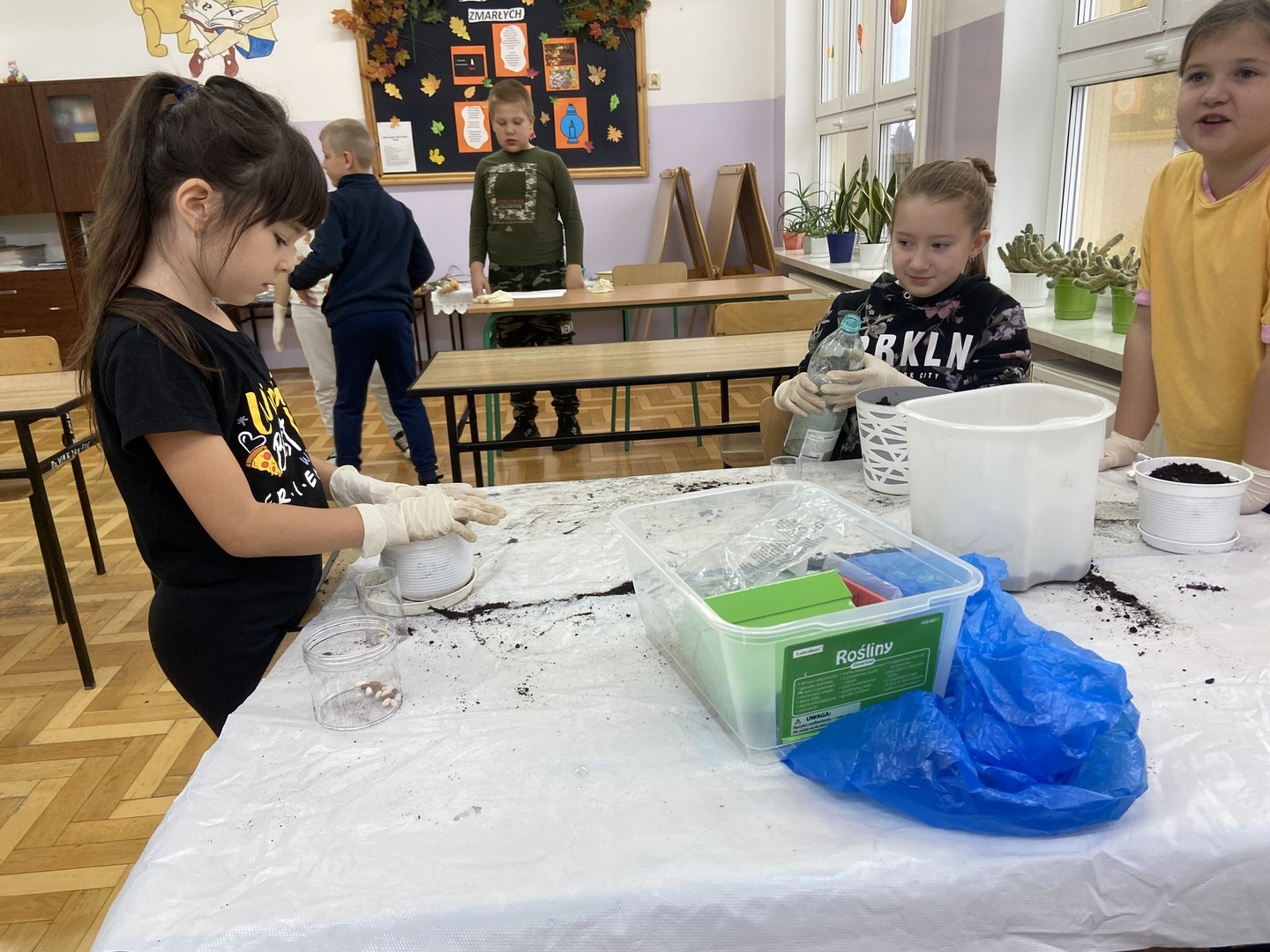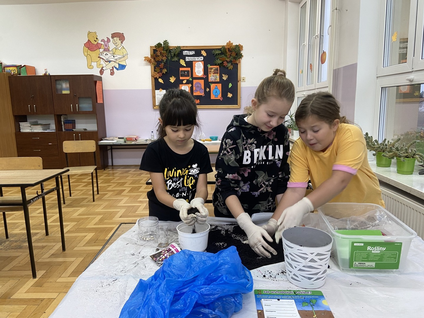 W listopadzie przeprowadzone zostały lekcje w ramach zajęć integracyjnych edukacji polonistyczno-przyrodniczej, społecznej i plastycznej z wykorzystaniem sprzętu zakupionego w ramach programu #LaboratoriaPrzyszłości i #LaboratoriaPrzyszlosci. Uczniowie realizując temat „siejemy, sadzimy i obserwujemy” poznali zasady i sposoby sadzenia, wysiewu oraz pielęgnacji roślin. Pracowali w grupach 3-4 osobowych. W trakcie zajęć edukacji plastycznej i polonistyczno-przyrodniczej przygotowali potrzebne etykiety, opracowali plan prowadzenia obserwacji oraz wysiali i posadzili rośliny. Praca i zaangażowanie uczniów widoczna jest na zamieszczonych zdjęciach.