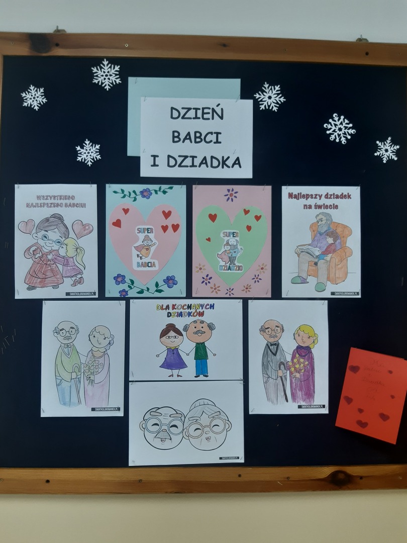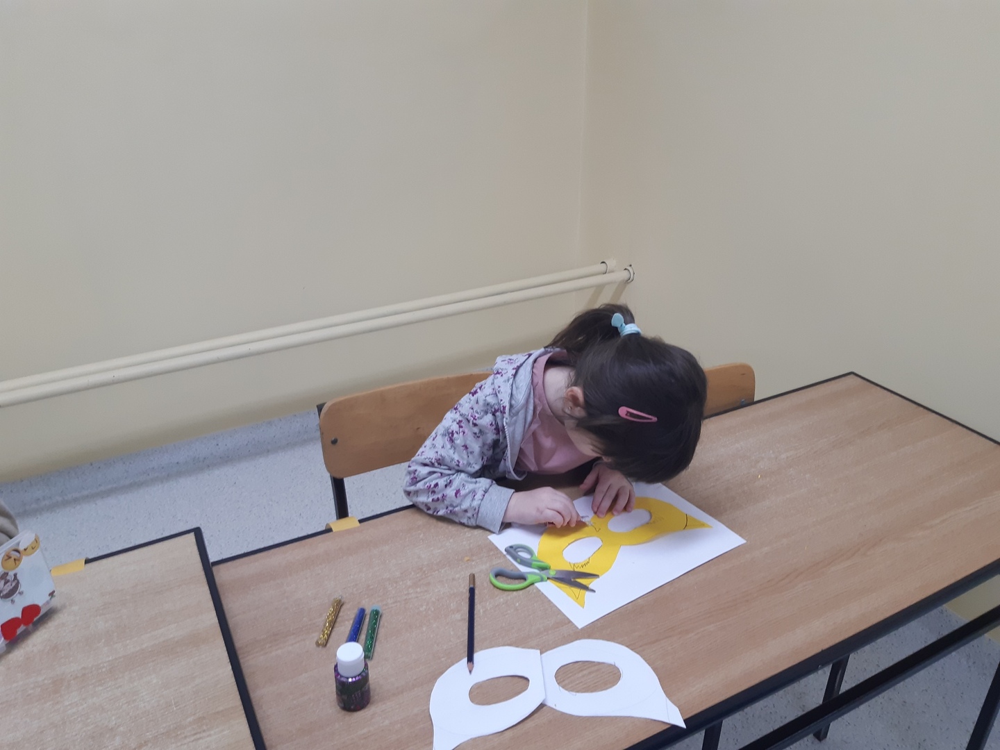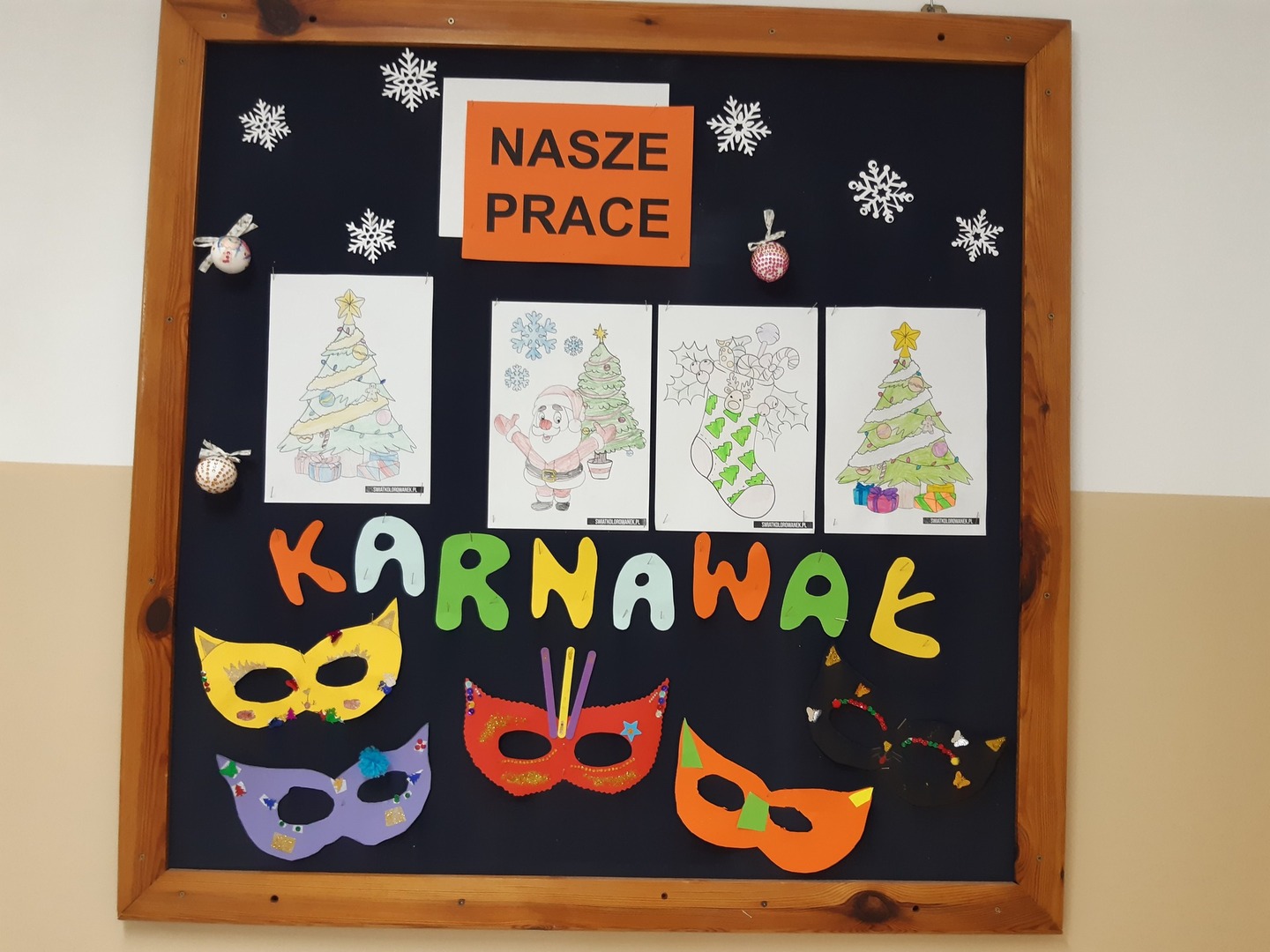 Ponieważ styczeń to czas karnawału przygotowywali maski karnawałowe na zabawę. Nie zapomnieli również o zbliżającym się święcie – Dniu Babci I Dziadka. Rozmawiali o potrzebie szacunku i serdeczności dla ludzi starszych, wykonywali portrety babci i dziadka oraz przygotowali piękne laurki dla swoich dziadków.