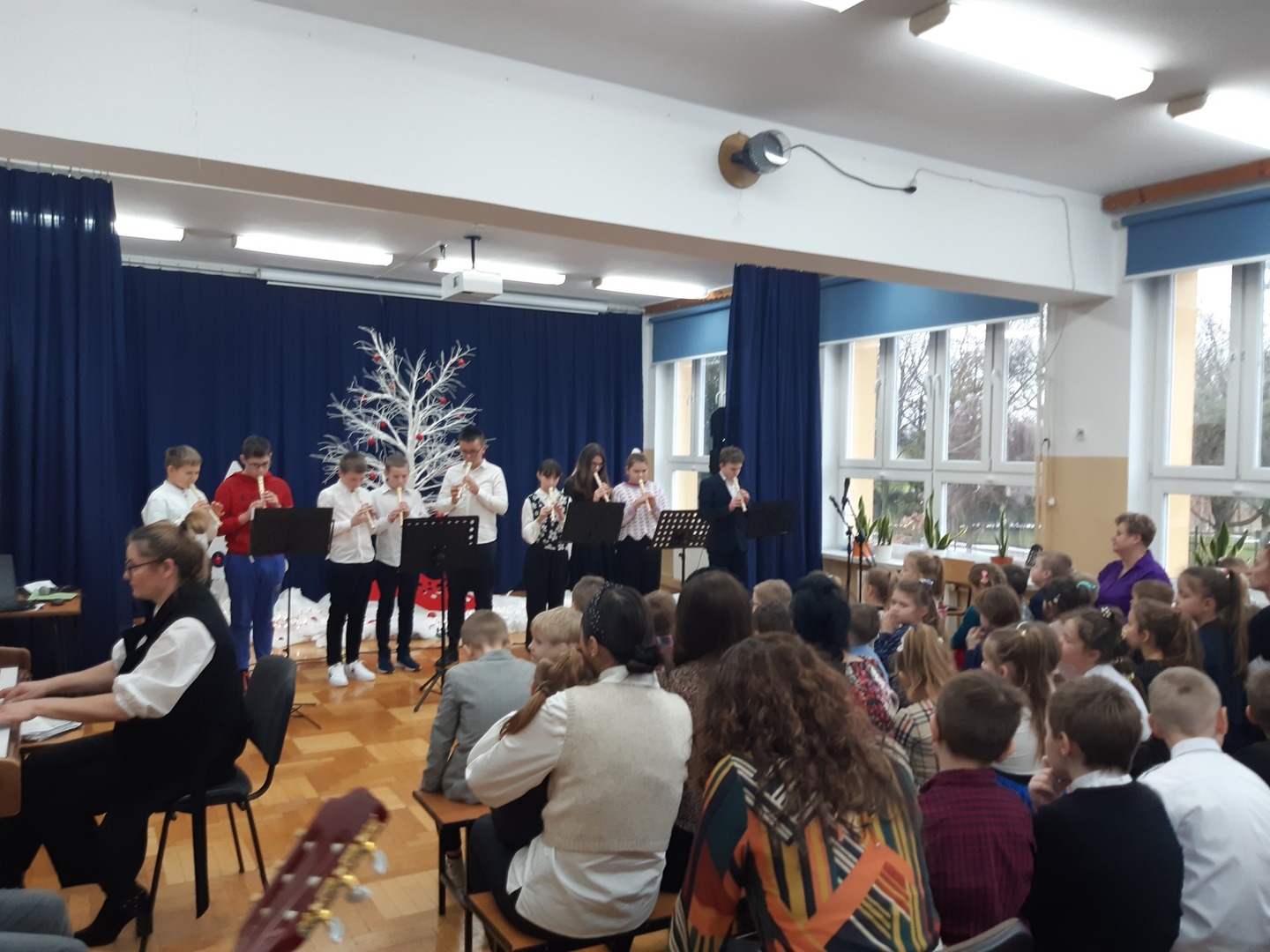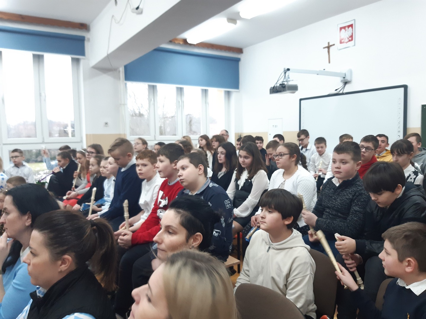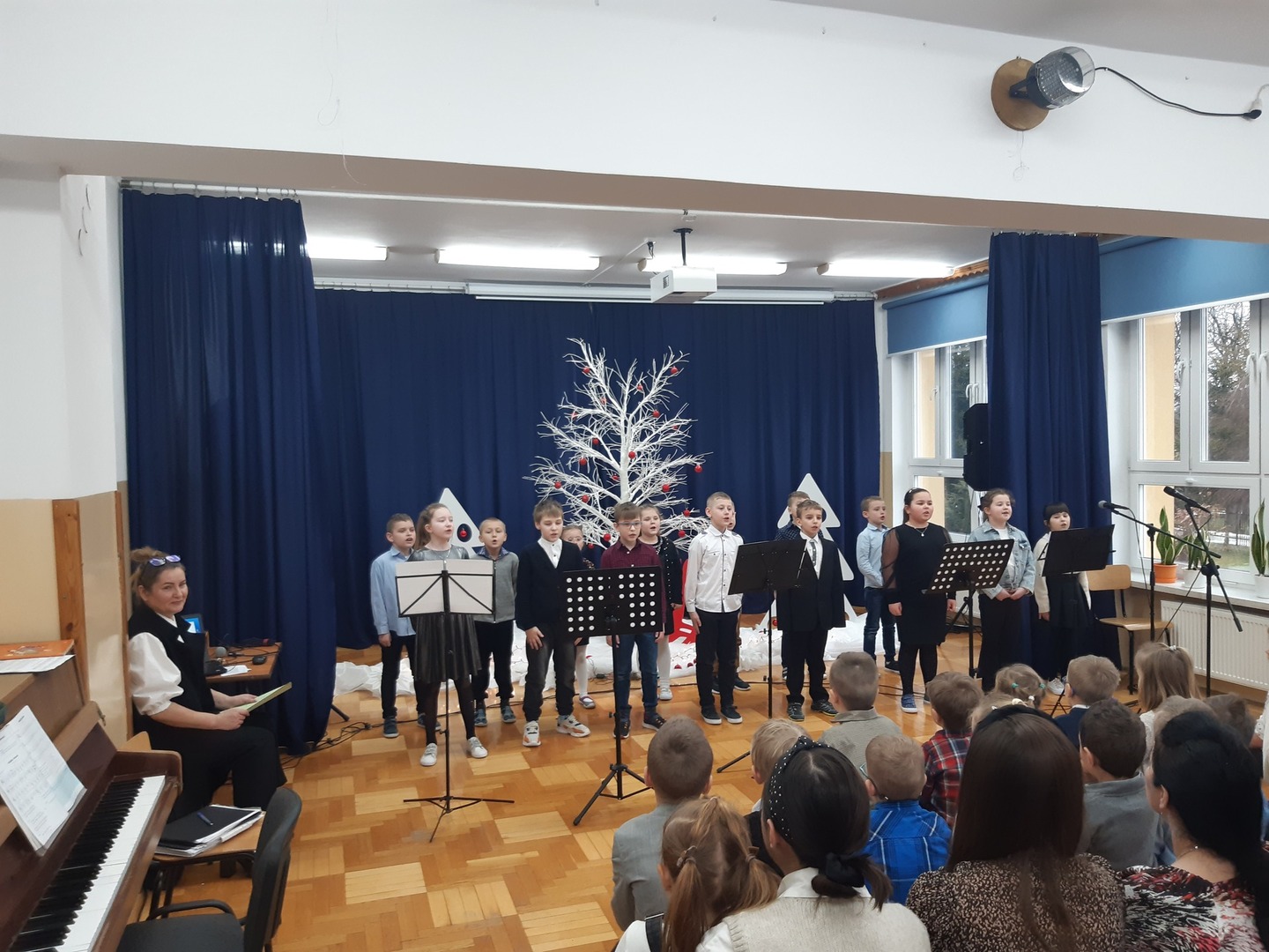 Dnia 24 stycznia 2024r. cała społeczność szkolna wzięła udział w Koncercie Kolęd i Pastorałek. Młodzi artyści zespołowo oraz indywidualnie wykonali kolędy i pastorałki śpiewając, grając na fletach, pianinie i gitarach. Wszyscy zgormadzeni z radością włączyli się w kolędowanie. W całej naszej szkole rozbrzmiewały najpiękniejsze polskie pieśni bożonarodzeniowe. Tym wydarzeniem pożegnaliśmy okres Świąt Bożego Narodzenia.