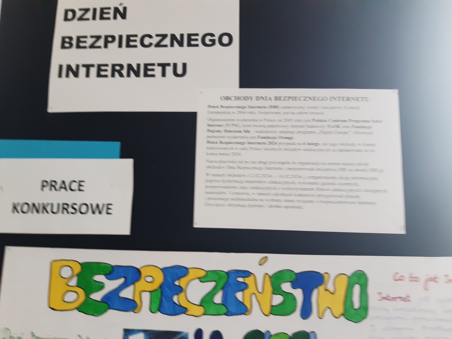 W ramach obchodów (12.02.2024r. – 22.02.2024r.), zorganizowaliśmy akcję informacyjną poprzez dystrybucję materiałów edukacyjnych, wykonanie gazetek ściennych, przeprowadzenie zajęć edukacyjnych z wykorzystaniem filmów edukacyjnych i dostępnych materiałów. Uczniowie, w ramach szkolnych konkursów przygotowali plakaty i prezentacje multimedialne na wybrany temat związany z bezpieczeństwem Internetu. Zwycięzcy otrzymali dyplomy i drobne upominki.