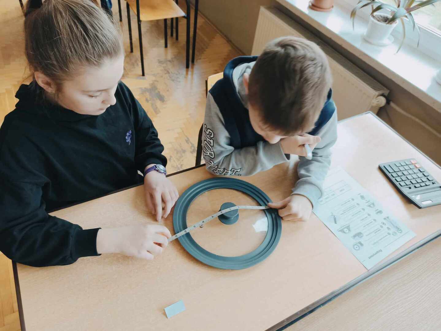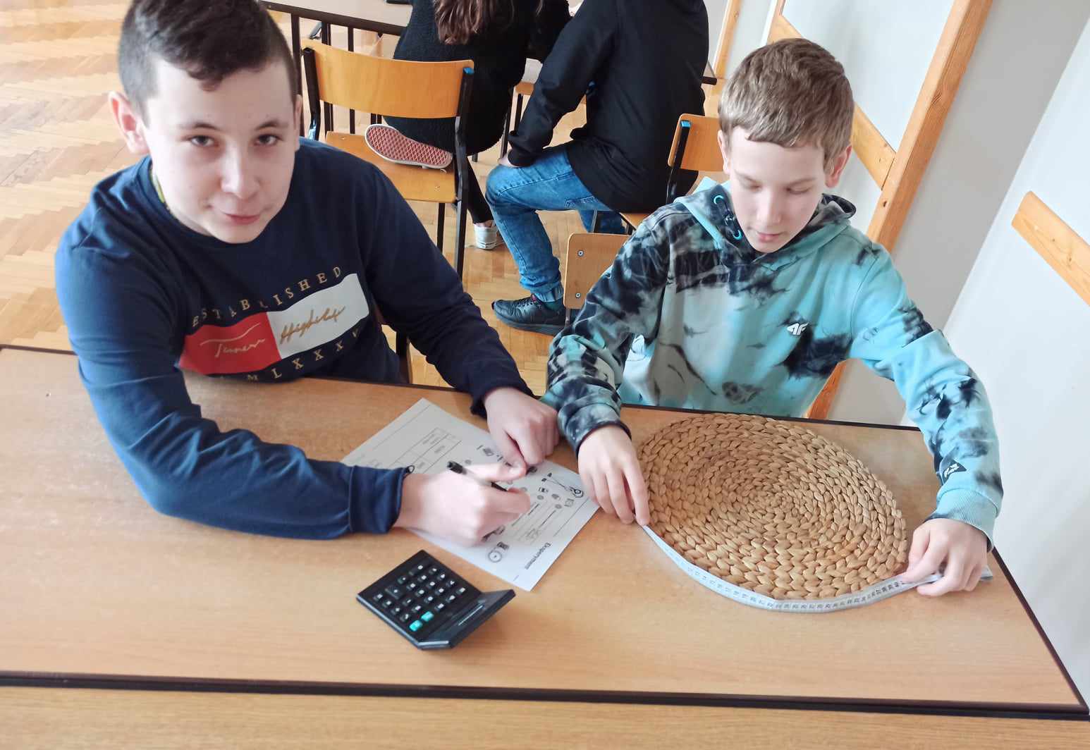 W tym dniu uczniowie robili pamiątkowe zdjęcie, jak również wzięli udział w konkursie. Każda klasa (4-7) wyznaczyła dwie osoby, które reprezentowały ich w konkursie. Zadanie konkursowe polegało na zmierzeniu obwodu oraz średnicy wylosowanego wcześniej przedmiotu (w kształcie koła) oraz wyliczeniu ilorazu. W ten sposób eksperymentalnie wyznaczyliśmy liczbę π.