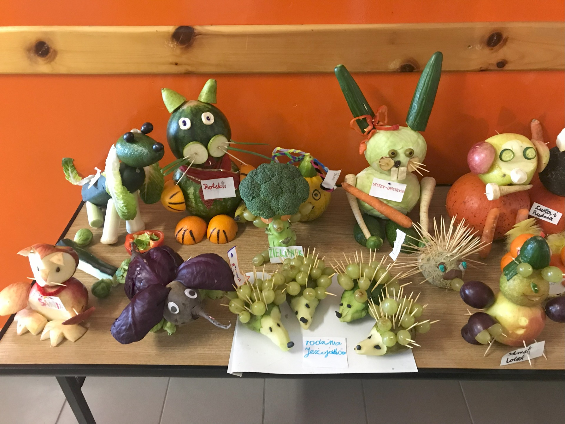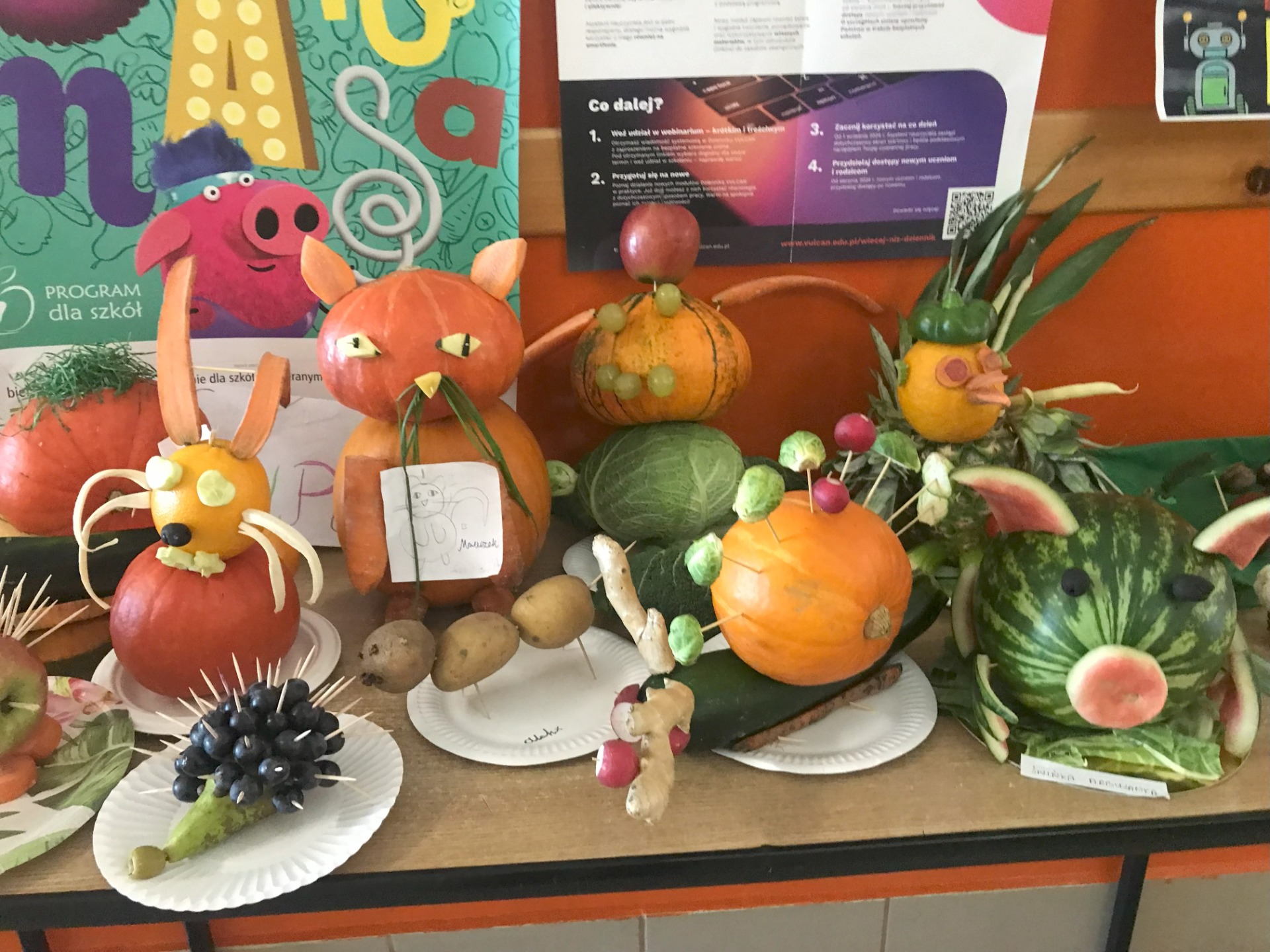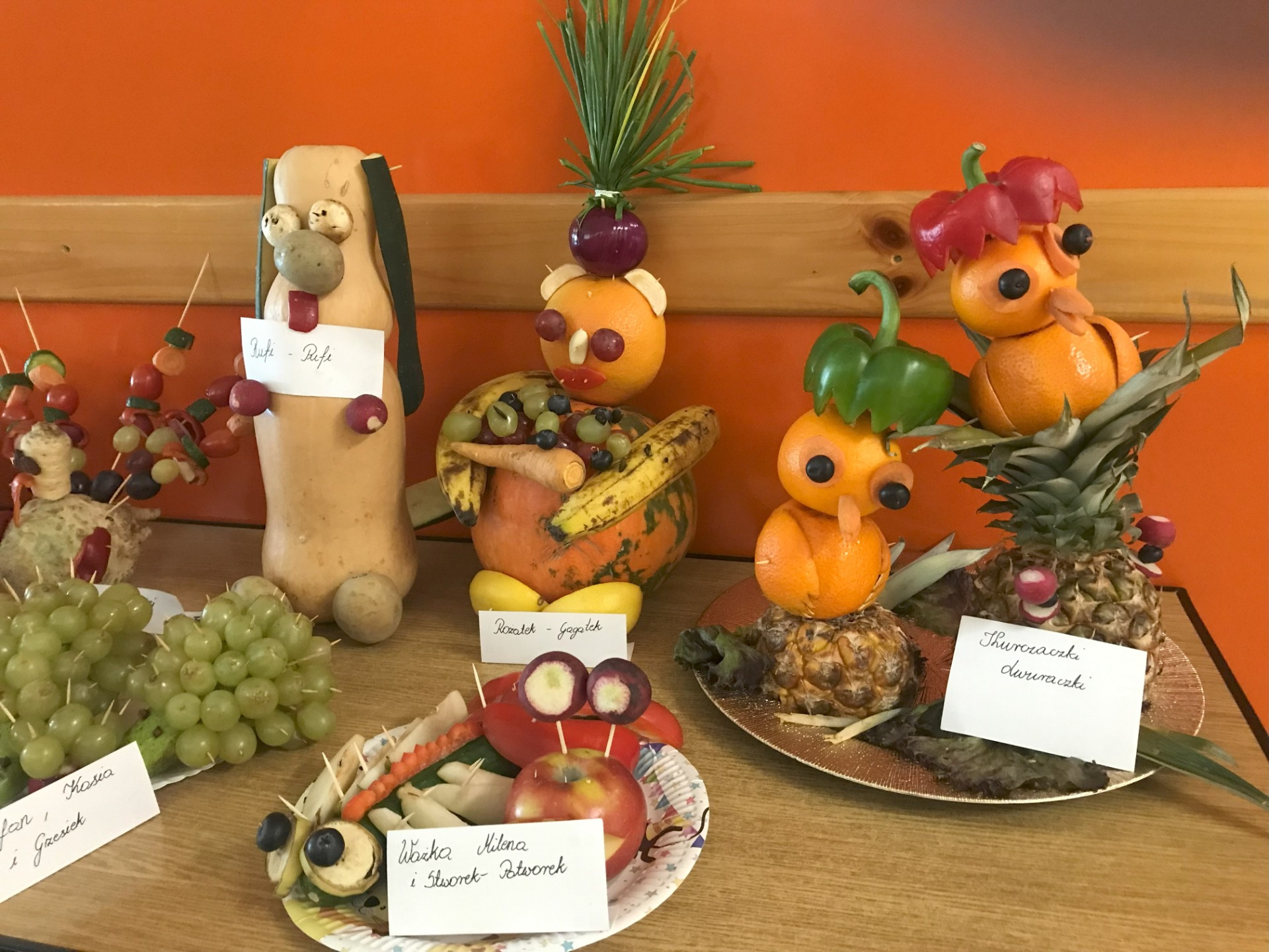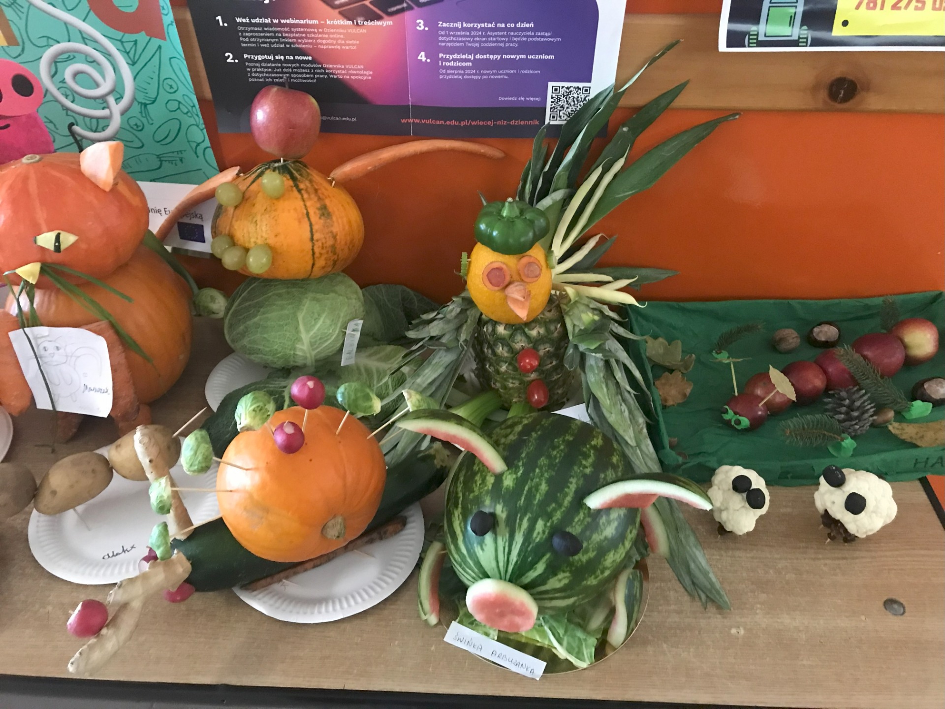 „Zwierzaki-cudaki” skierowany do klas 1-3. Uczniowie samodzielnie wykonali przepiękne prace z warzyw i owoców oraz wymyślili nazwę dla swoich „cudaków”. Jury miało ogromny problem z wyłonieniem zwycięzców. Wszystkie prace wykonane były pięknie, pomysłowo i oryginalnie. Każdy uczestnik otrzymał drobny upominek. Spośród prac 6 wyróżniono.
