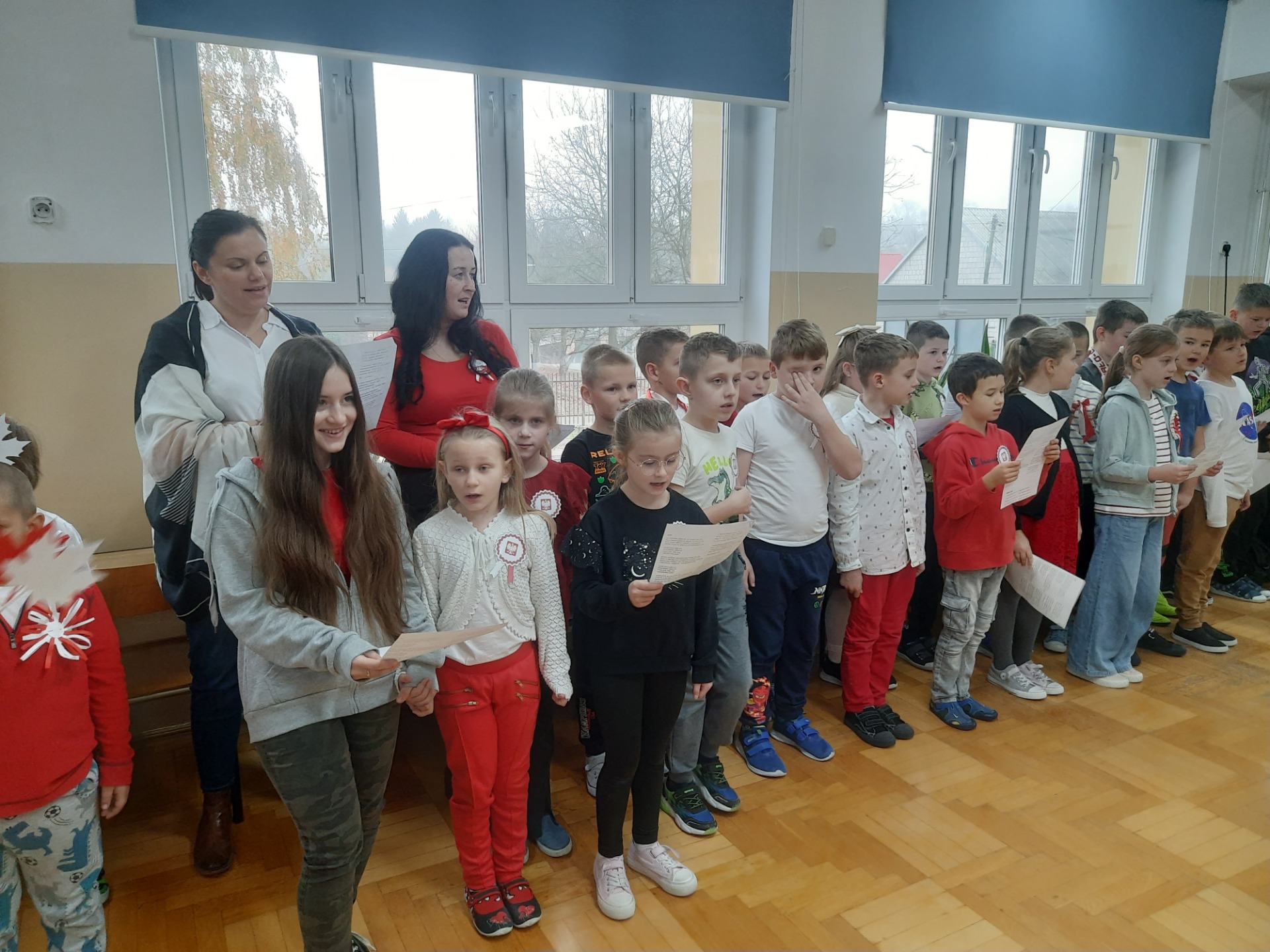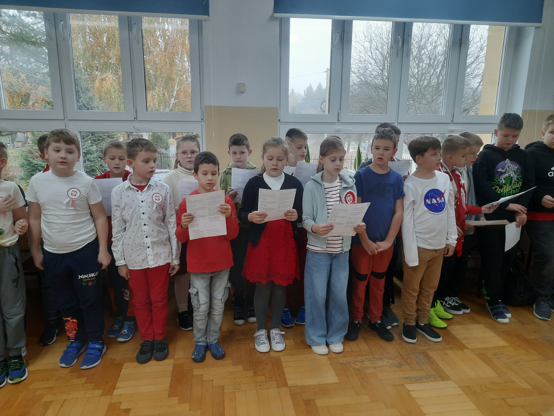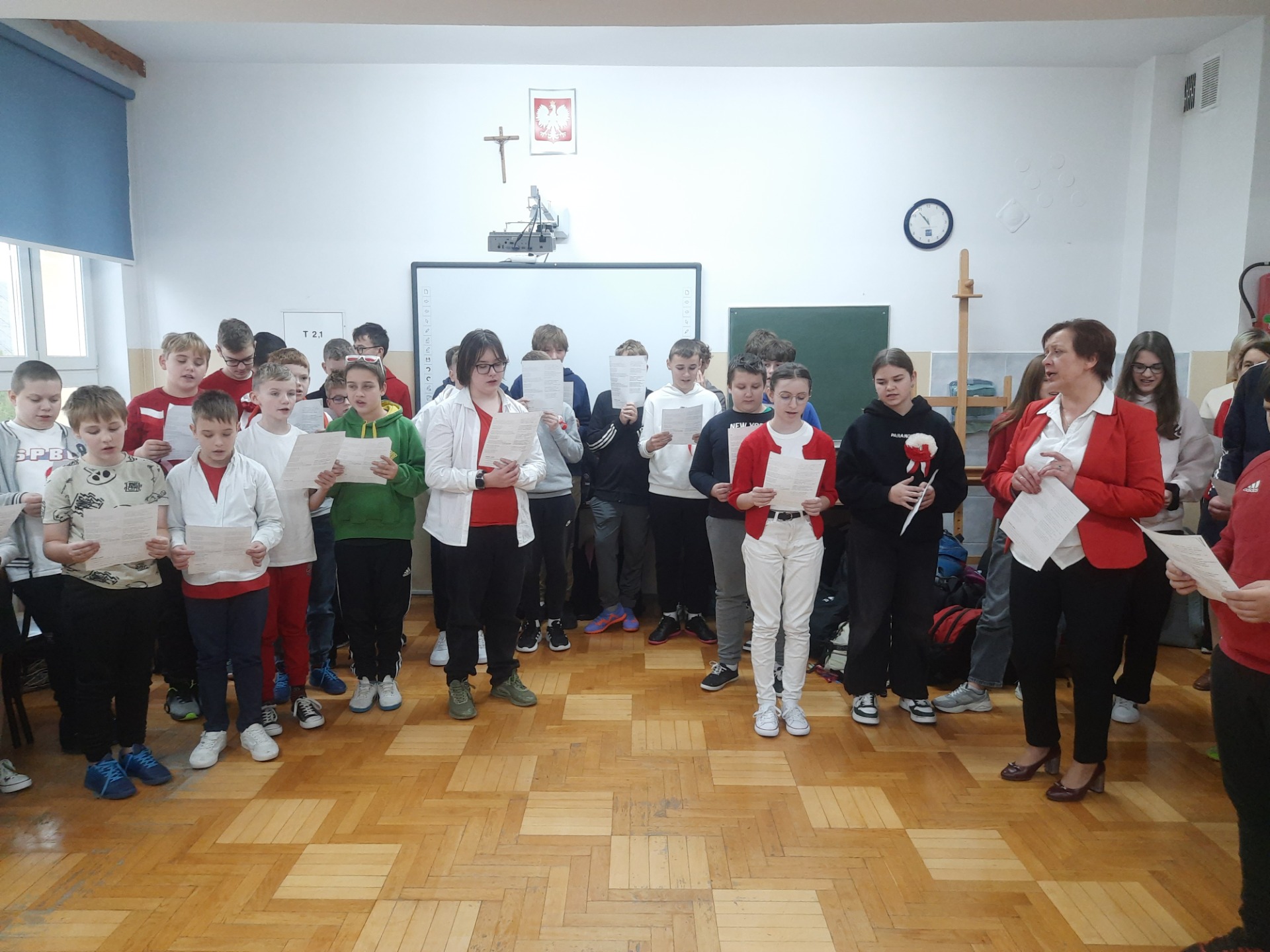 W dniu 8 listopada na jednej z przerw międzylekcyjnych zebrali się uczniowie wraz z nauczycielami, aby śpiewem uczcić niepodległość naszej Ojczyzny. Wśród utworów nie zabrakło najpopularniejszych żołnierskich pieśni, tj. "Przybyli ułani pod okienko", "Legiony", "Szara piechota". Nasze spotkanie zakończyło się odśpiewaniem "Mazurka Dąbrowskiego".