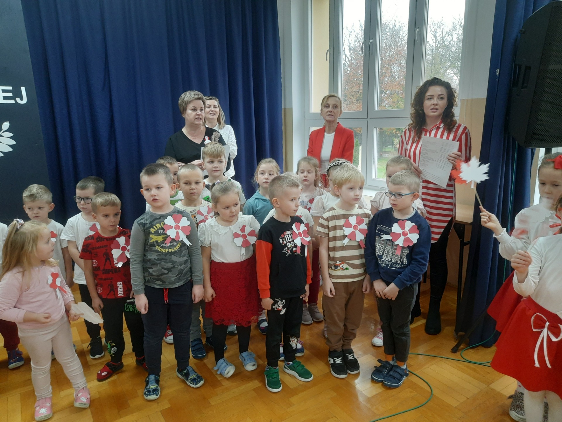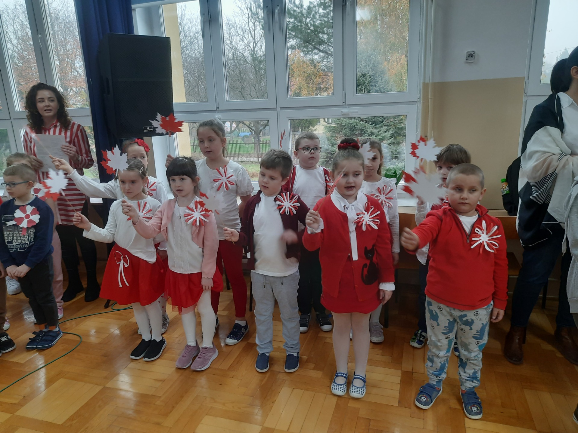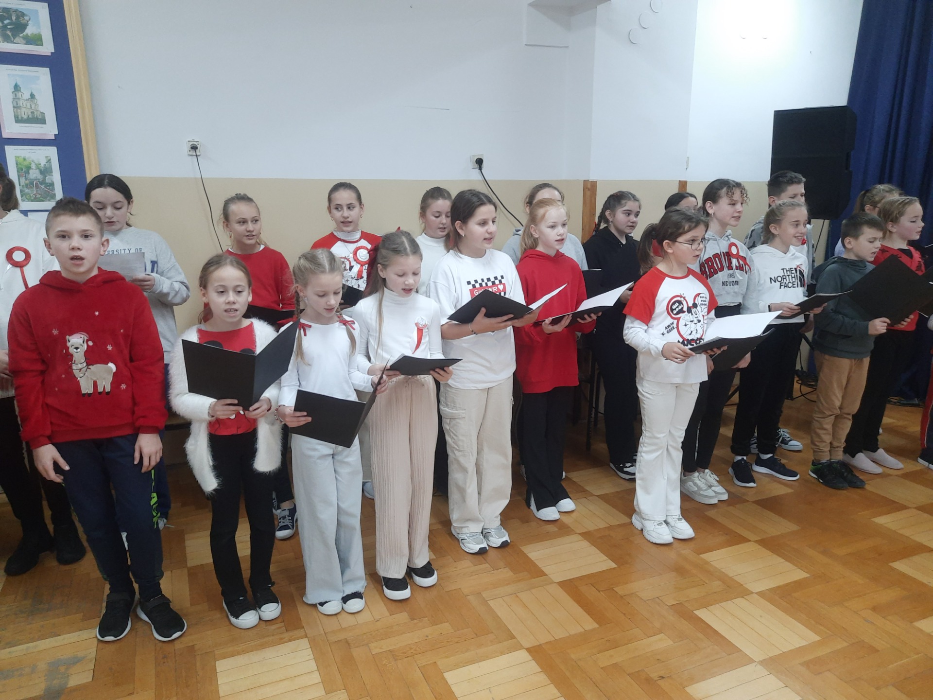 W dniu 8 listopada na jednej z przerw międzylekcyjnych zebrali się uczniowie wraz z nauczycielami, aby śpiewem uczcić niepodległość naszej Ojczyzny. Wśród utworów nie zabrakło najpopularniejszych żołnierskich pieśni, tj. "Przybyli ułani pod okienko", "Legiony", "Szara piechota". Nasze spotkanie zakończyło się odśpiewaniem "Mazurka Dąbrowskiego".