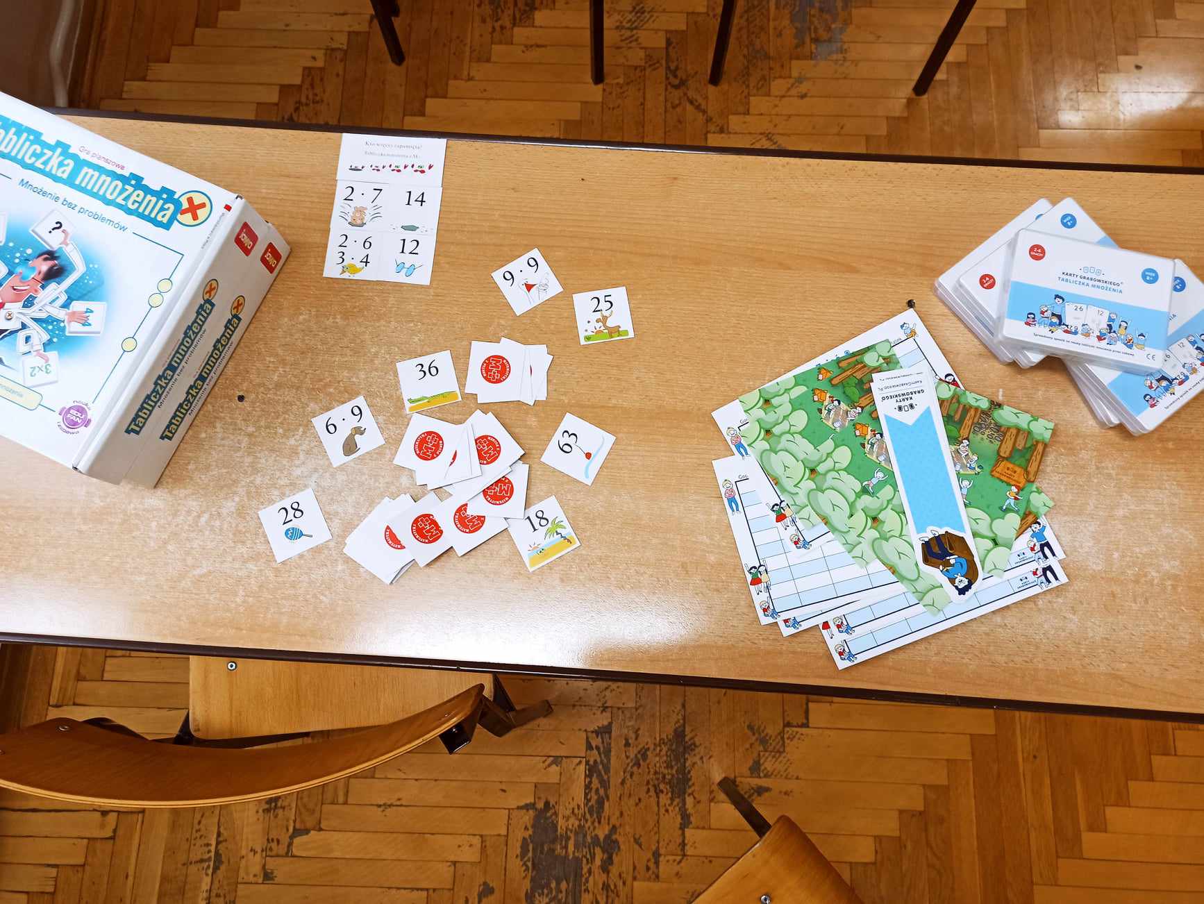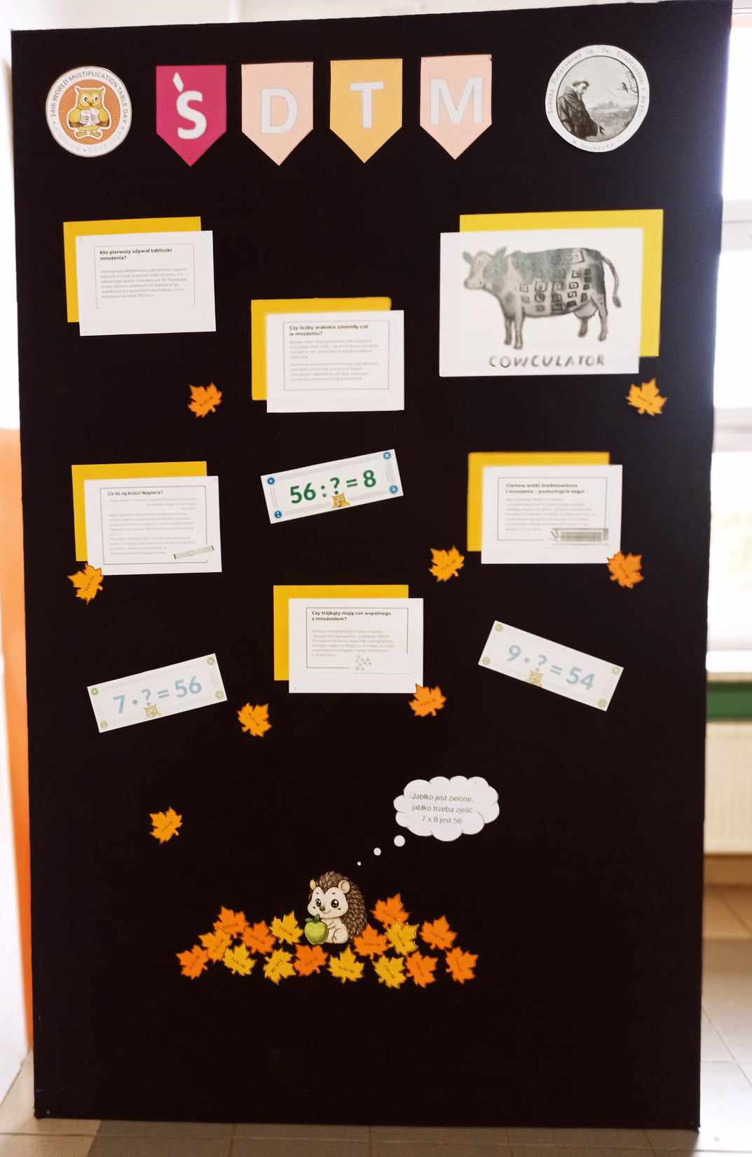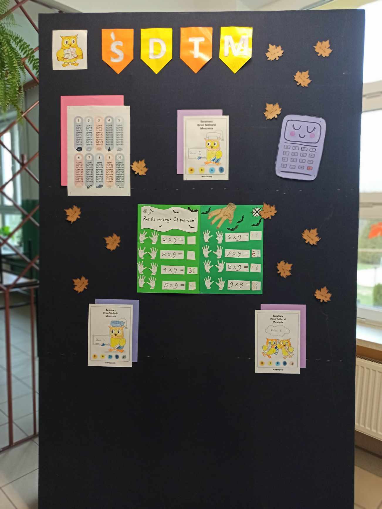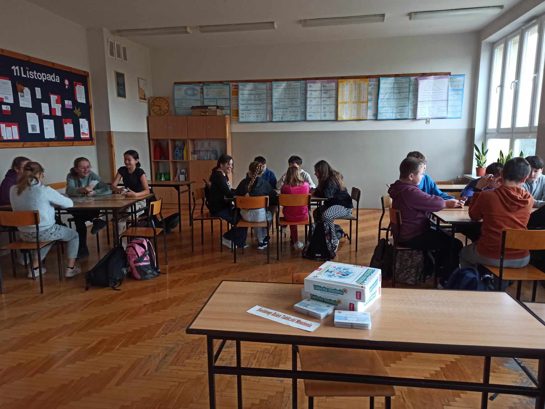 W tym dniu podczas lekcji matematyki, uczniowie klas V – VIII grali w grę CZARNA – CZERWONA Kartami Grabowskiego, a uczniowie klasy IV w grę planszową TABLICZKA MNOŻENIA, natomiast klasy I - III wypełniały dostosowane do swojego poziomu karty pracy np. znajdź cień sówki, wyjście z labiryntu itp. Nauczyli się również różnych sztuczek np. mnożenia metodą japońską oraz mnożenia na palcach przez 9.