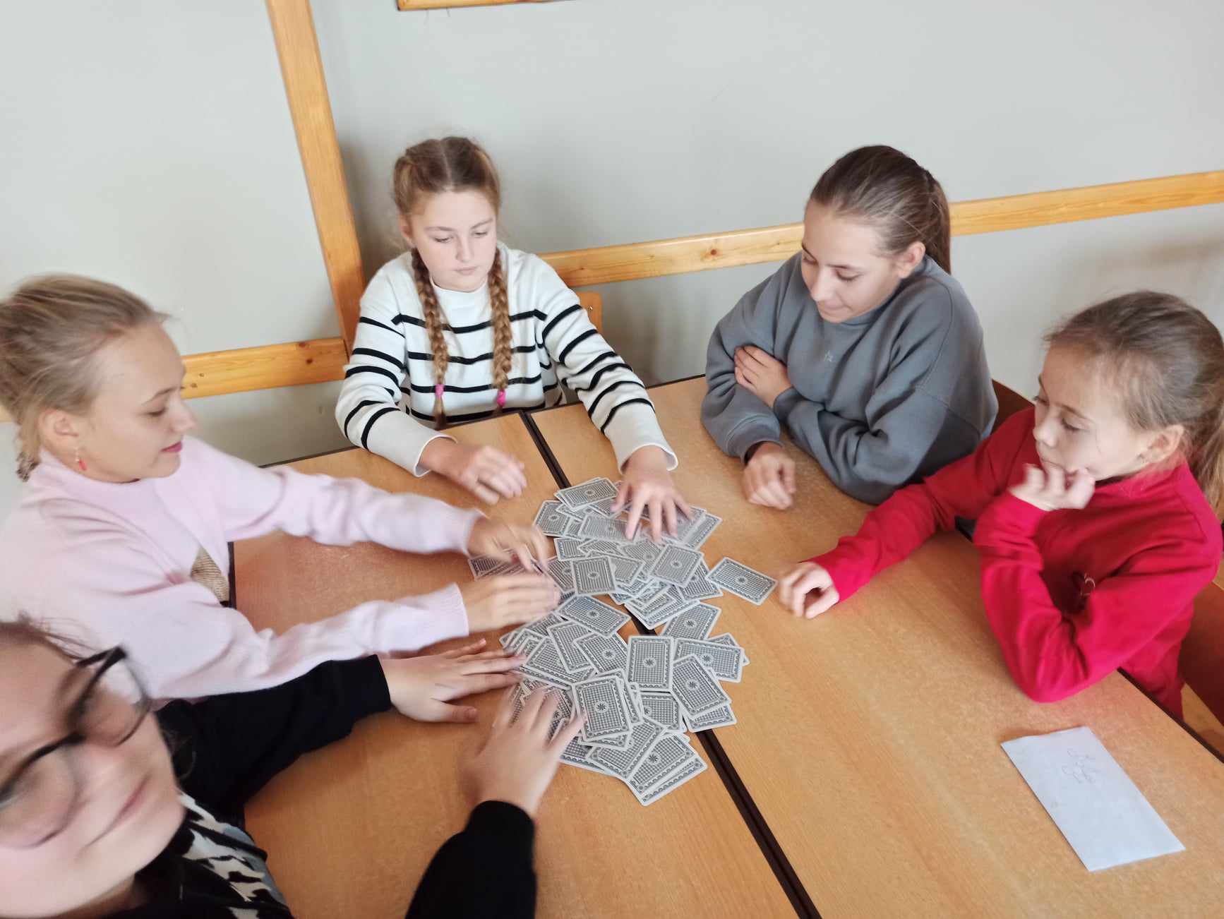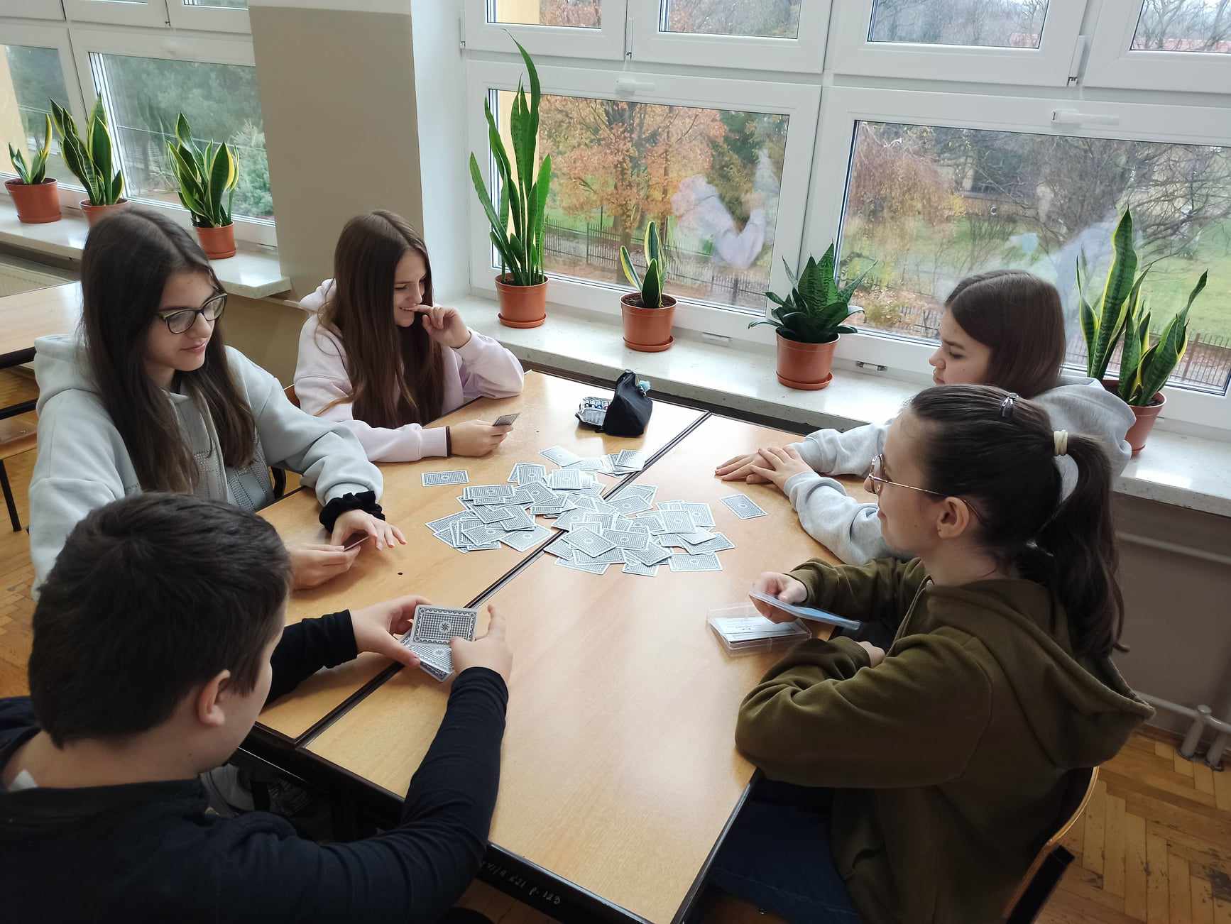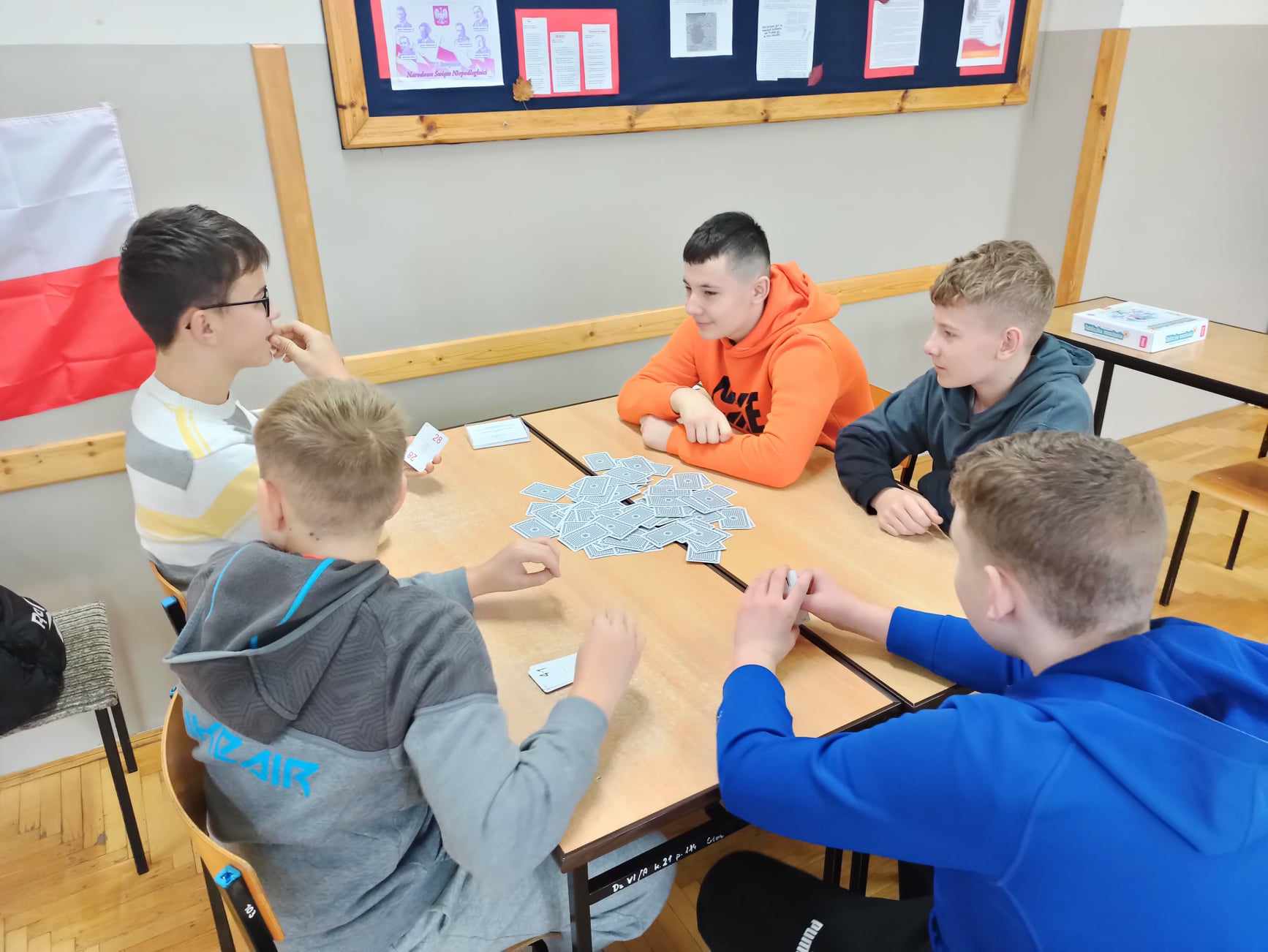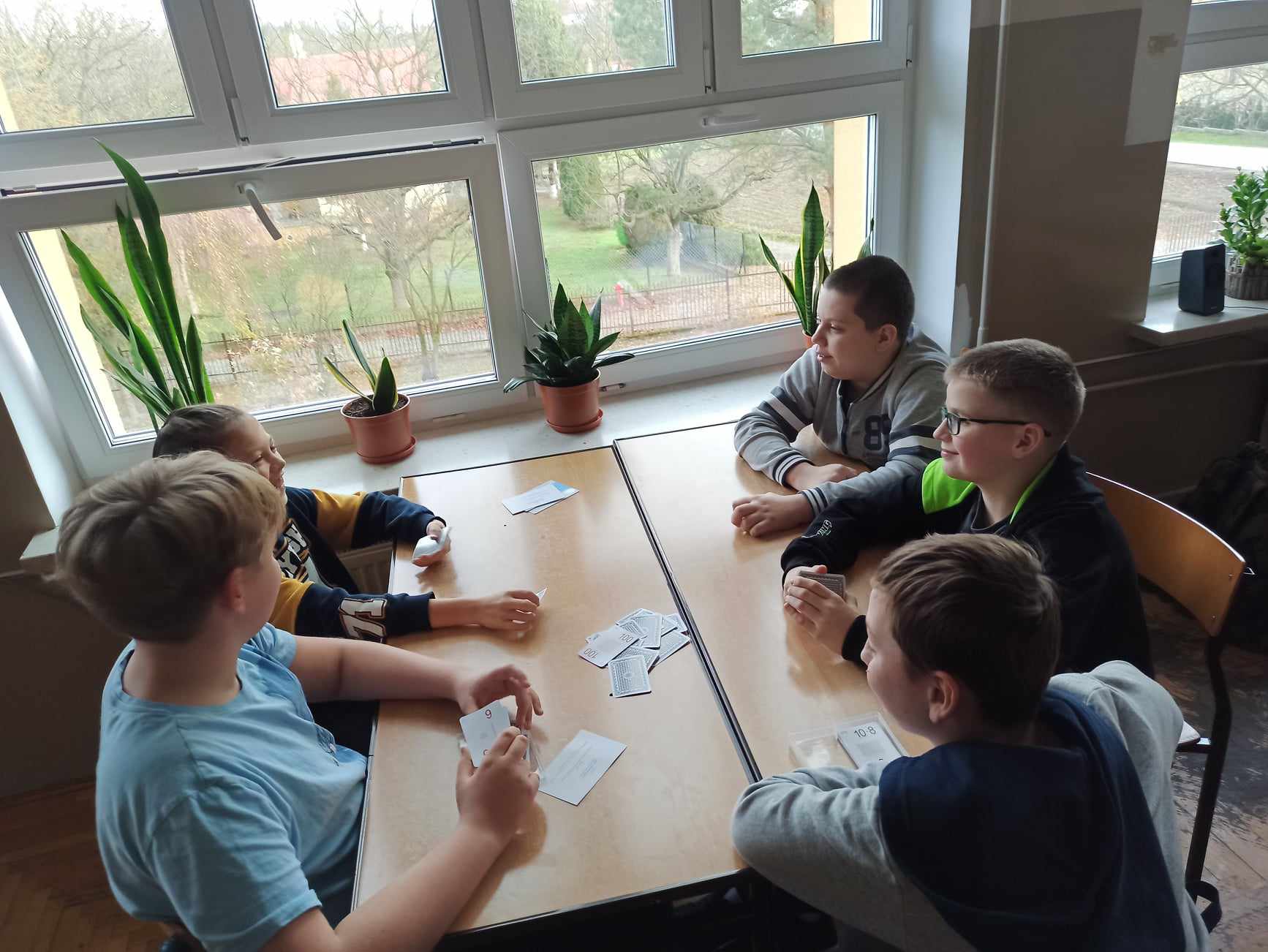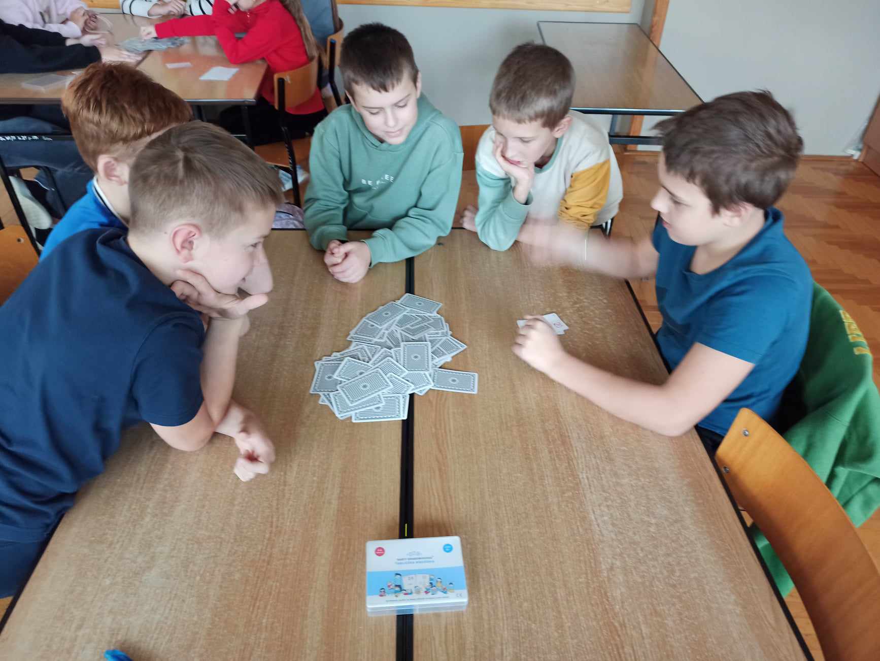 W tym dniu podczas lekcji matematyki, uczniowie klas V – VIII grali w grę CZARNA – CZERWONA Kartami Grabowskiego, a uczniowie klasy IV w grę planszową TABLICZKA MNOŻENIA, natomiast klasy I - III wypełniały dostosowane do swojego poziomu karty pracy np. znajdź cień sówki, wyjście z labiryntu itp. Nauczyli się również różnych sztuczek np. mnożenia metodą japońską oraz mnożenia na palcach przez 9.