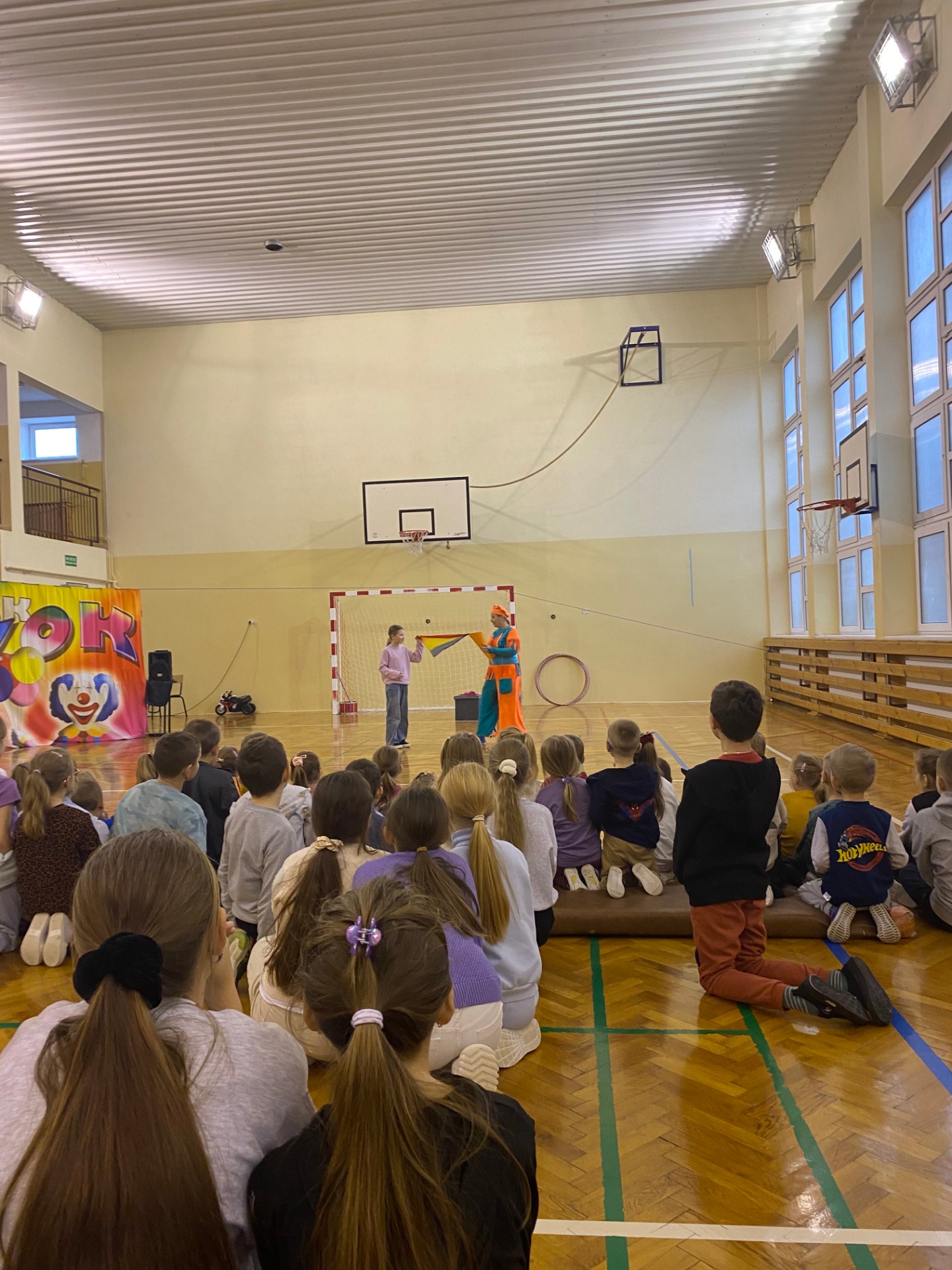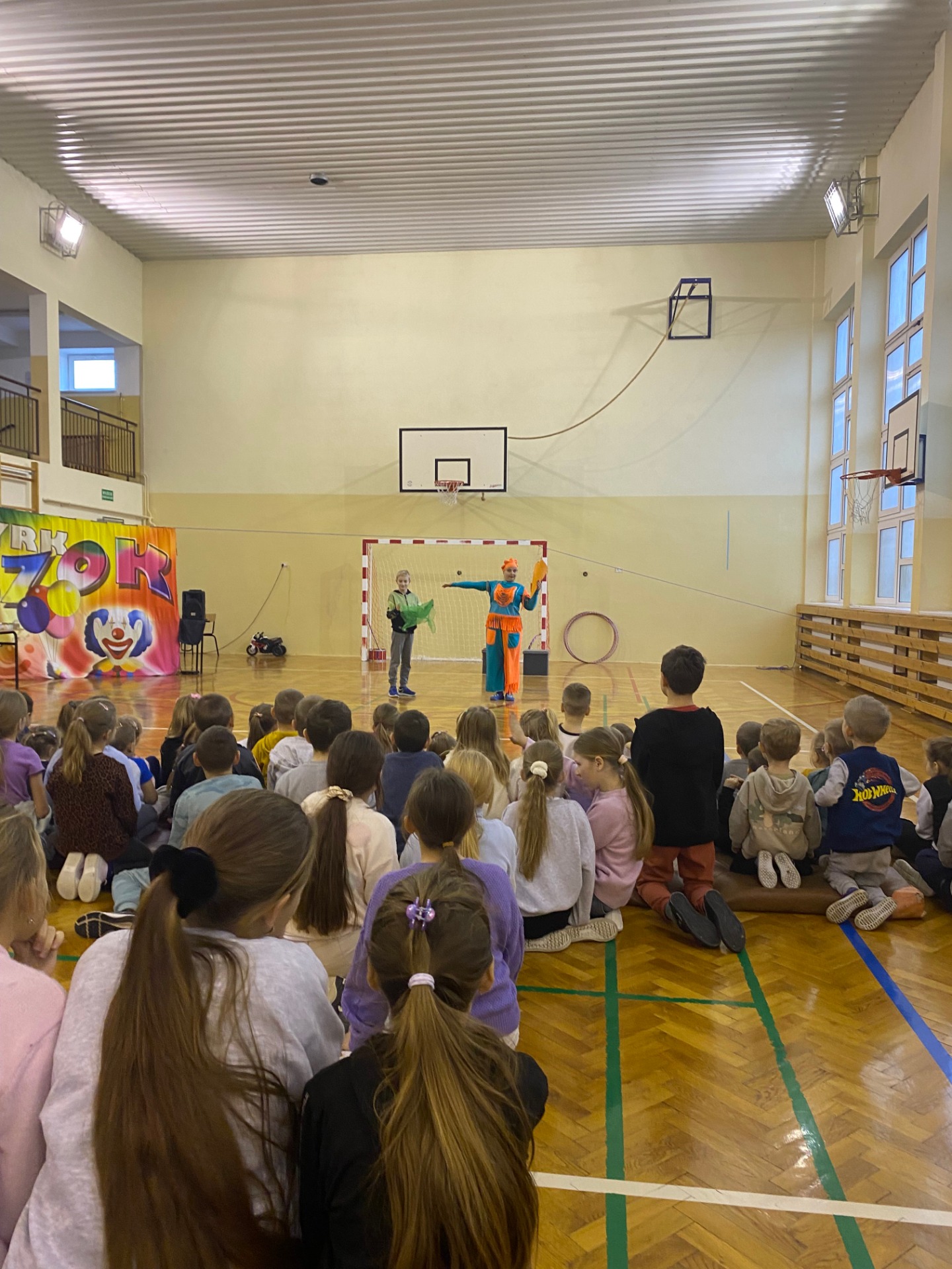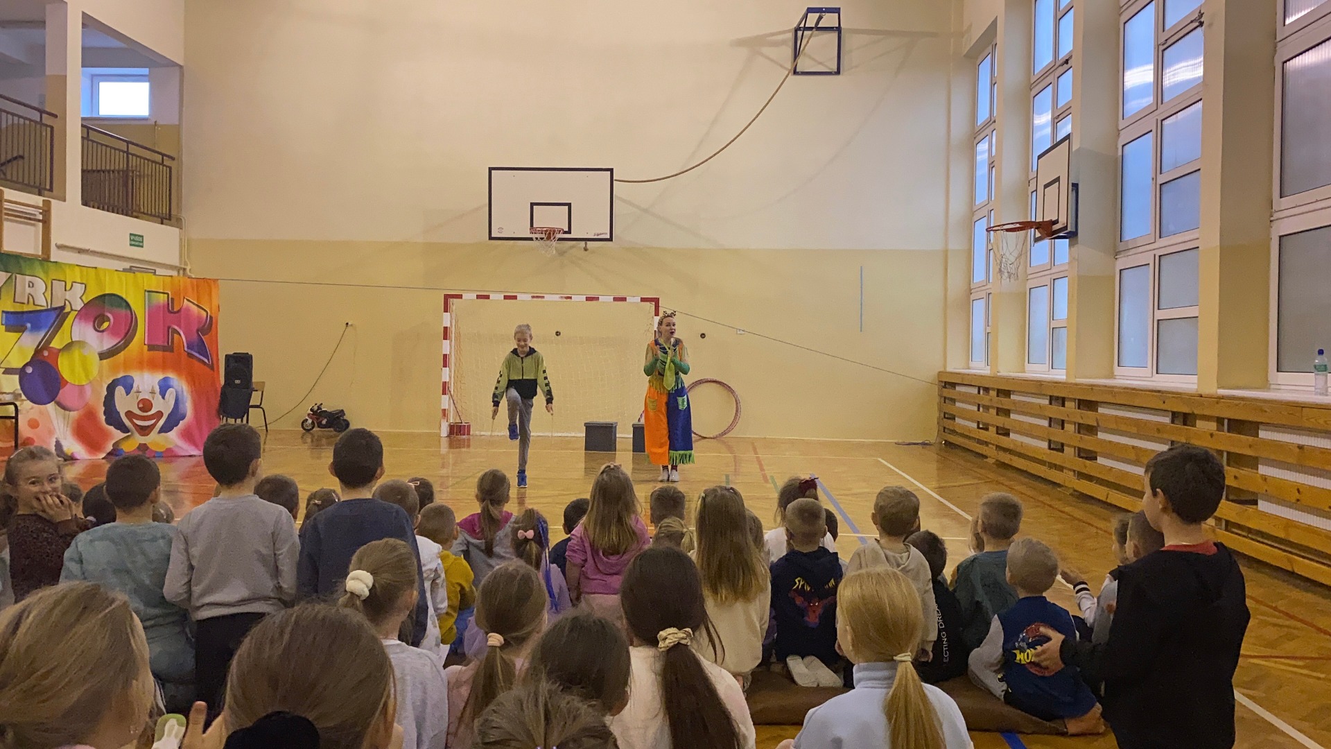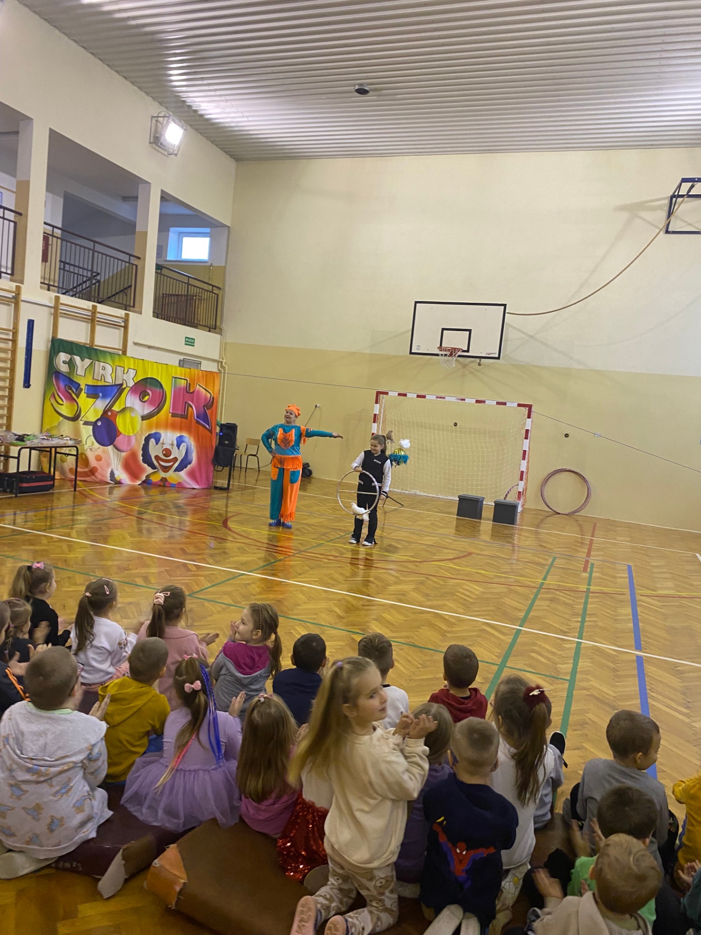 Dnia 9 grudnia 2024r. w naszej szkole gościliśmy cyrk ,,Szok”. Uczniowie naszej szkoły – od najmłodszych po najstarszych – wraz z gronem pedagogicznym obserwowali występy artystyczne. Najpierw na scenie pojawił się słoń, który wykonywał sztuczki z obręczami. Następnie do występu zostali zaproszeni nasi nauczyciele, którzy mieli okazję sprawdzić swoją sprawność fizyczną. Później widzieliśmy zmagania dwóch artystek, zaprezentowano pokaz z ptakami oraz pieskami. Na koniec na scenie pojawił się ogromny, tańczący miś. Wszyscy wróciliśmy na lekcje w dobrych humorach.