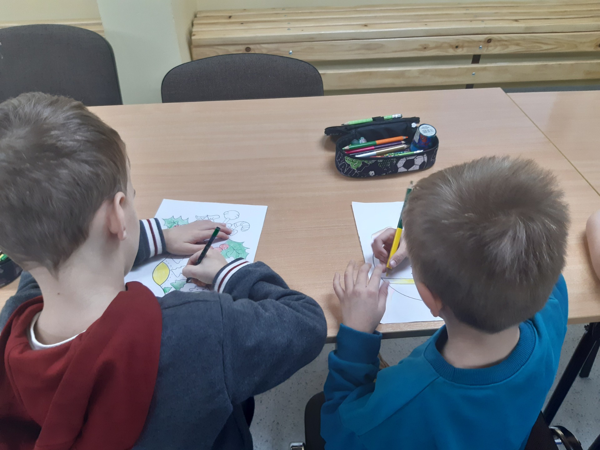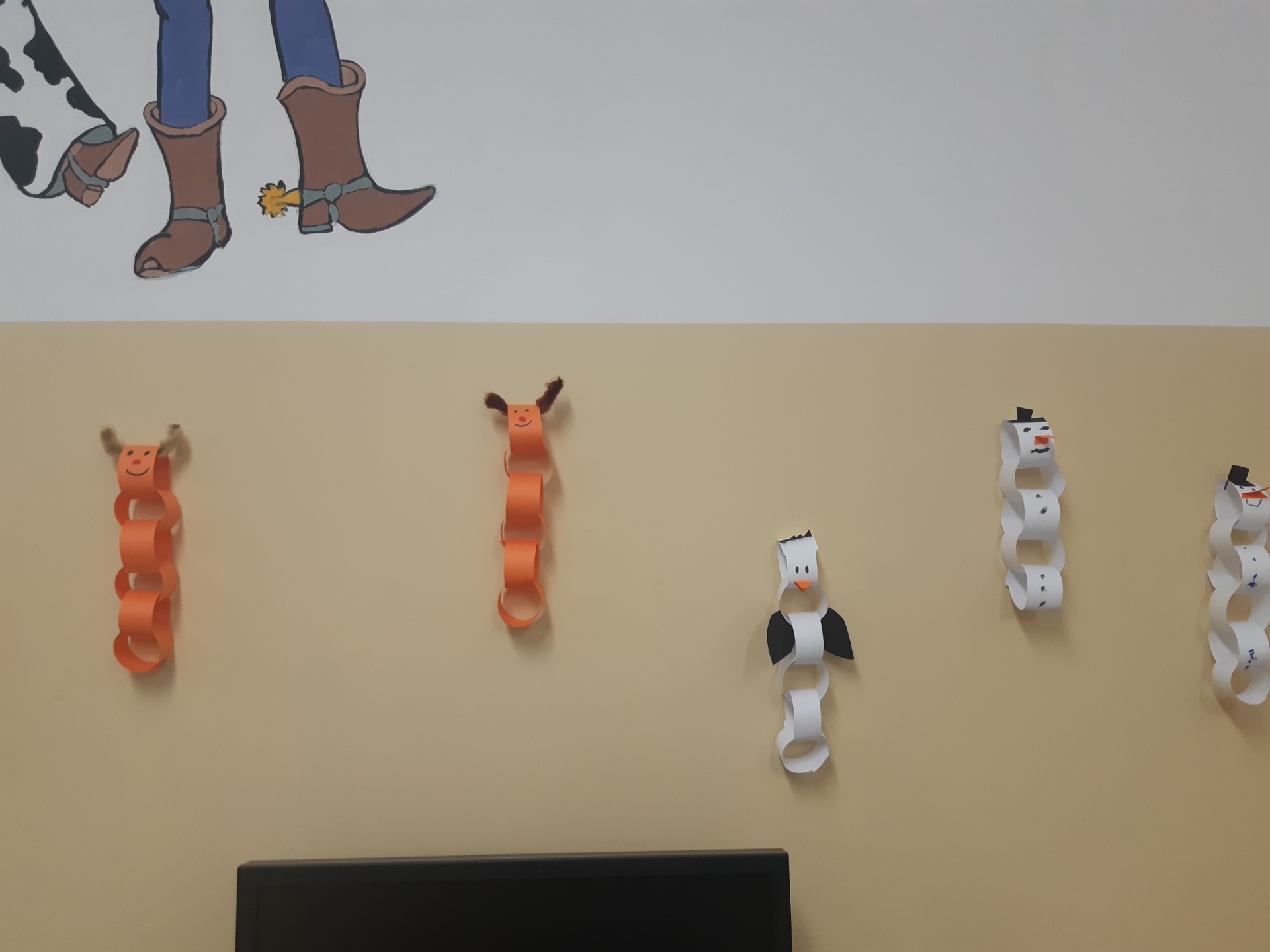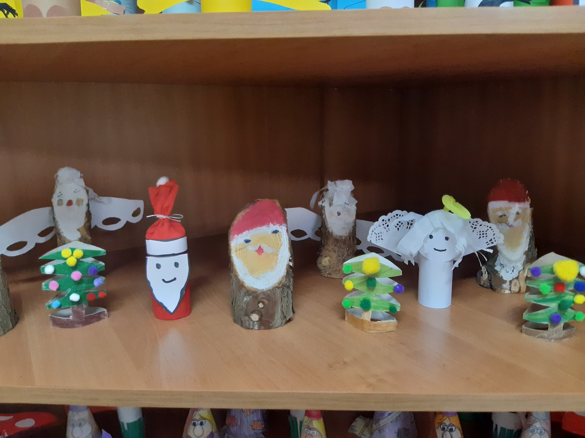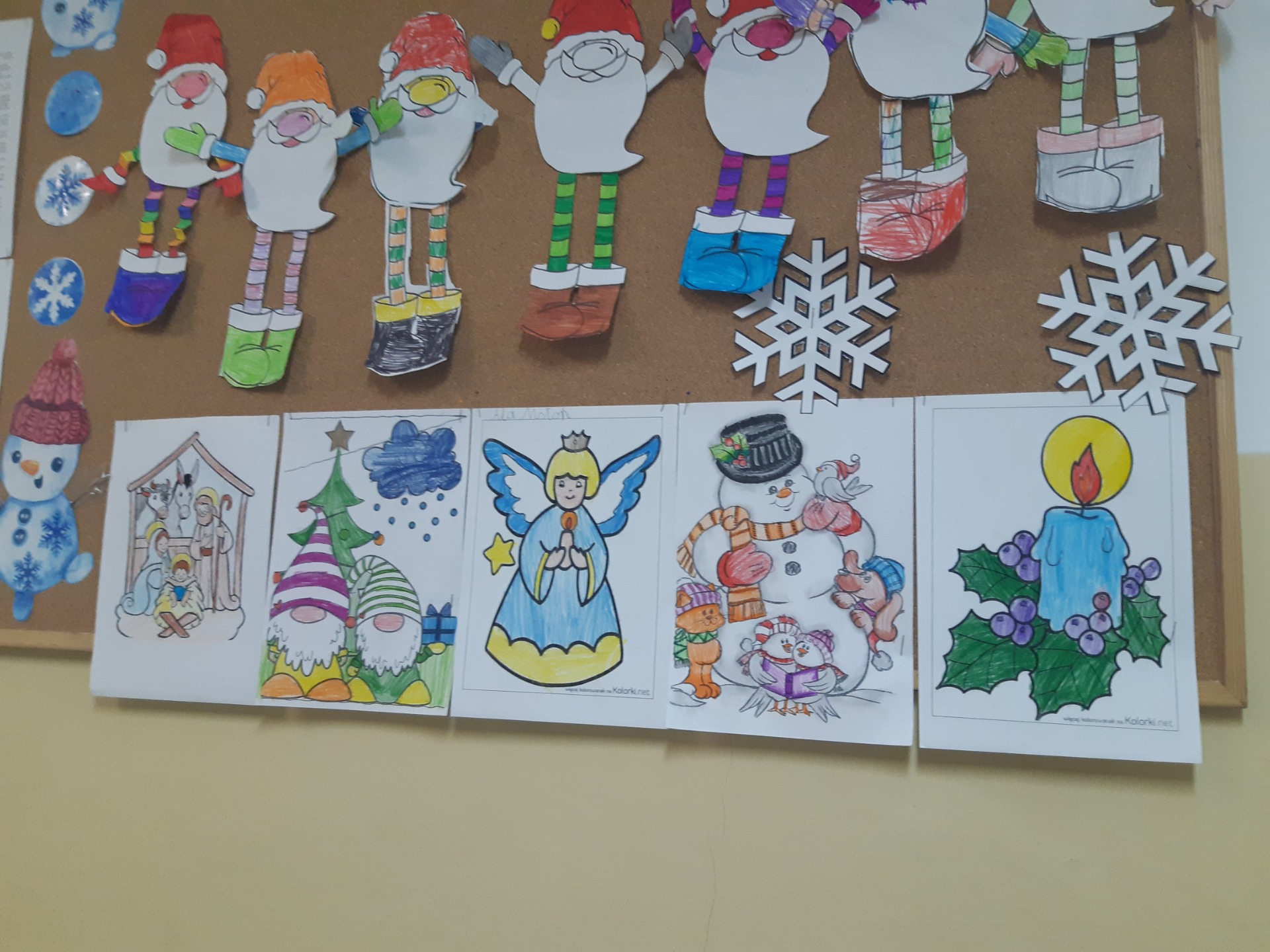 Wykonywali mnóstwo prac plastycznych, dekoracji zimowych i świątecznych sali: Mikołaje, anioły, choinki, ozdoby choinkowe. Wspólnie ubierali choinkę. Wykonywali kartki świąteczne, wspólnie redagowali życzenia. Oglądali „Opowieść wigilijną" Charlesa Dikensa, czytali baśnie.