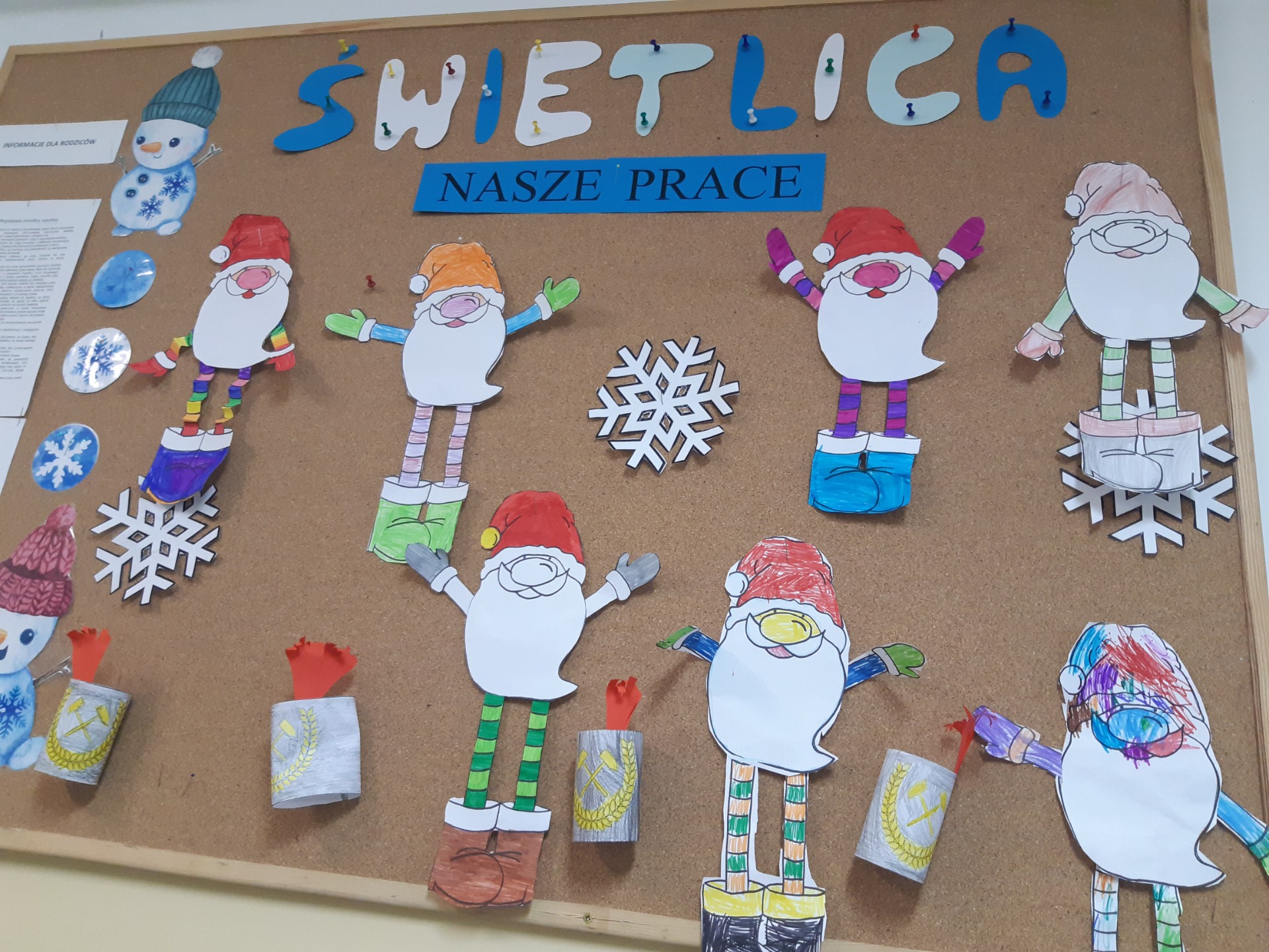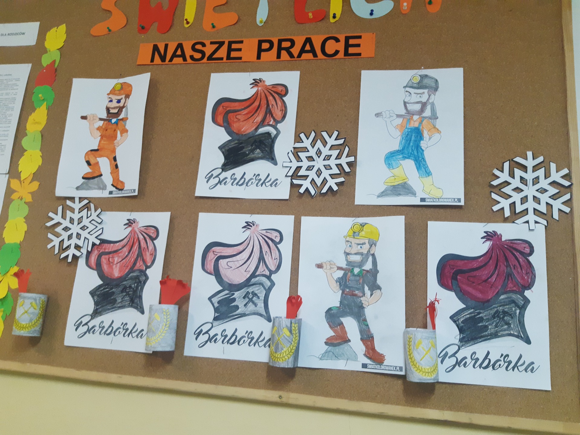W grudniu uczniowie obchodzili Barbórkę – święto górnictwa – rozmawiali o znaczeniu święta, tradycjach barbórkowych, strojach górnika, czytali wiersze o tematyce górniczej. Wykonywali prace plastyczne – czapka górnika i portret górnika.