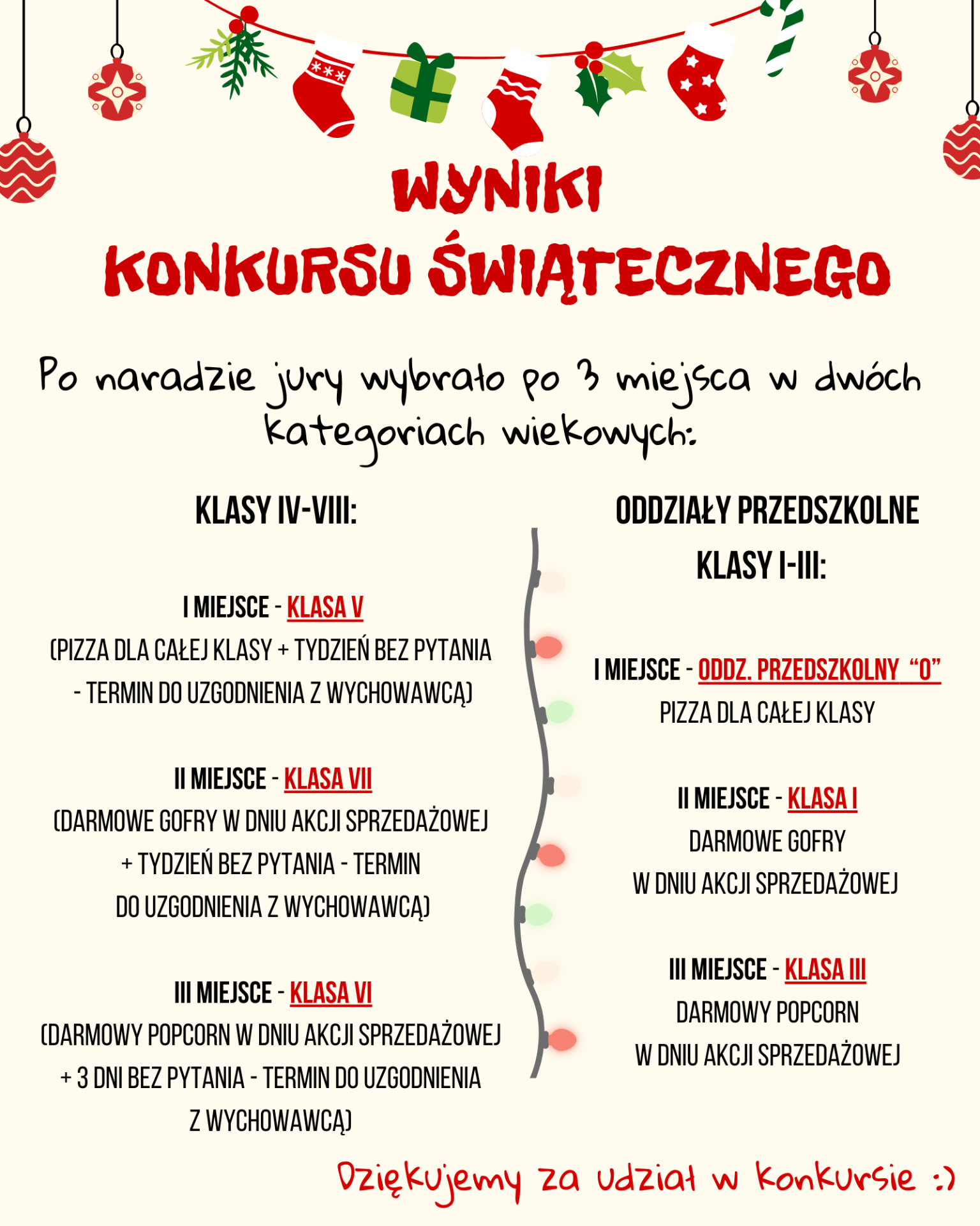 WYNIKI KONKURSU ŚWIĄTECZNEGO
