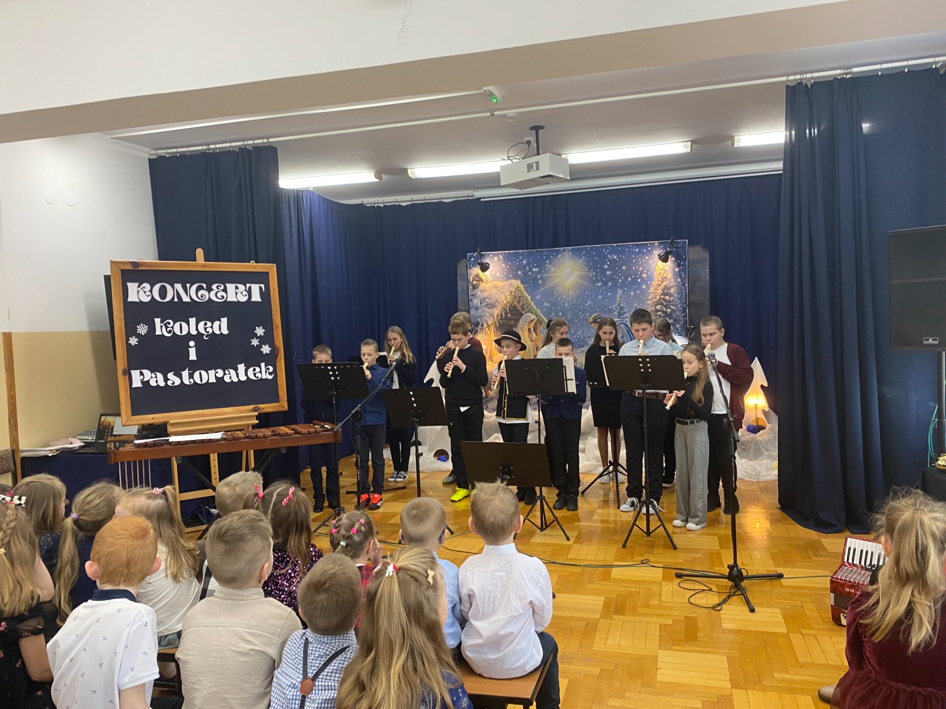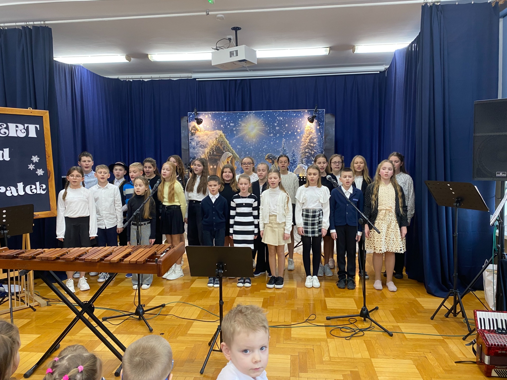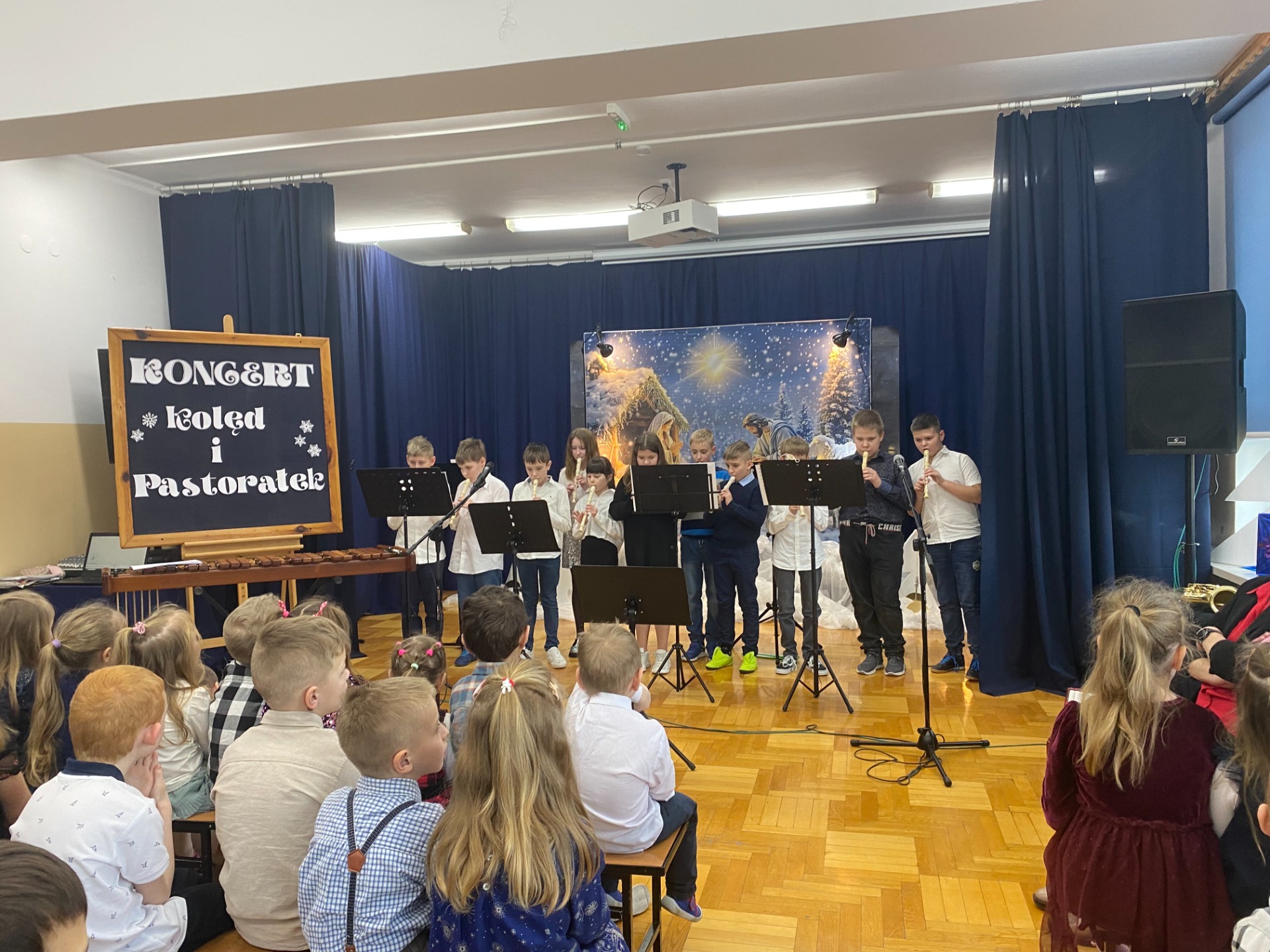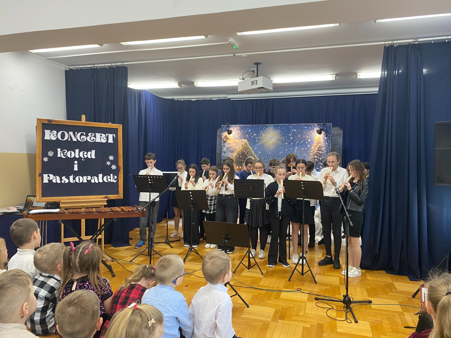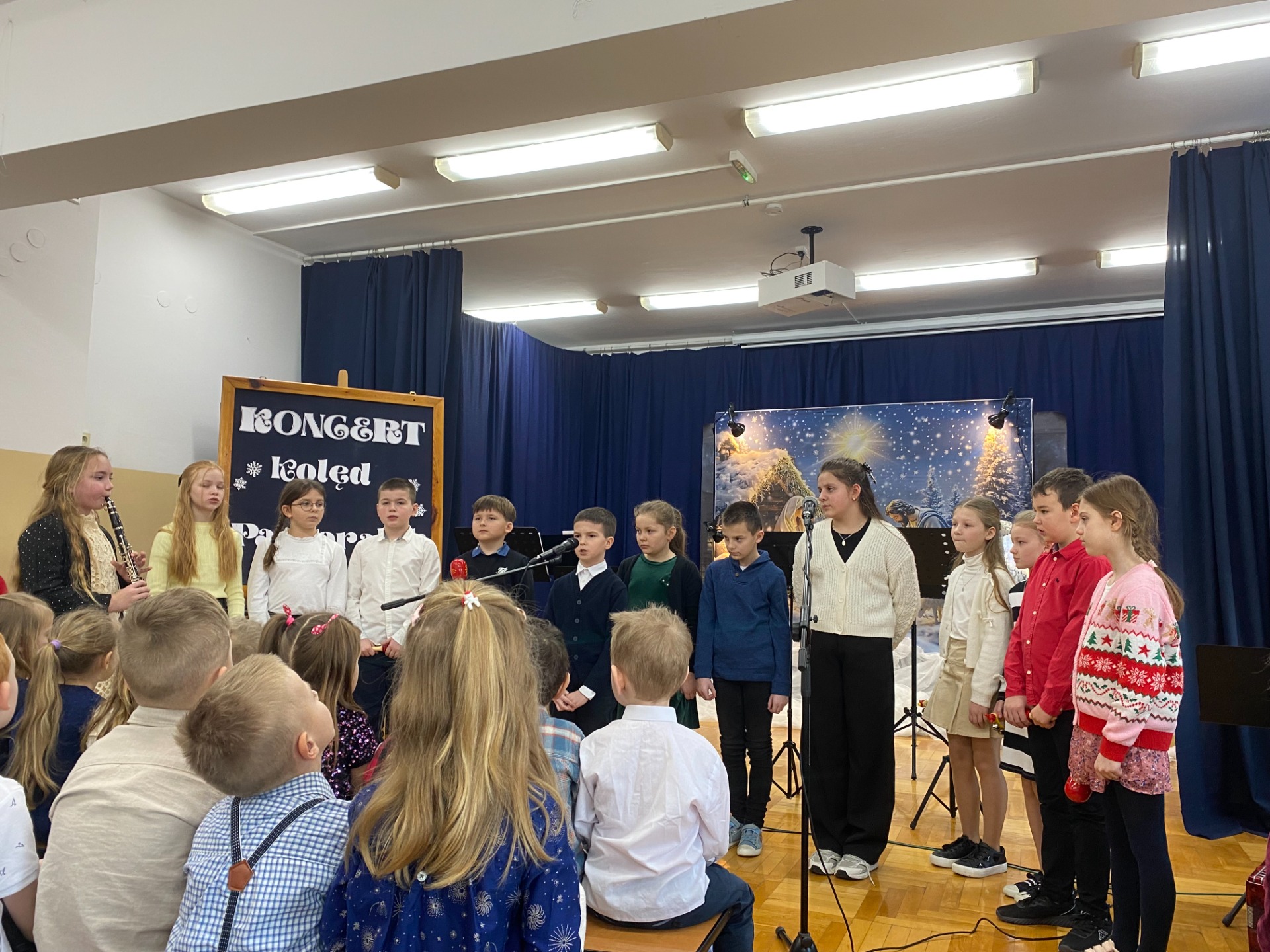 Dnia 29 stycznia 2025 r. w naszej szkole odbył się ,,Koncert Kolęd i Pastorałek’’. To już tradycyjne wydarzenie, podczas którego cała społeczność szkolna uczniowie, nauczyciele oraz pracownicy szkoły gromadzą się na wspólne kolędowanie. Mieliśmy przyjemność zobaczyć występy przygotowane przez naszych uczniów, od tych małych po tych dużych. Dodatkowo pojawiły się występy solo z instrumentami, w których zaprezentowali się nasi zdolni uczniowie. Wydarzenie to stworzyło niezwykle, ciepłą i miłą atmosferę. Przysłuchiwaliśmy się pięknym kolędom i pastorałkom. Dziękujemy naszym uczniom za pracę włożoną w przygotowanie występów i zaangażowanie. Podziękowania składamy również na ręce Pań, które przygotowały naszych najmłodszych kolegów i koleżanki oraz Pani Annie Bieniasz – Markowicz, która zorganizowała tę uroczystość przygotowując starszych uczniów do występów.