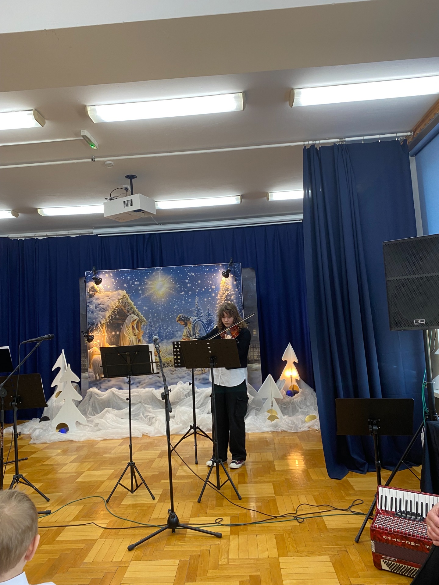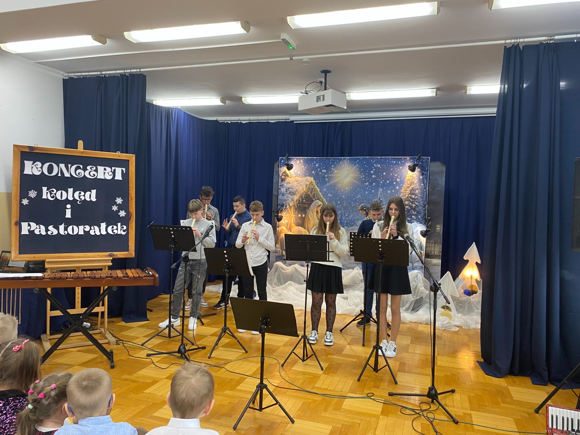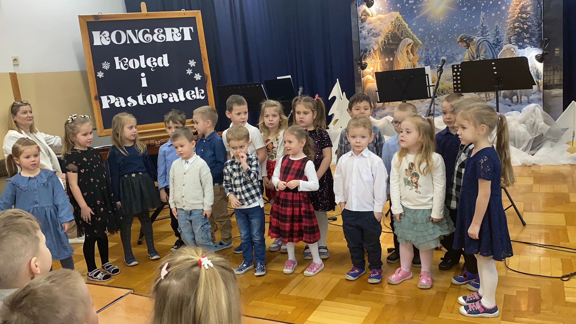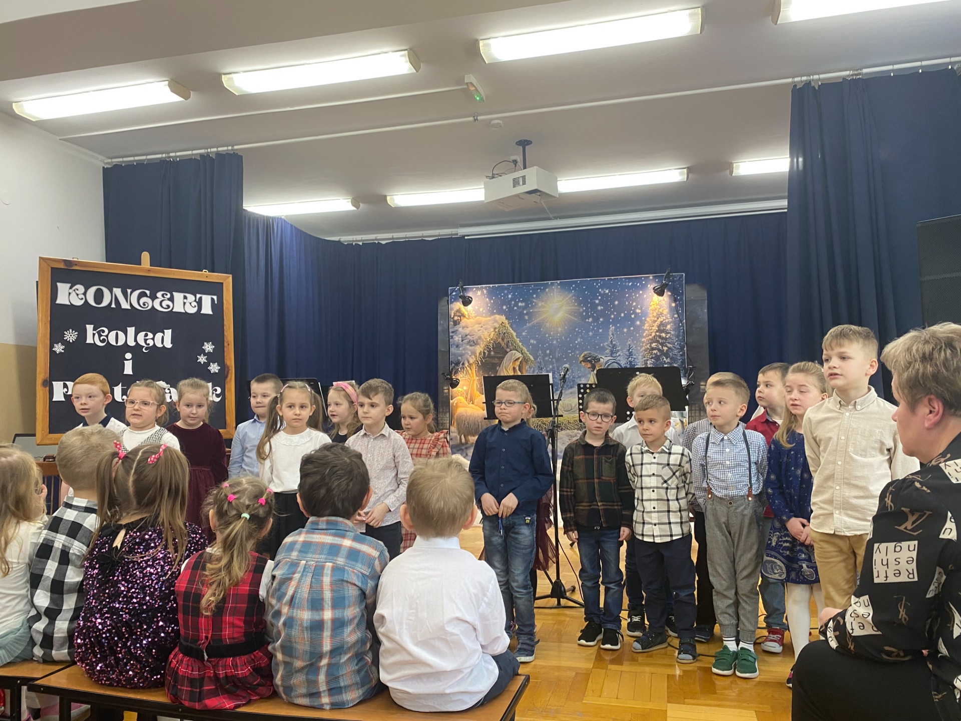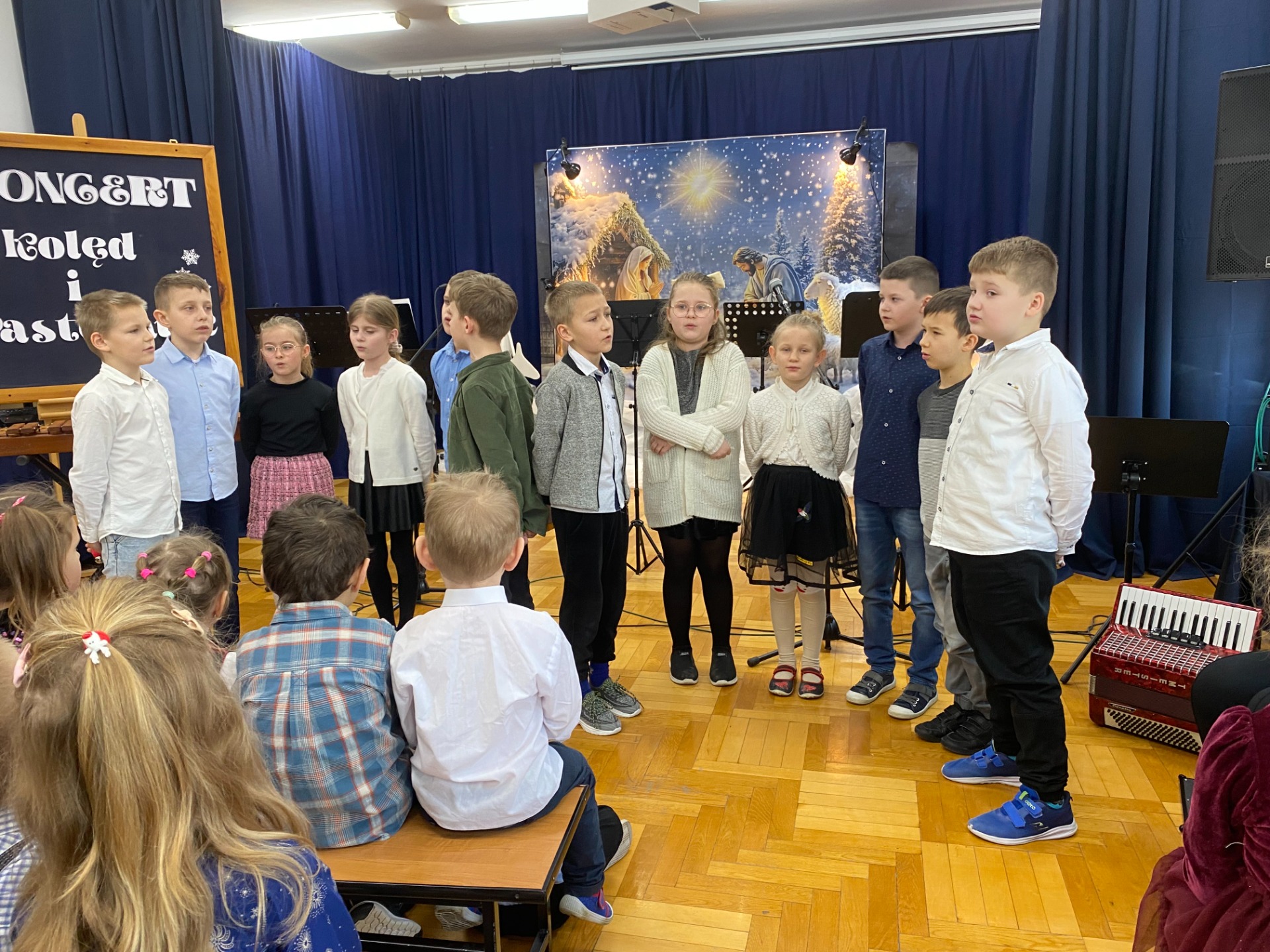 Dnia 29 stycznia 2025 r. w naszej szkole odbył się ,,Koncert Kolęd i Pastorałek’’. To już tradycyjne wydarzenie, podczas którego cała społeczność szkolna uczniowie, nauczyciele oraz pracownicy szkoły gromadzą się na wspólne kolędowanie. Mieliśmy przyjemność zobaczyć występy przygotowane przez naszych uczniów, od tych małych po tych dużych. Dodatkowo pojawiły się występy solo z instrumentami, w których zaprezentowali się nasi zdolni uczniowie. Wydarzenie to stworzyło niezwykle, ciepłą i miłą atmosferę. Przysłuchiwaliśmy się pięknym kolędom i pastorałkom. Dziękujemy naszym uczniom za pracę włożoną w przygotowanie występów i zaangażowanie. Podziękowania składamy również na ręce Pań, które przygotowały naszych najmłodszych kolegów i koleżanki oraz Pani Annie Bieniasz – Markowicz, która zorganizowała tę uroczystość przygotowując starszych uczniów do występów.