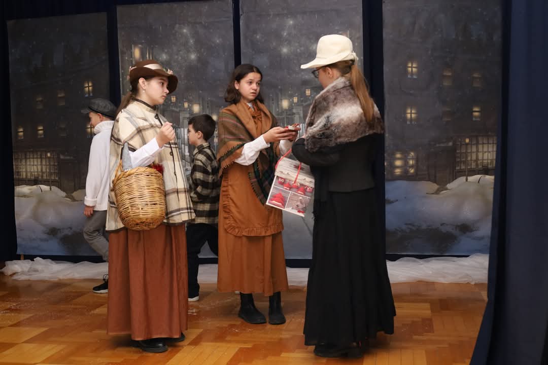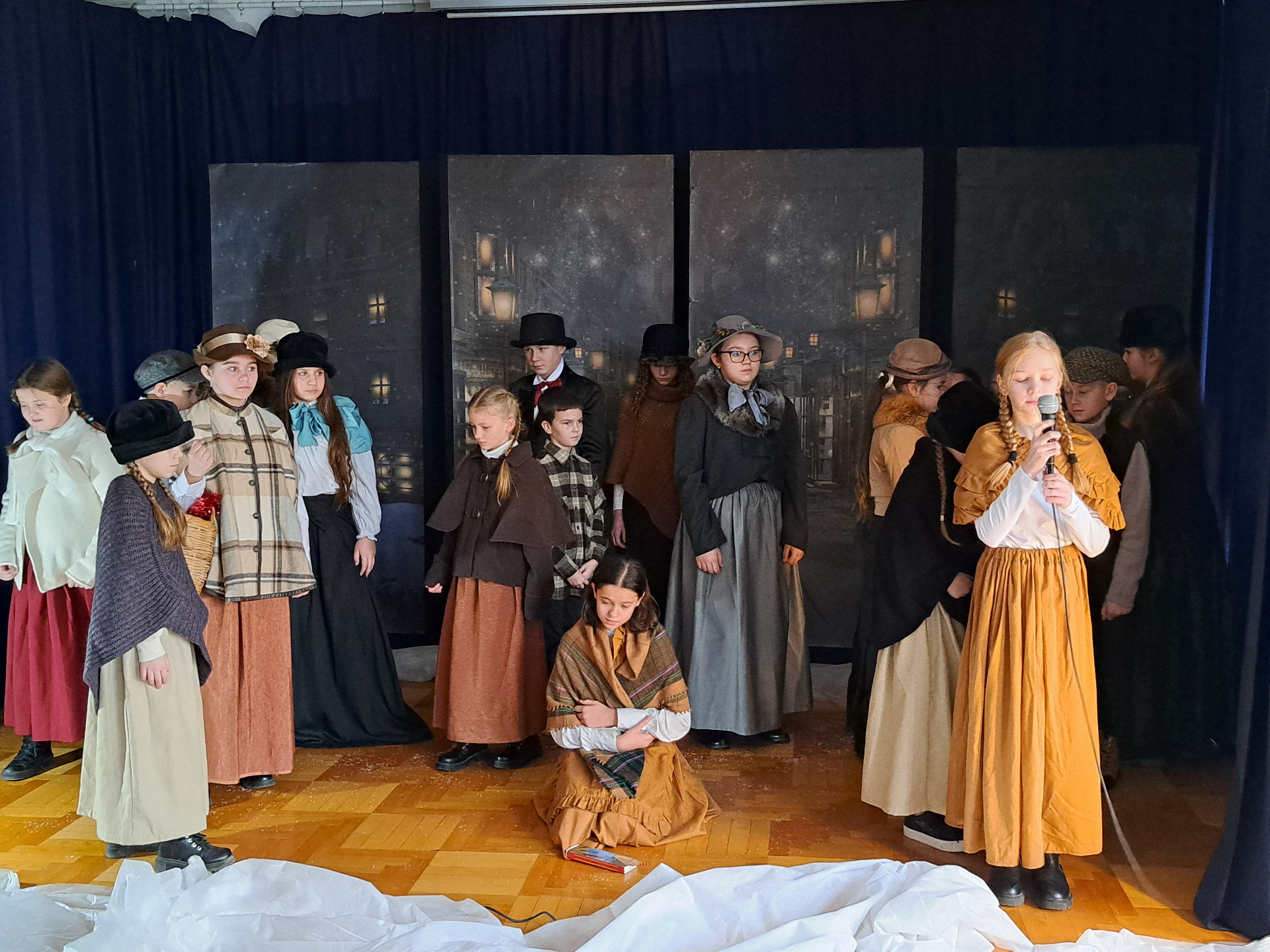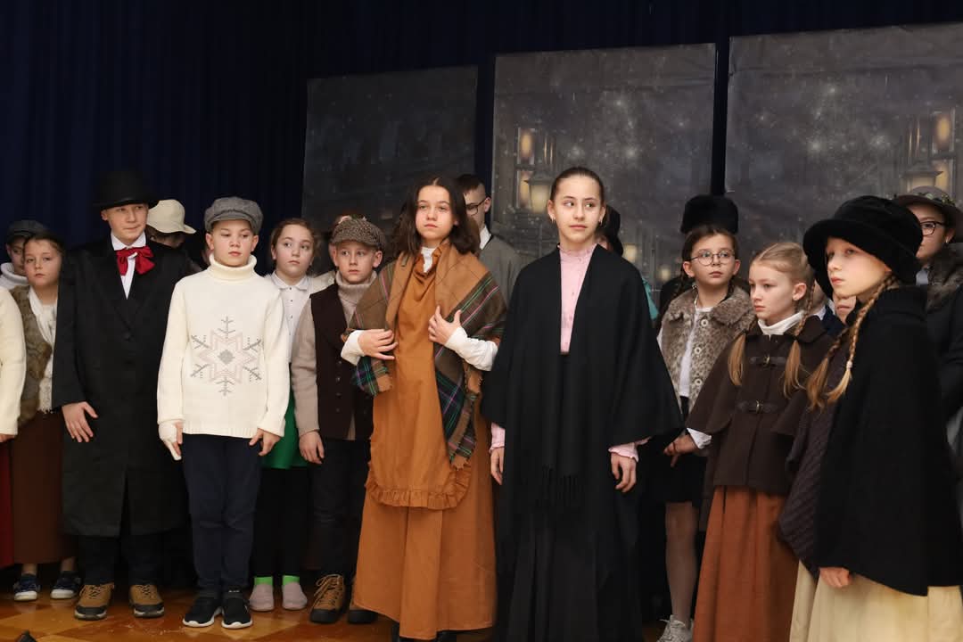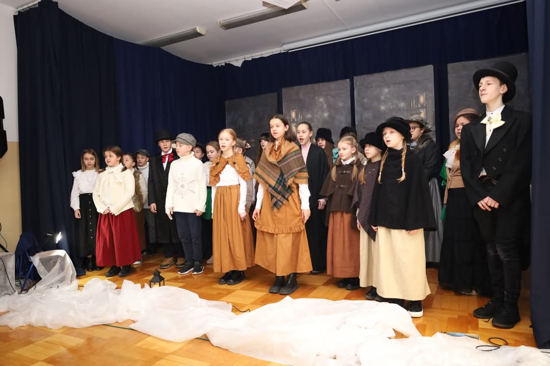 Dnia 24 stycznia 2025 r. w naszej szkole odbyło się przedstawienie – musical ,,Dziewczynka z zapałkami’’. Spektakl ten zaprezentowali uczniowie uczęszczający na zajęcia muzyczne. Nad całością występu czuwała Pani Anna Bieniasz – Markowicz. Serdecznie dziękujemy za wspaniałe przedstawienie, które wzbudziło w nas wiele emocji oraz za głębokie przesłanie mówiące, że dobro zawsze powraca. Piękne kostiumy aktorów nawiązywały do klimatu tamtejszych czasów. Bogata scenografia sprawiła, że czuliśmy się częścią tej baśni.