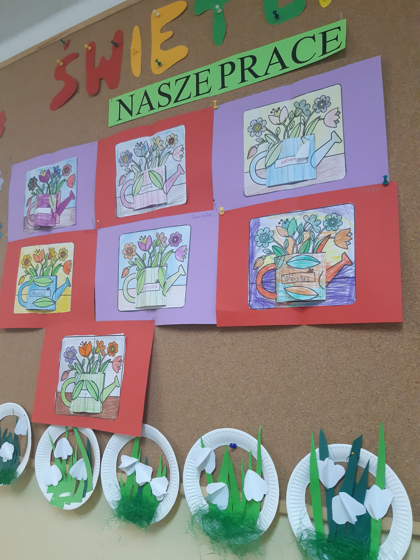 Już od początków marca, uczniowie uczestniczący na świetlicę szkolną, przygotowywali się do powitania wiosny. Przypominali pierwsze zwiastuny wiosny: ptaki, rośliny, zwierzęta. Poznawali cechy charakterystyczne marcowej pogody, jej zmienność. Wykonywali mnóstwo prac plastycznych tworząc dekoracje w sali: piękną wiosenną łąkę, portret Pani Wiosny, kwiaty, owady, wykorzystywali przy tym różne techniki plastyczne. Rozwiązywali też rebusy o tematyce wiosennej, słuchali piosenek i wierszy. 21 marca wspólnie powitali Wiosnę.