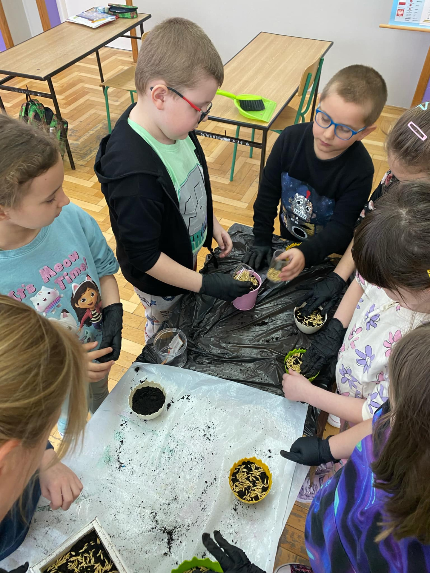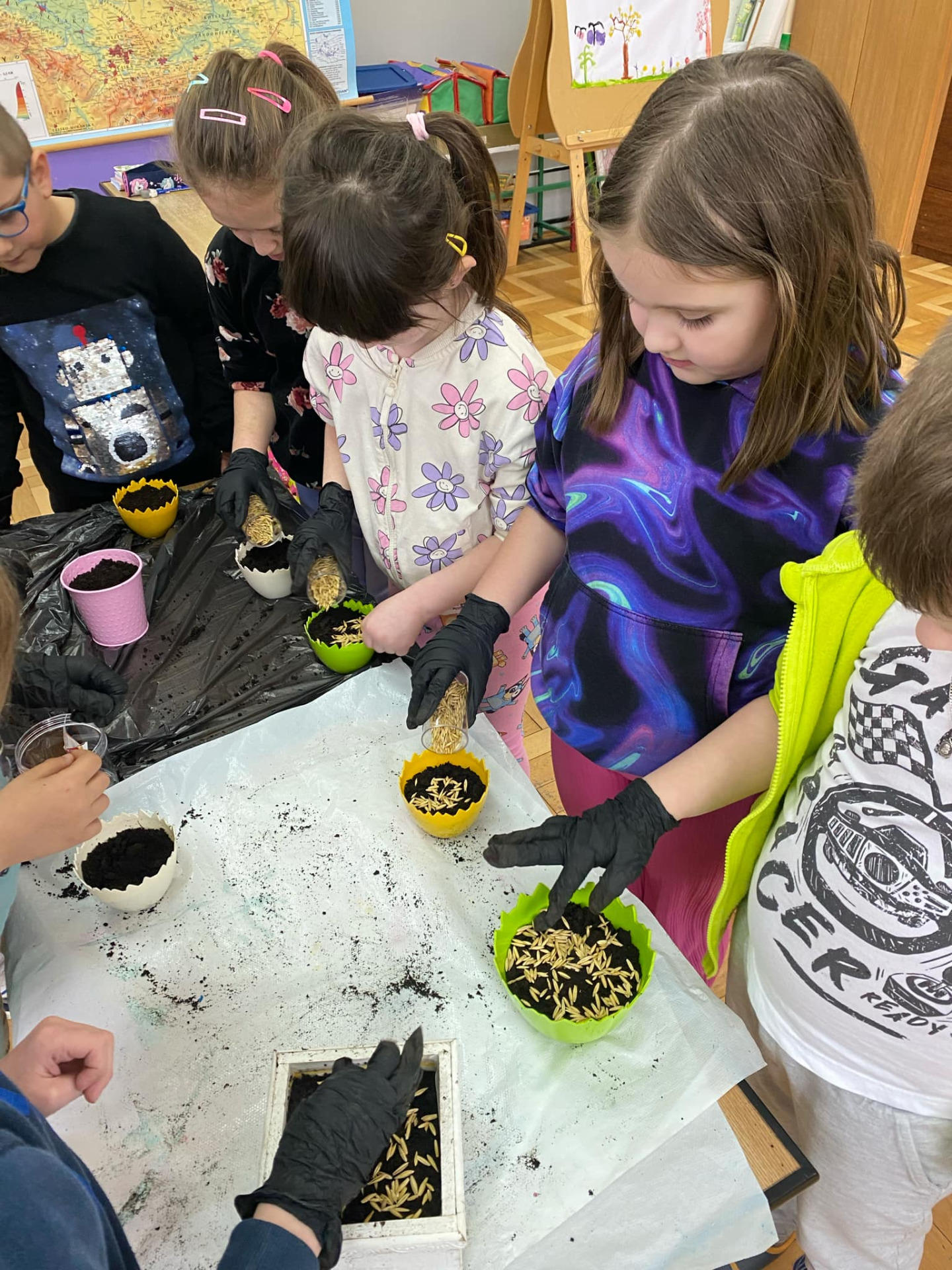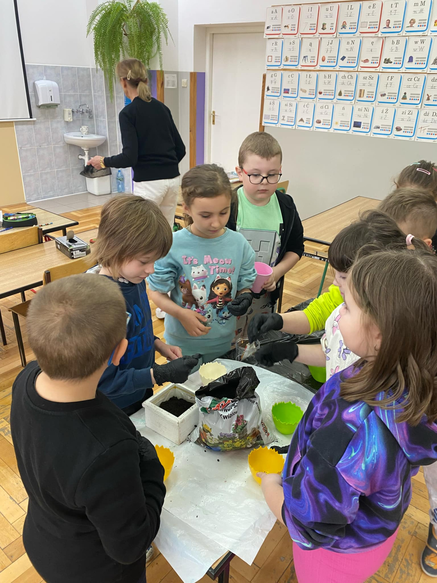 W klasie „ I ” przeprowadzone zostały lekcje w ramach zajęć integracyjnych edukacji polonistyczno-przyrodniczej, społecznej i plastycznej z wykorzystaniem sprzętu zakupionego w ramach programu #LaboratoriaPrzyszłości i #LaboratoriaPrzyszlosci. Uczniowie realizując tematy „zwiastuny wiosny, przygotowanie do Świąt Wielkanocnych i od nasionka i cebulki do roślinki ” poznali zasady i sposoby sadzenia, wysiewu oraz pielęgnacji roślin. W trakcie zajęć edukacji plastycznej i polonistyczno-przyrodniczej zostały przygotowane ozdobne doniczki, nasionka oraz opracowany plan pracy i prowadzenia obserwacji owsa świątecznego i rzeżuchy. Aktywna praca i zaangażowanie uczniów widoczne jest na zamieszczonych zdjęciach.