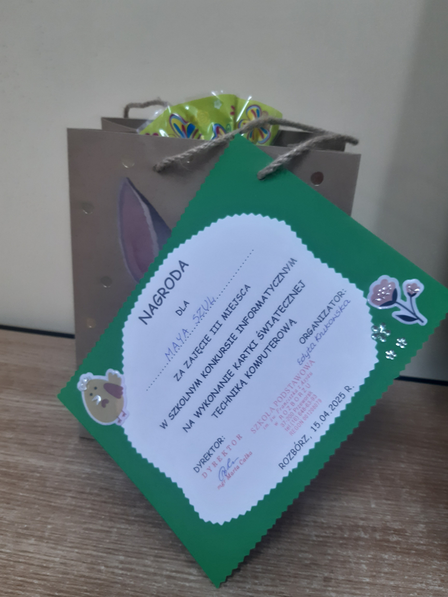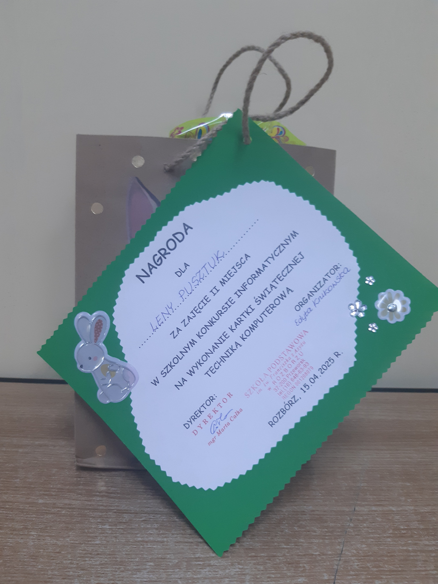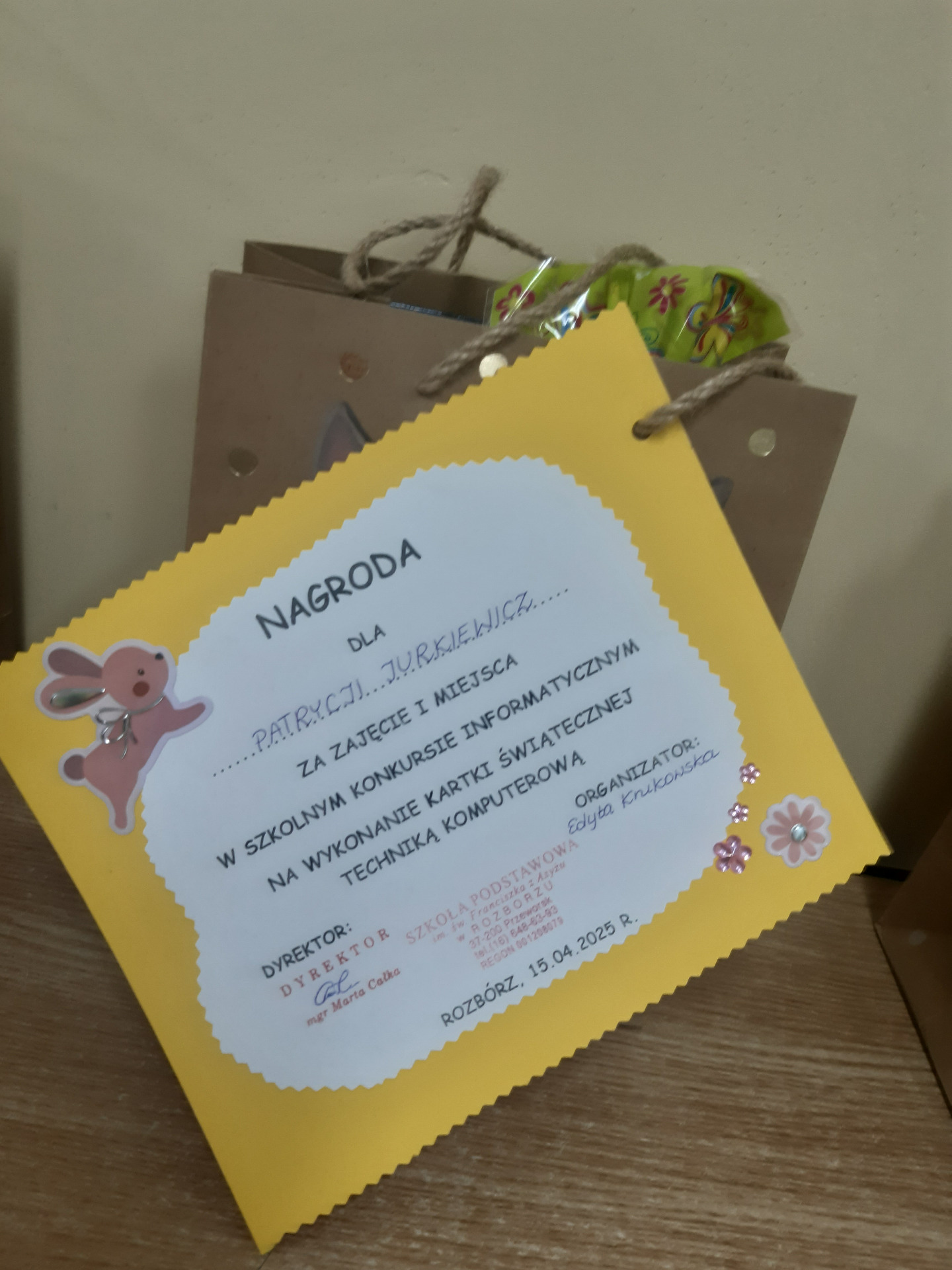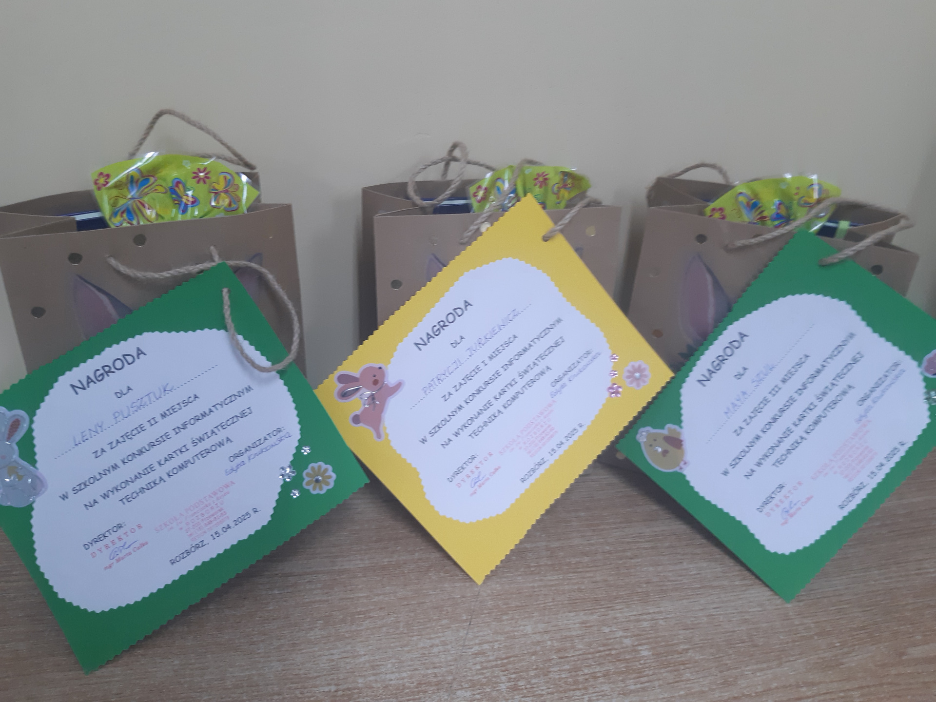 W dniach od 31 marca do 7 kwietnia 2025r. został przeprowadzony Szkolny Konkurs Informatyczny, zorganizowany przez panią Edytę Krukowską, na wykonanie kartki świątecznej techniką komputerową.