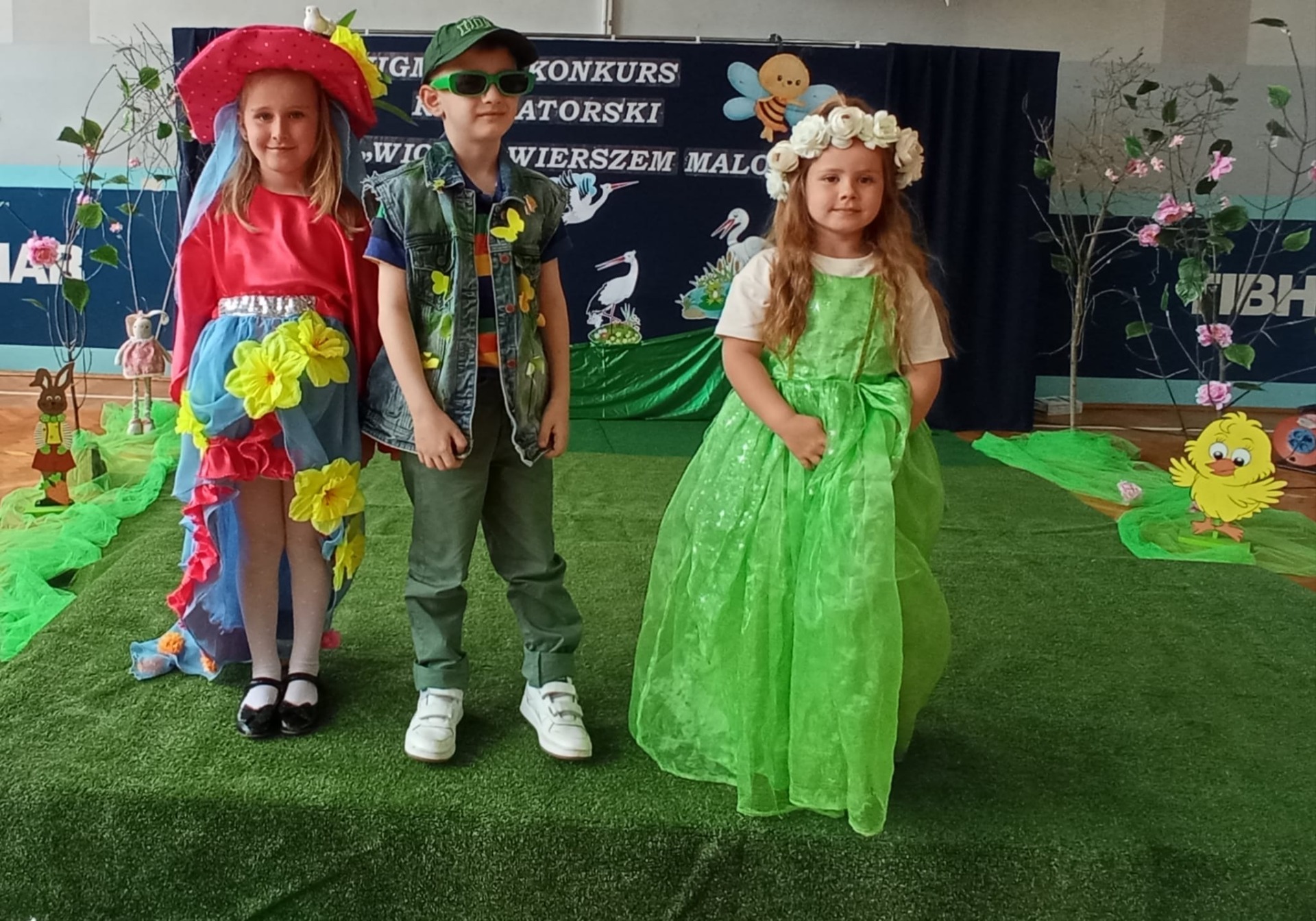 25 kwietnia nasze przedszkolaki - Liwia Jedynak, Otylia Pałys oraz Kornel Wołoszyn, wzięły udział w III Gminnym Konkursie Recytatorskim „Wiosna wierszem malowana”. Z radością informujemy, iż Otylia oraz Kornel otrzymali wyróżnienia.
