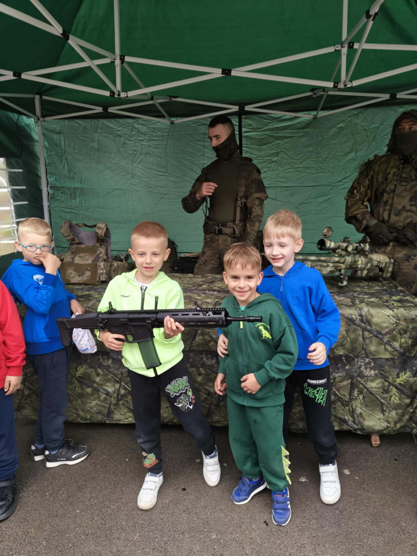Uczniowie mieli również okazję zapoznać się ze sprzętem wojskowym dzięki uprzejmości 5. Batalionu Strzelców Podhalańskich. Spotkanie to przybliżyło dzieciom specyfikę zawodu żołnierza i wzbudziło wiele pozytywnych emocji.