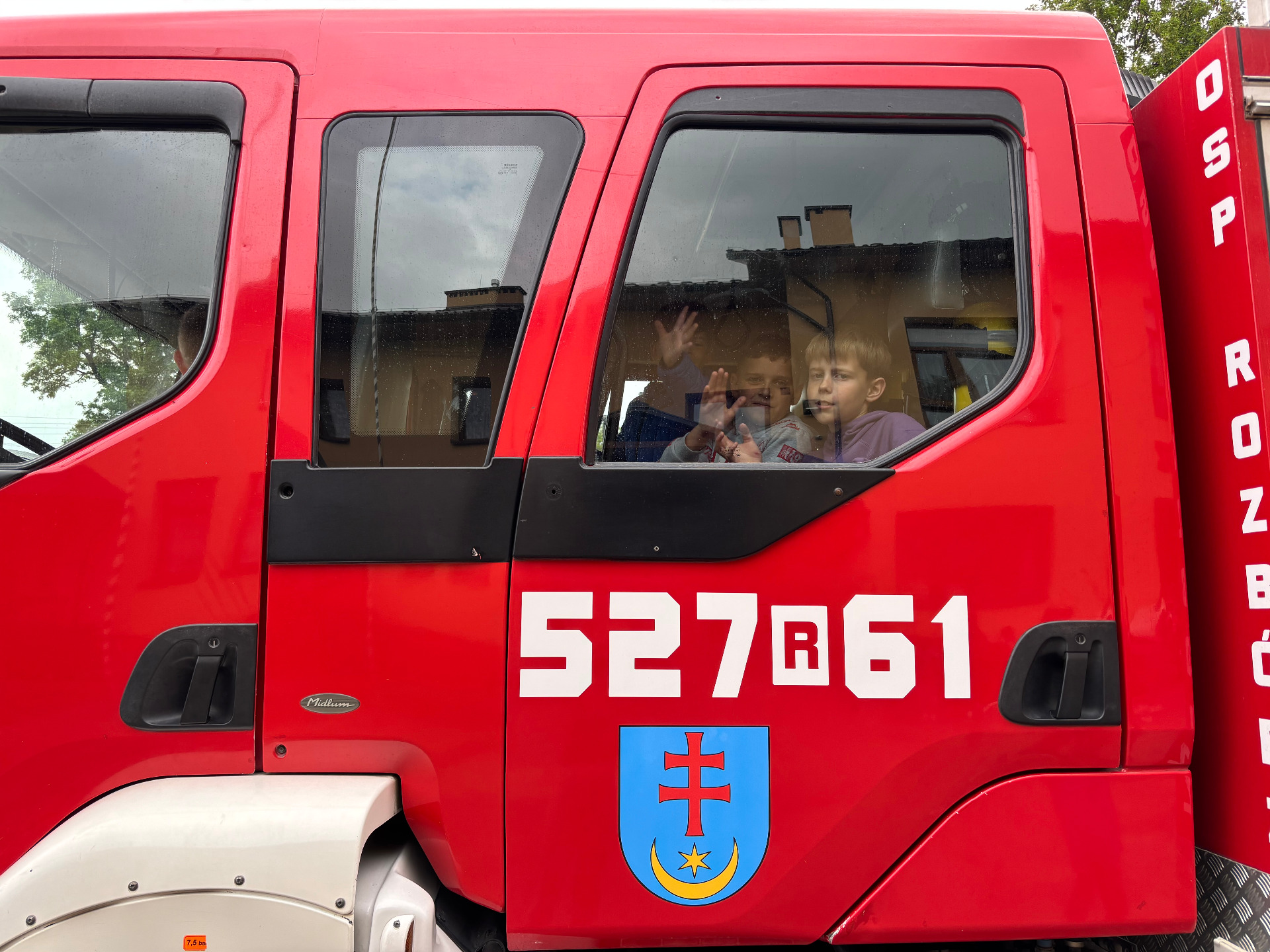 Wśród atrakcji znalazły się także pojazdy specjalne. Dzięki OSP Rozbórz dzieci mogły z bliska obejrzeć wóz strażacki oraz wsiąść do jego wnętrza. Dużym zainteresowaniem cieszył się również traktor udostępniony przez Pana Miłosława Maciołka – możliwość wejścia do kabiny i zapoznania się z budową maszyny była dla wielu uczniów wyjątkowym przeżyciem.