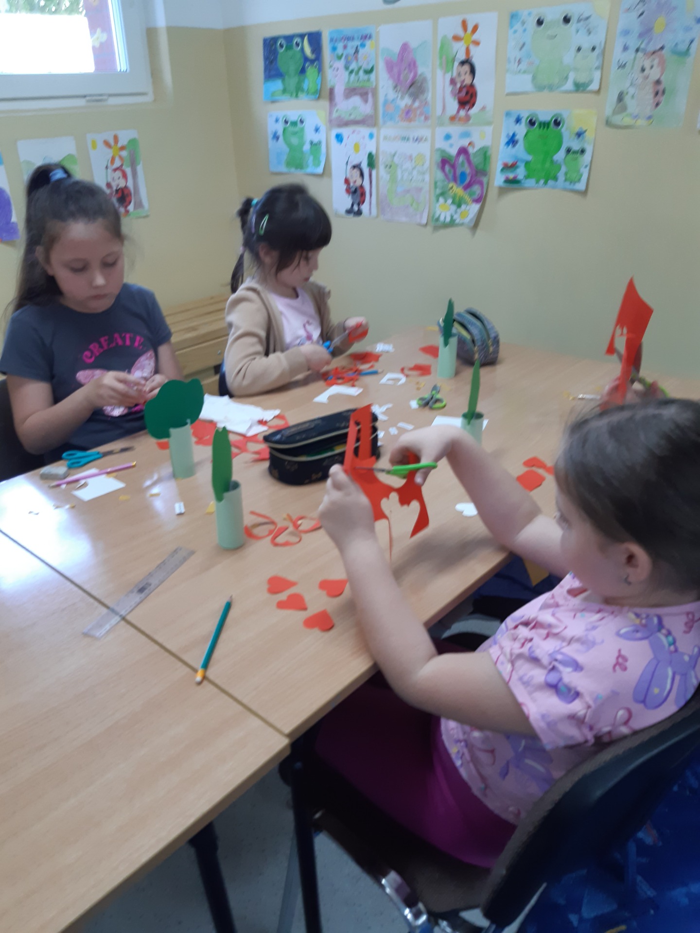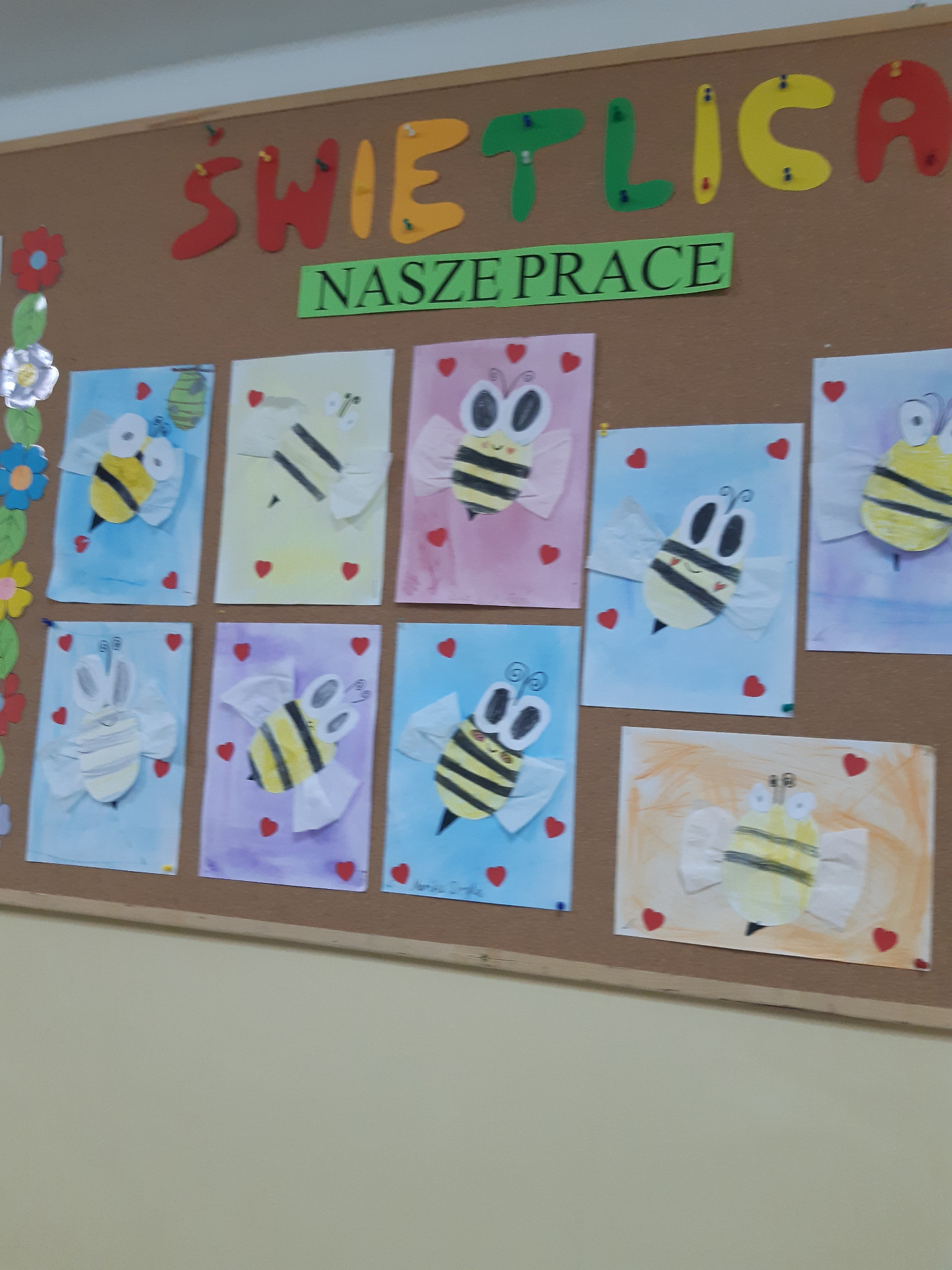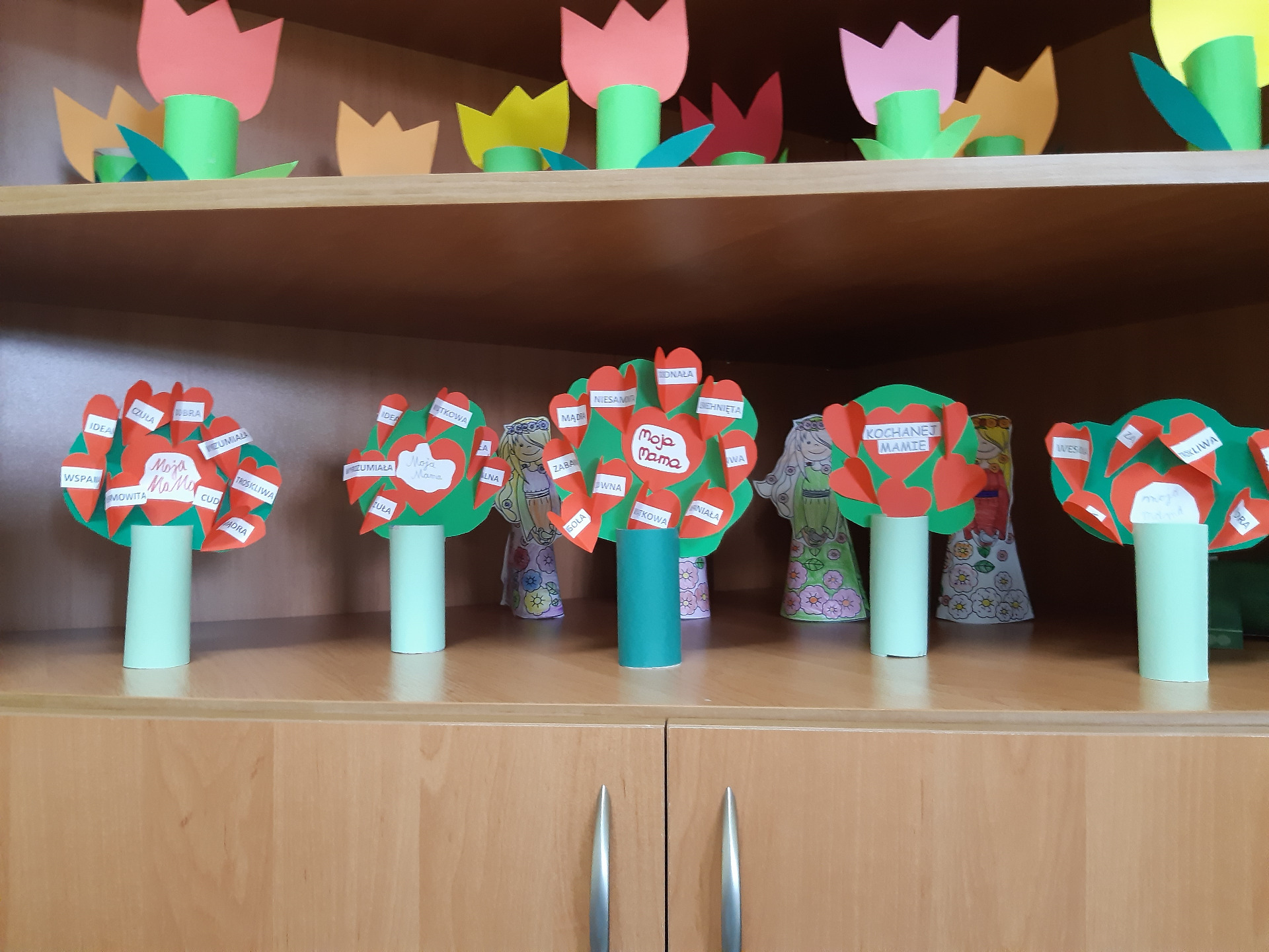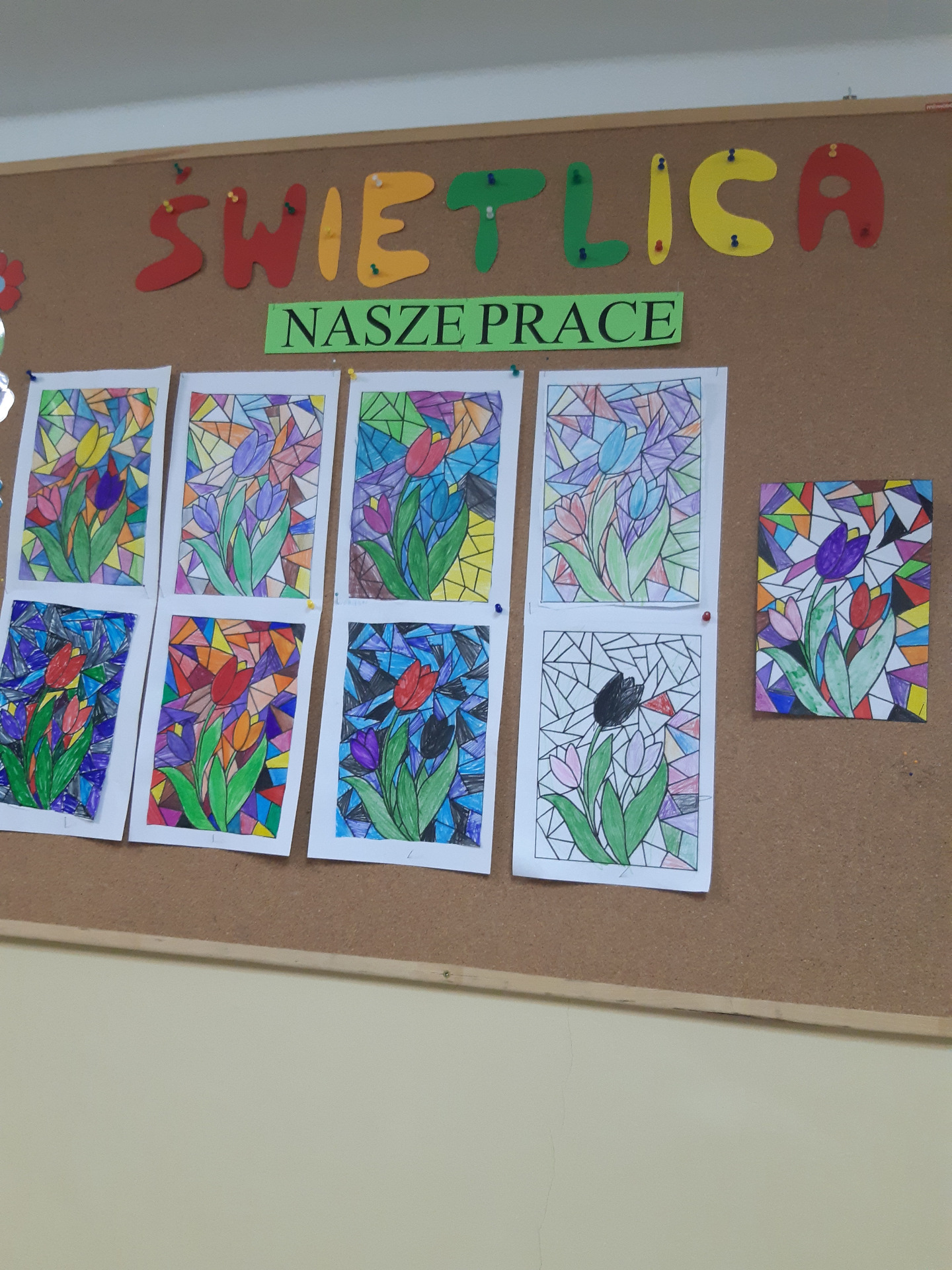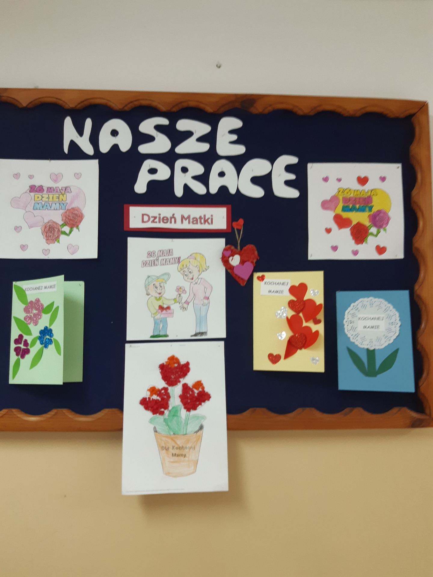 Po powrocie z wiosennej przerwy świątecznej, uczniowie korzystający ze świetlicy szkolnej bardzo chętnie uczestniczyli w różnych formach zajęć: plastycznych, technicznych, edukacyjnych, ruchowych, które tematycnie związane były m.in. z obchodami Dnia Ziemi, Rocznicą Uchwalenia Konstytucji 3-go Maja, Dniem Mamy i Taty, Dniem Dziecka. Wykonywali laurki, upominki dla mamy i taty, poznawali i wykonywali symbole narodowe.