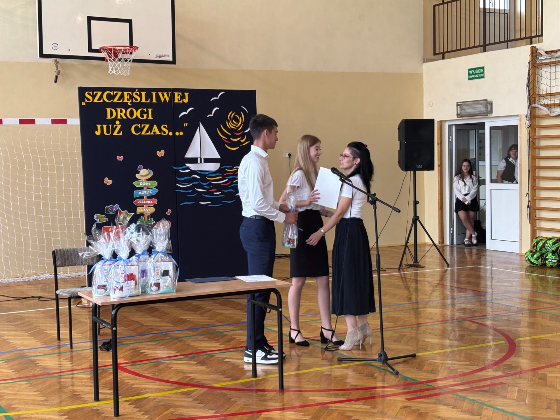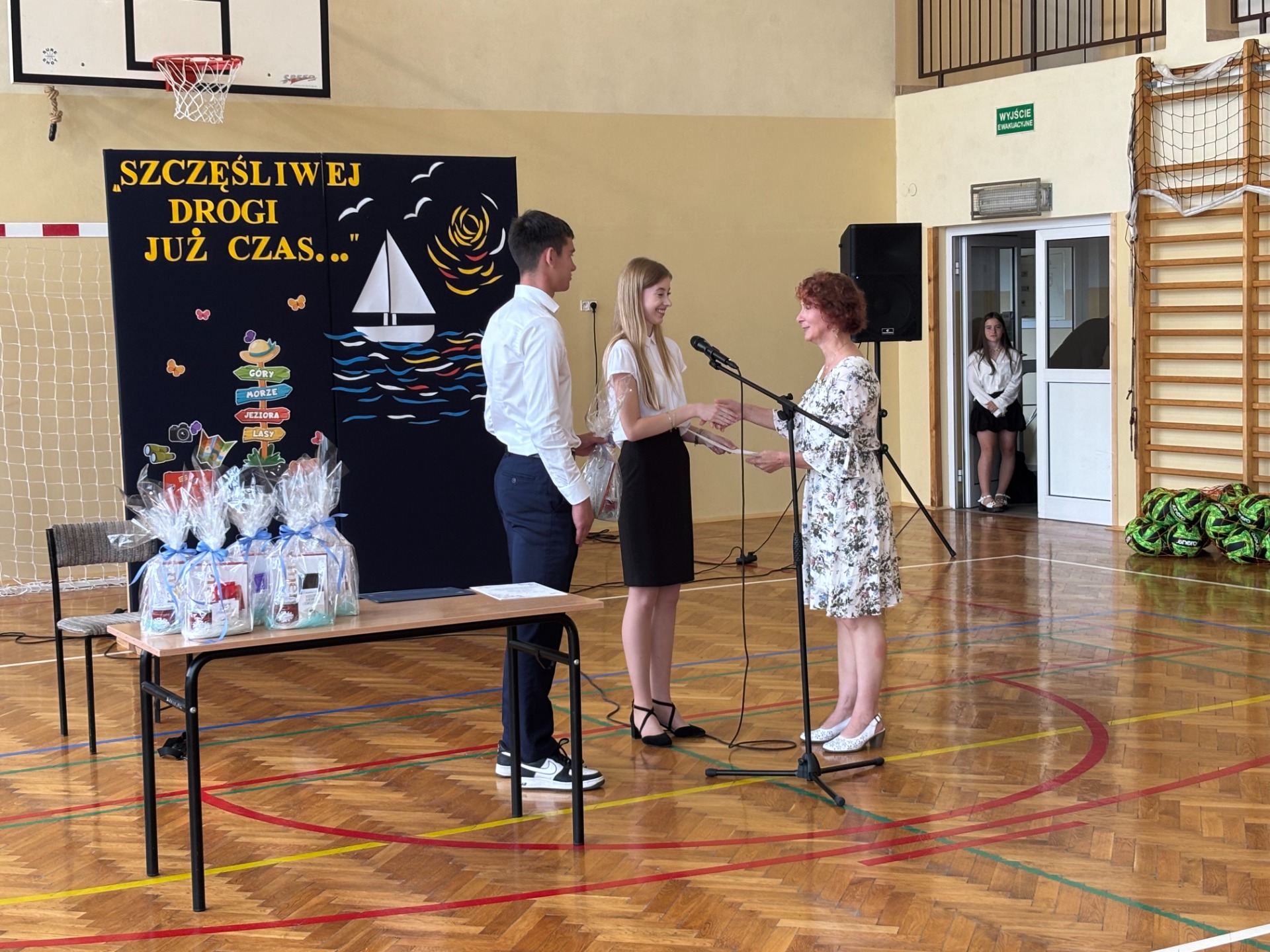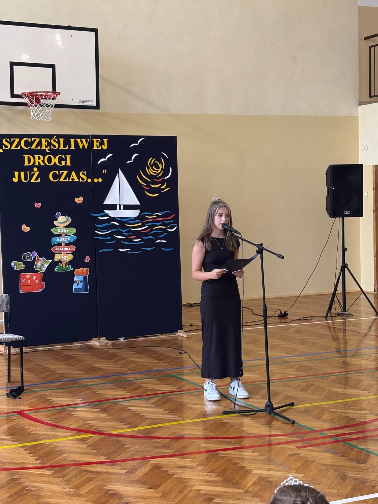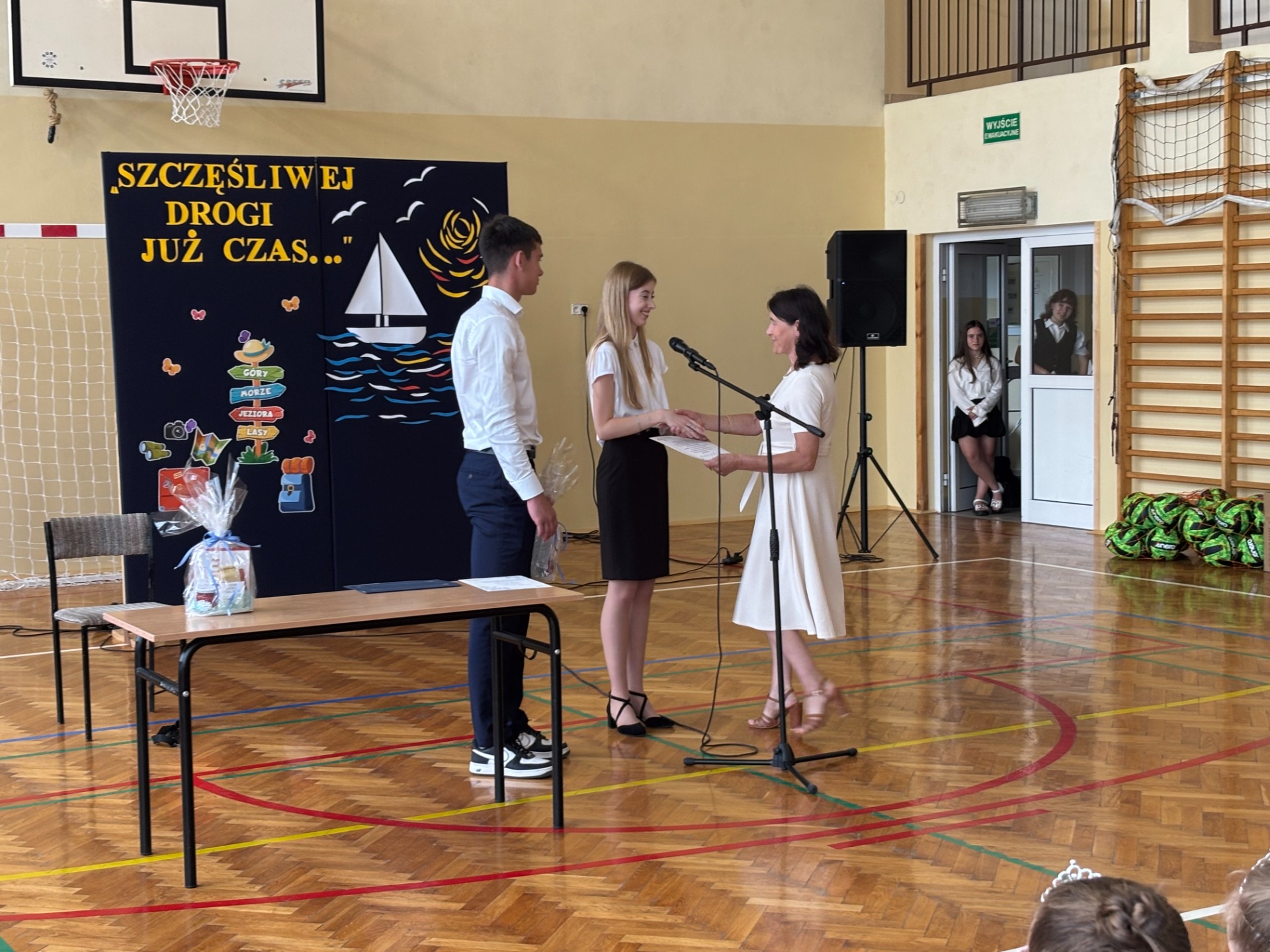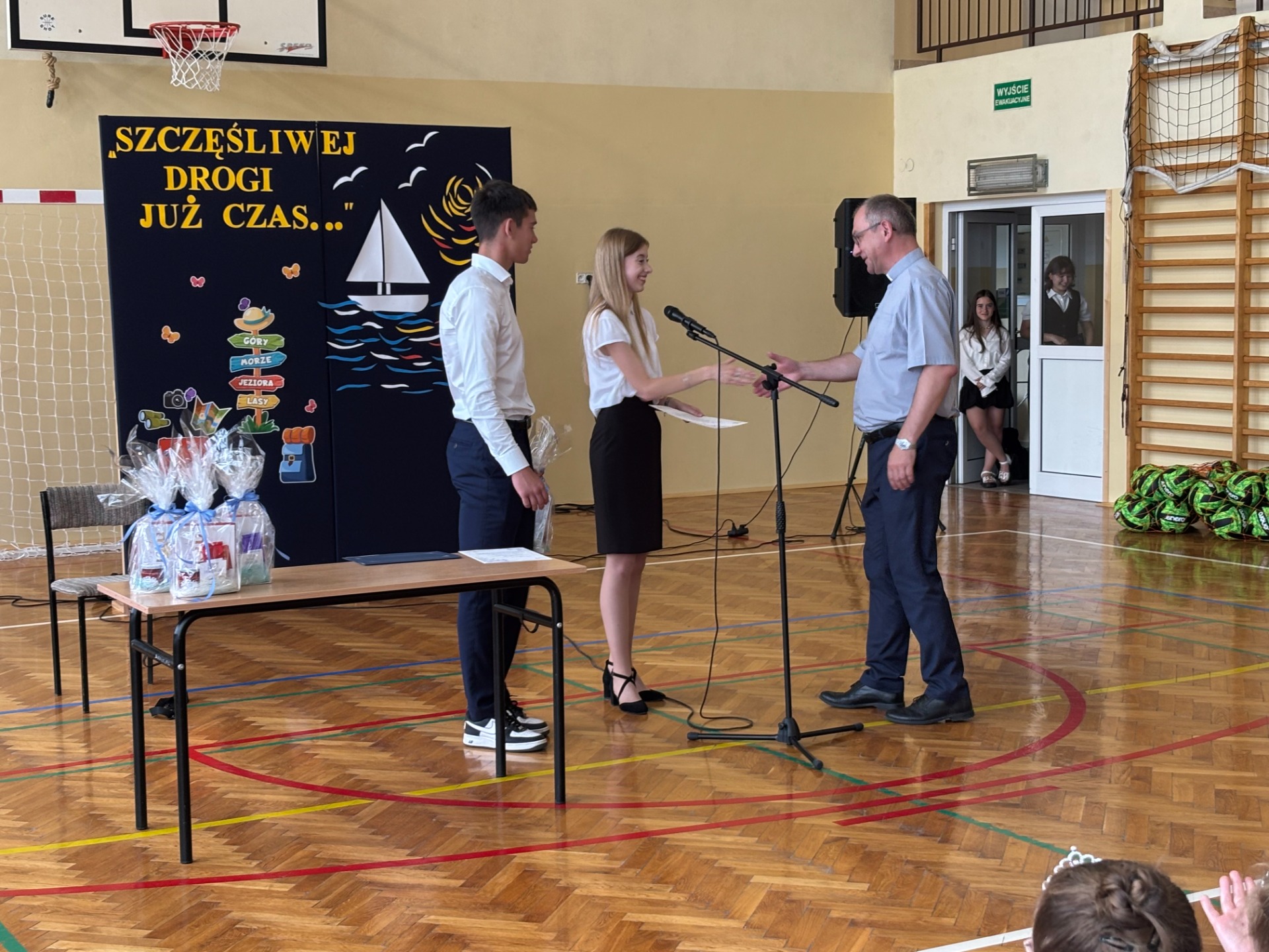 Dnia 27 czerwca 2025r. w naszej szkole odbyło się uroczyste zakończenie roku szkolnego 2024/2025. Cała społeczność szkolna na czele z pocztem sztandarowym wybrała się najpierw na Mszę Świętą do Kościoła. Później wszyscy – uczniowie, pracownicy naszej szkoły oraz rodzice udali się na salę gimnastyczną, gdzie nastąpiła ceremonia przekazania Sztandaru Szkoły i ślubowanie. Następnie przyszedł czas na część artystyczną przygotowaną przez klasę 8 oraz zerówkę. Po humorystycznym przedstawieniu i wręczeniu nauczycielom podziękowań przyszedł długo wyczekiwany moment pożegnania naszych absolwentów. Pani Dyrektor rozdała nagrody za wysokie wyniki w nauce oraz osiągnięcia. Podziękowania zostały złożone również rodzicom. Po zakończeniu akademii wszyscy uczniowie udali się ze swoimi wychowawcami do klas, gdzie zostały wręczone im świadectwa. Następnie podzielili się swoimi planami na wakacje, pożegnali się i opuścili mury tej szkoły.