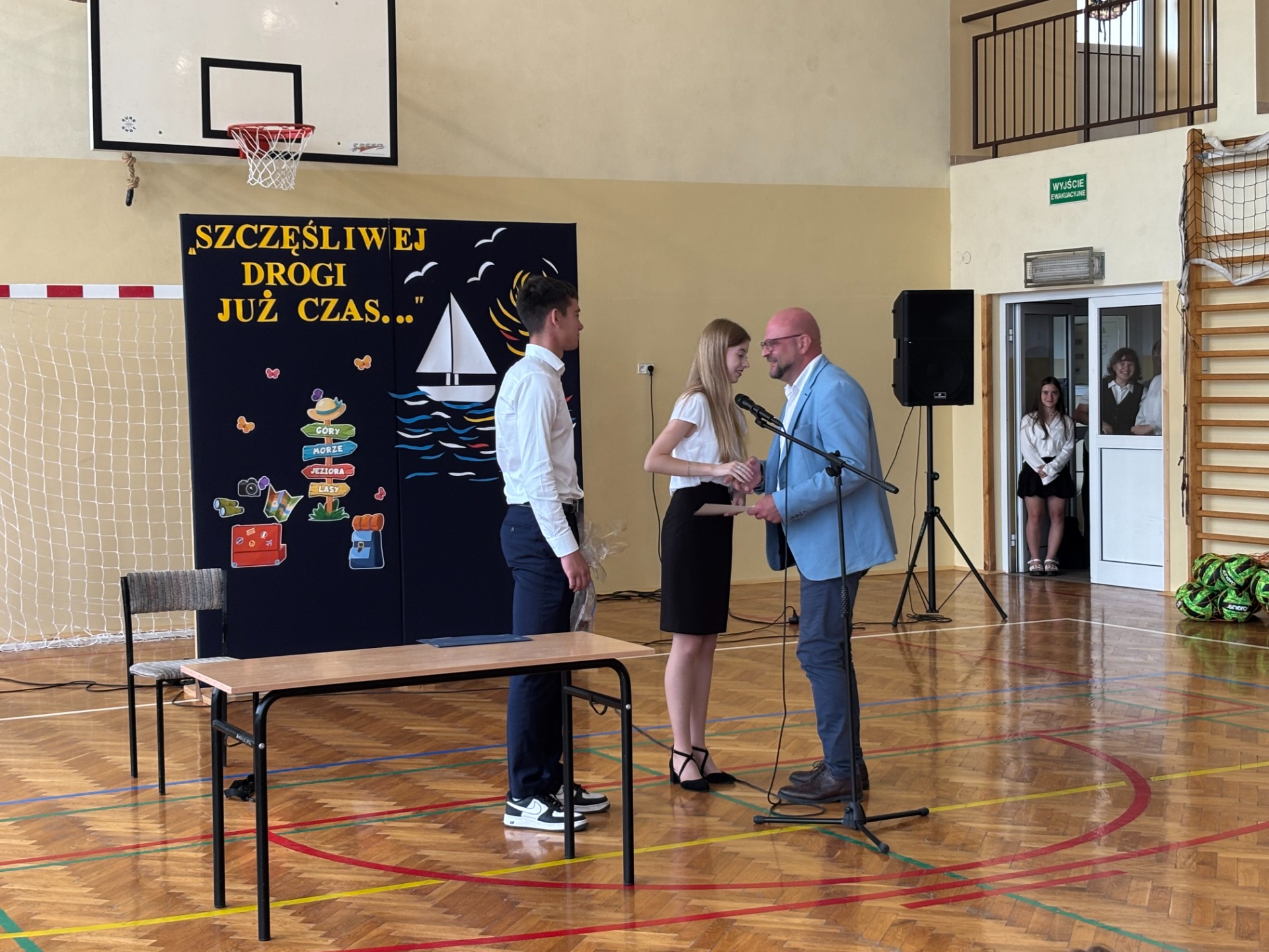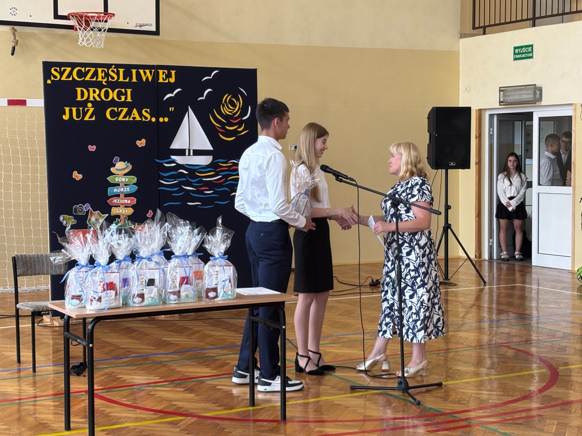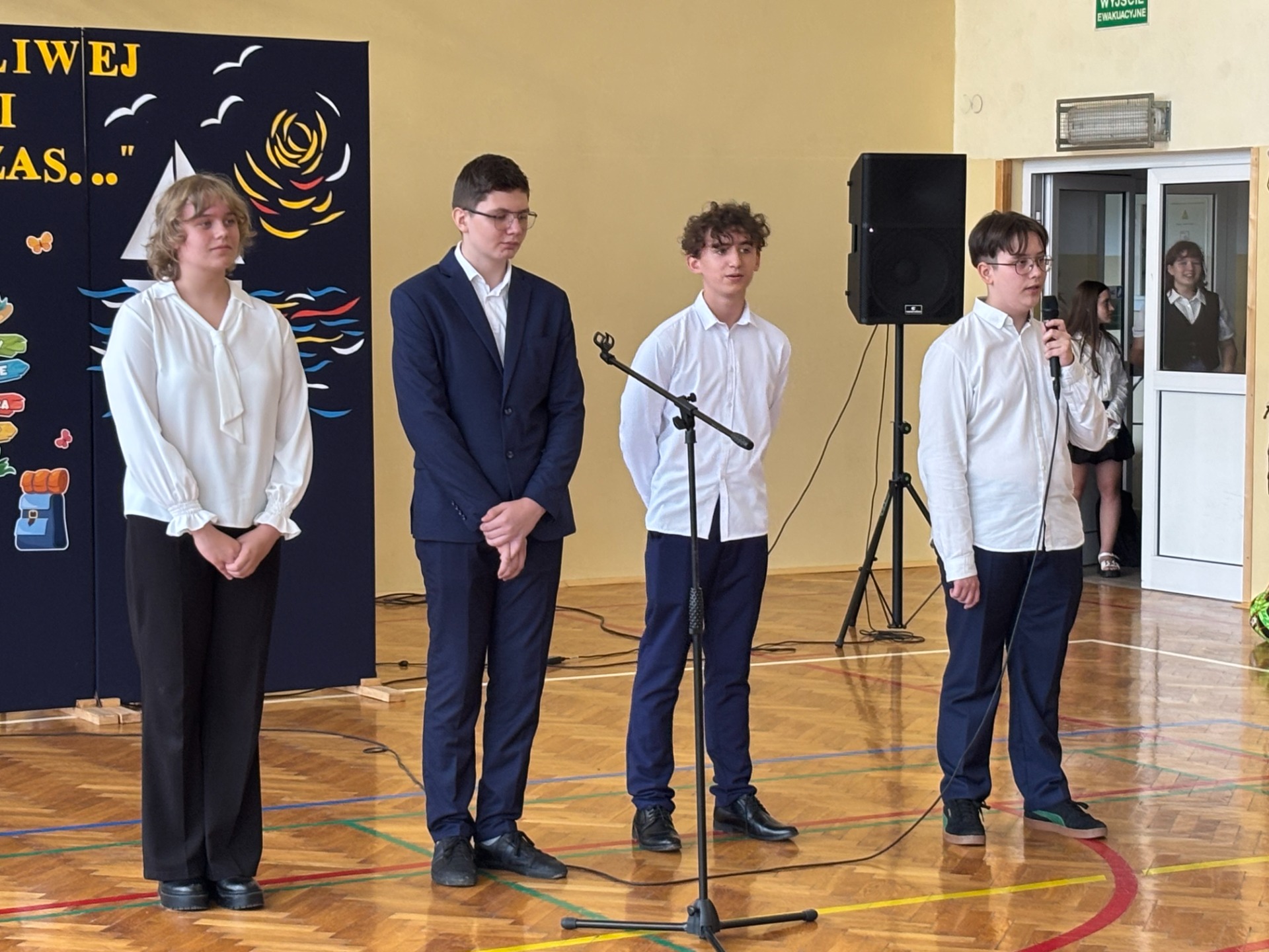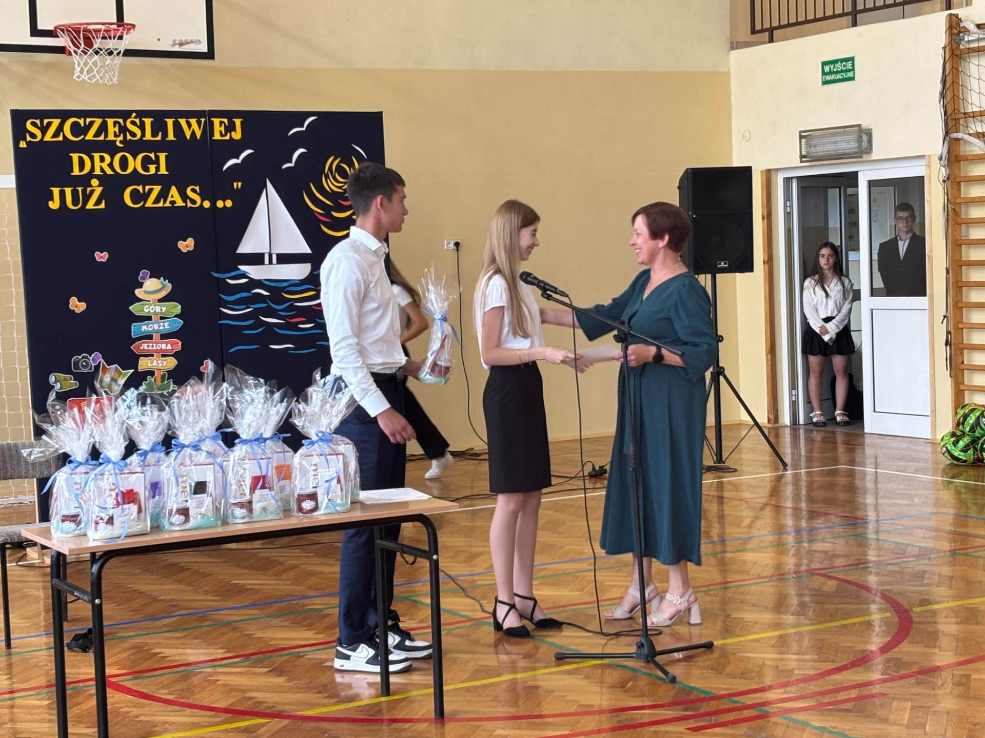 Dnia 27 czerwca 2025r. w naszej szkole odbyło się uroczyste zakończenie roku szkolnego 2024/2025. Cała społeczność szkolna na czele z pocztem sztandarowym wybrała się najpierw na Mszę Świętą do Kościoła. Później wszyscy – uczniowie, pracownicy naszej szkoły oraz rodzice udali się na salę gimnastyczną, gdzie nastąpiła ceremonia przekazania Sztandaru Szkoły i ślubowanie. Następnie przyszedł czas na część artystyczną przygotowaną przez klasę 8 oraz zerówkę. Po humorystycznym przedstawieniu i wręczeniu nauczycielom podziękowań przyszedł długo wyczekiwany moment pożegnania naszych absolwentów. Pani Dyrektor rozdała nagrody za wysokie wyniki w nauce oraz osiągnięcia. Podziękowania zostały złożone również rodzicom. Po zakończeniu akademii wszyscy uczniowie udali się ze swoimi wychowawcami do klas, gdzie zostały wręczone im świadectwa. Następnie podzielili się swoimi planami na wakacje, pożegnali się i opuścili mury tej szkoły.