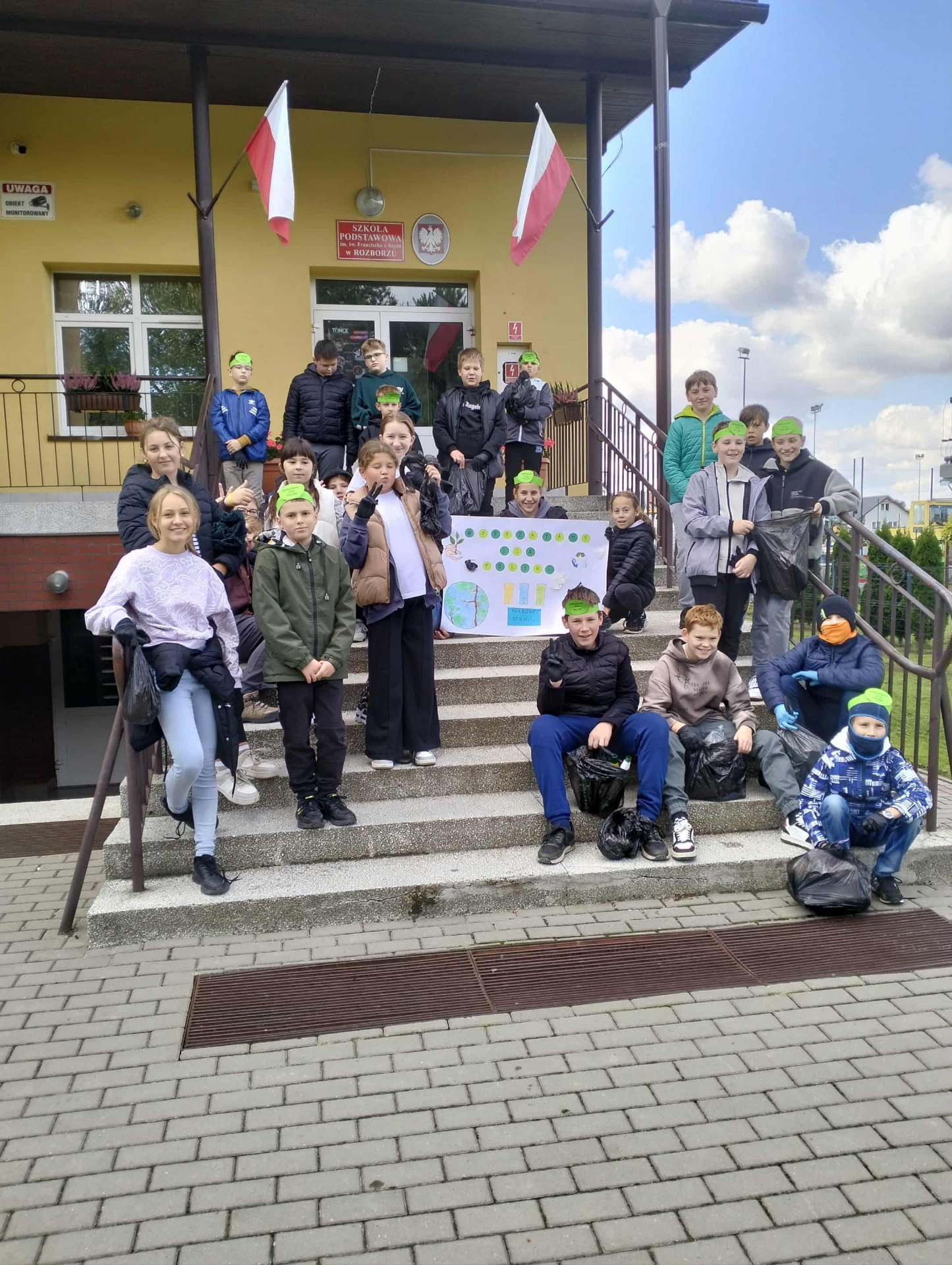 W akcji uczestniczyli uczniowie klas 5 i 6, którzy z ogromnym zaangażowaniem włączyli się w działania na rzecz ochrony środowiska. Młodzież nie tylko posprzątała okolice szkoły i przydrożne rowy, ale również wcześniej przygotowała plakaty promujące wydarzenie oraz opaski na głowę, podkreślające wspólny cel i ducha współpracy.