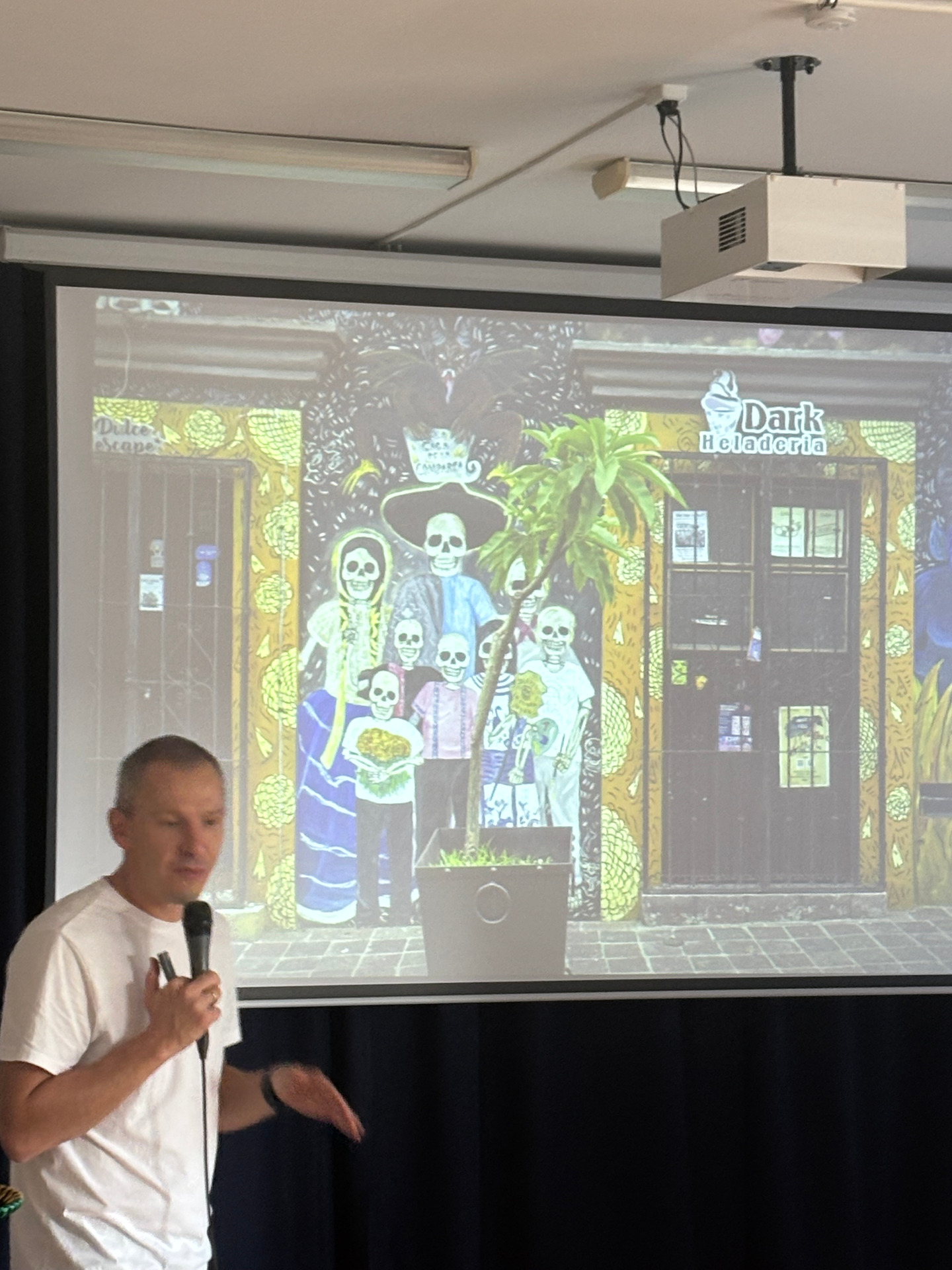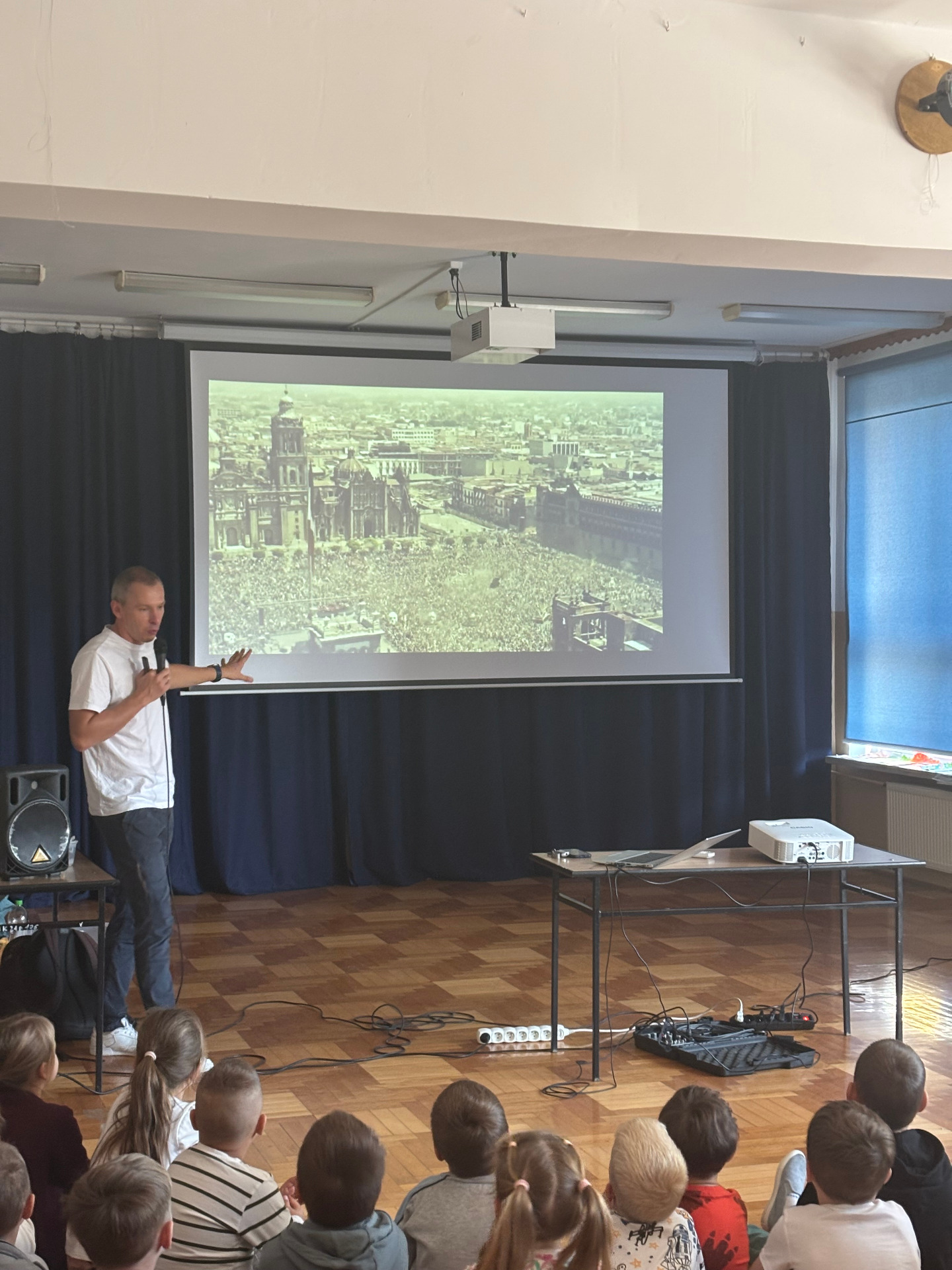 6 października naszą szkołę odwiedził wyjątkowy gość – pan Grzegorz Chachura, podróżnik z grupy „Trzask”. Podczas niezwykle barwnej prezentacji zabrał nas w fascynującą podróż do Meksyku – kraju, który zachwyca nie tylko malowniczymi krajobrazami i bajecznymi plażami, ale także bogactwem kultury i tradycji.