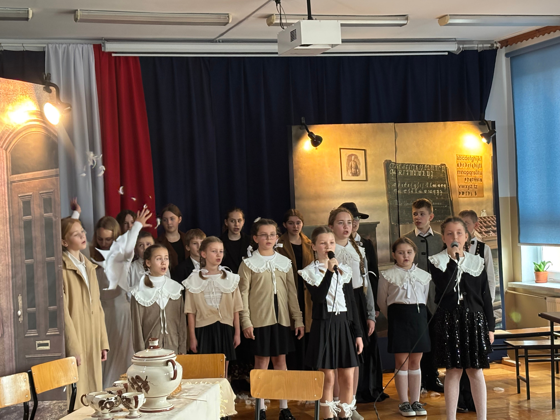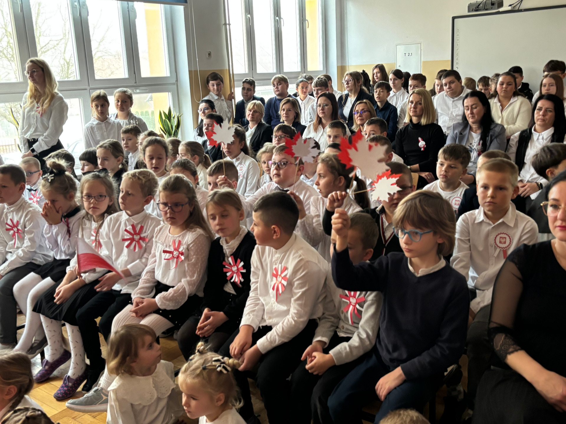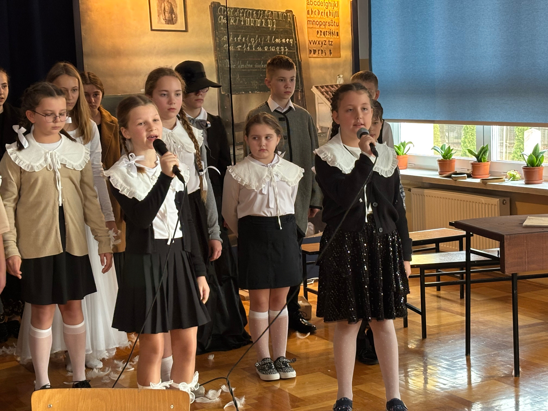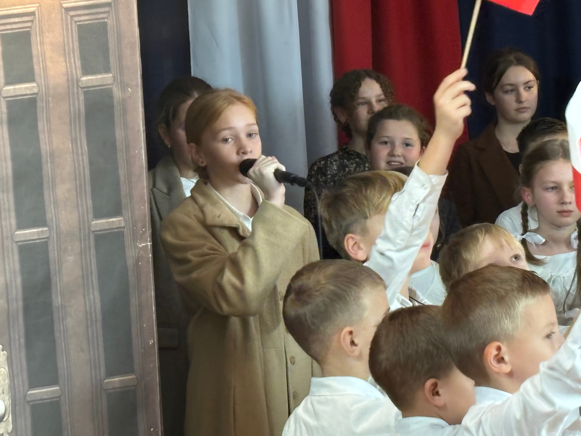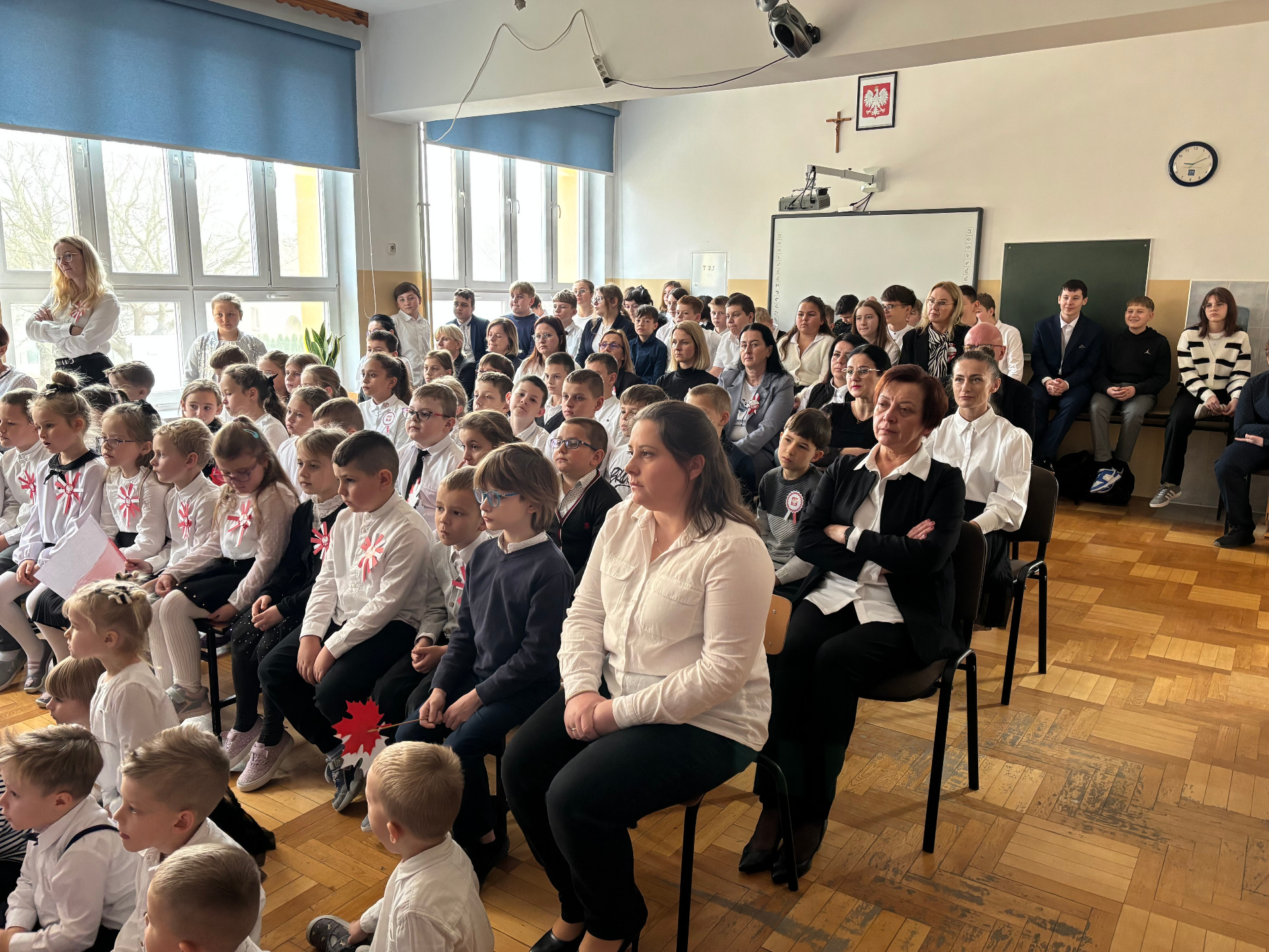 Całość dopełniły pieśni i piosenki patriotyczne w wykonaniu chóru szkolnego, solistów oraz uczniów klasy pierwszej, które nadały wydarzeniu wyjątkowy, wzruszający charakter.