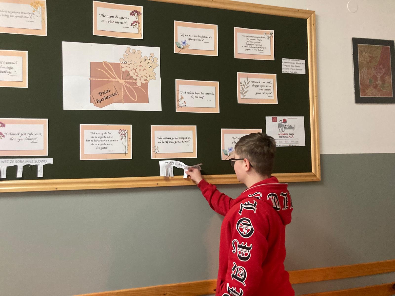 Po klasach wędrowało pudełeczko życzliwości, z którego wybrani uczniowie losowali karteczki z miłym słowem.