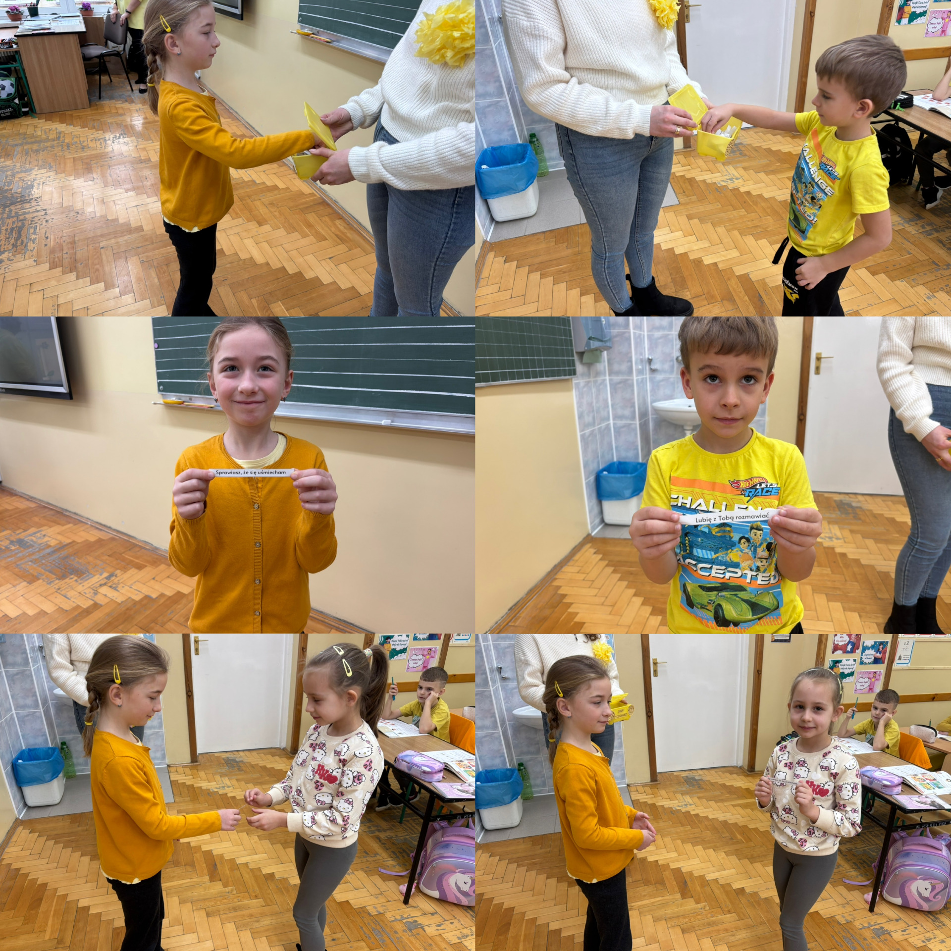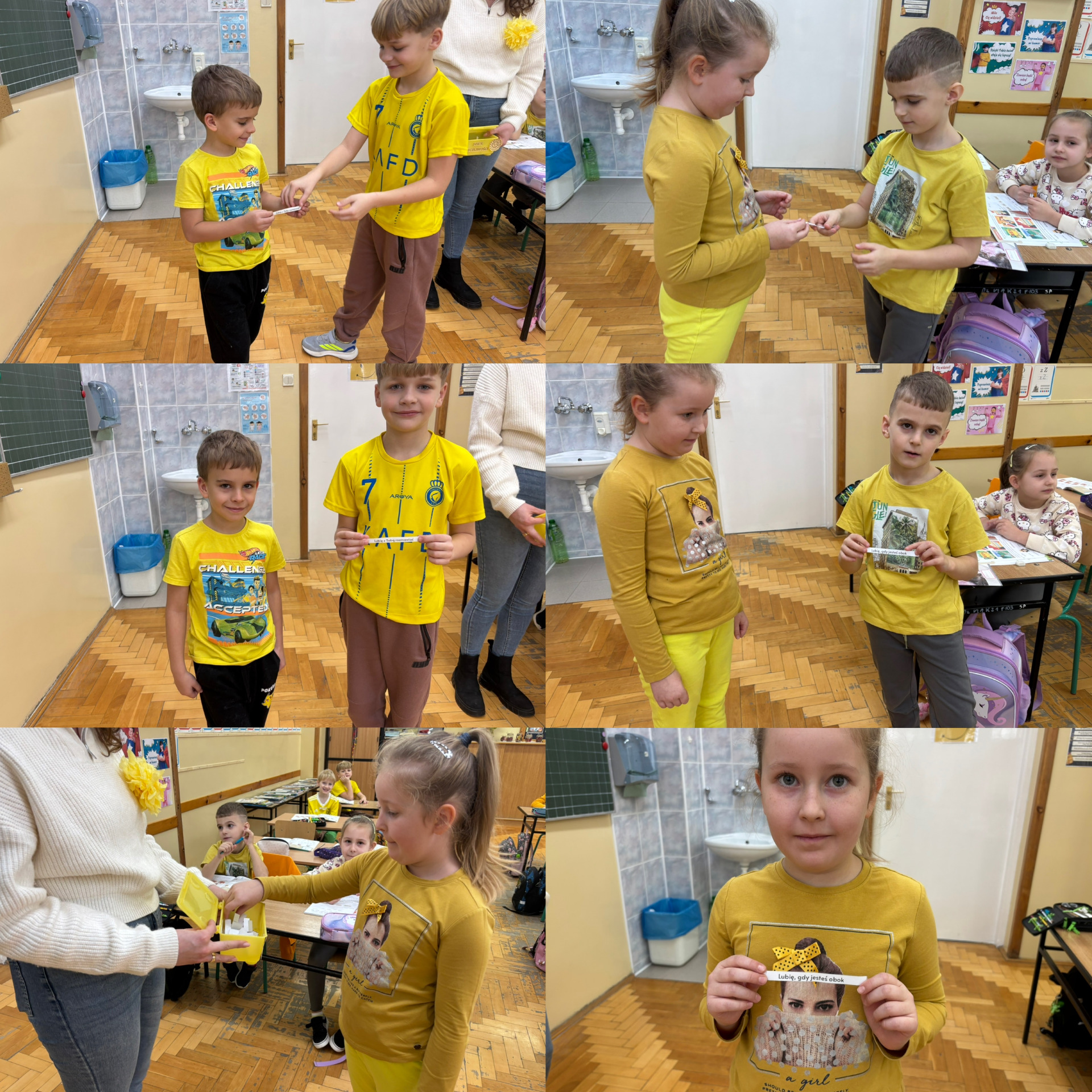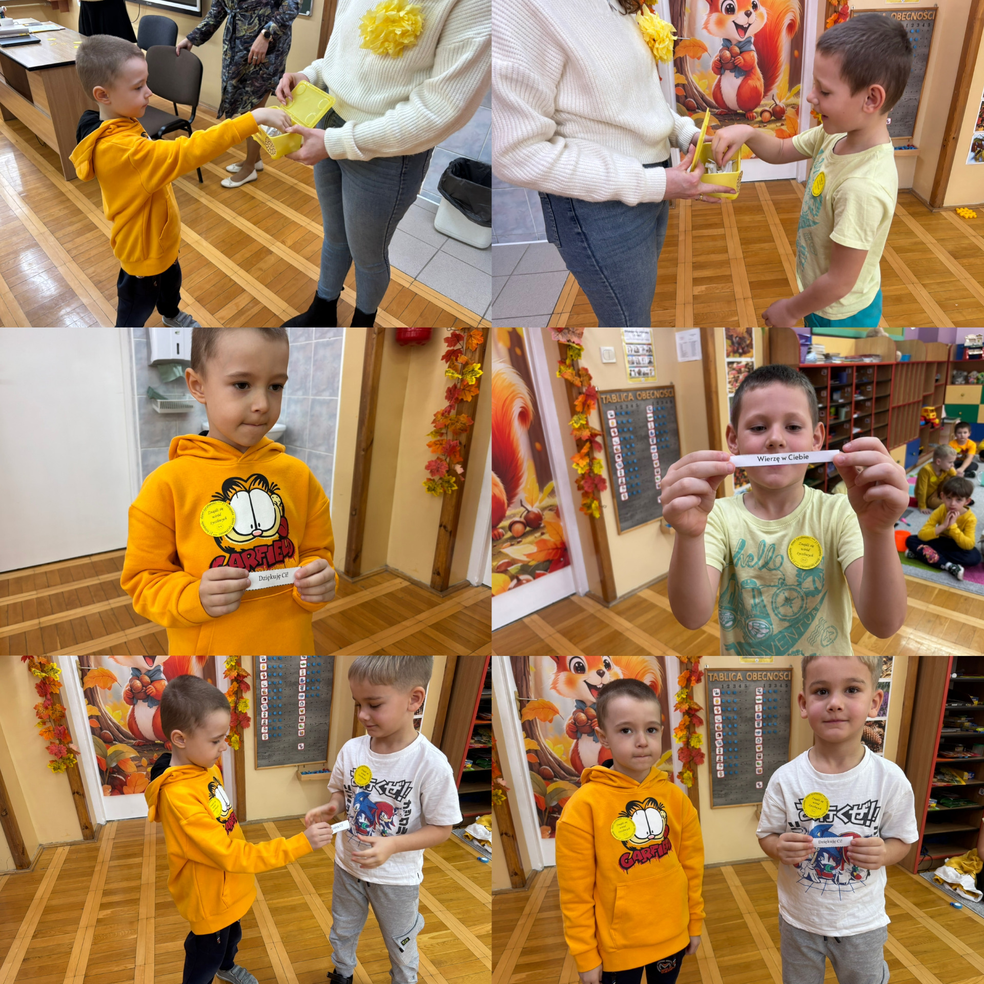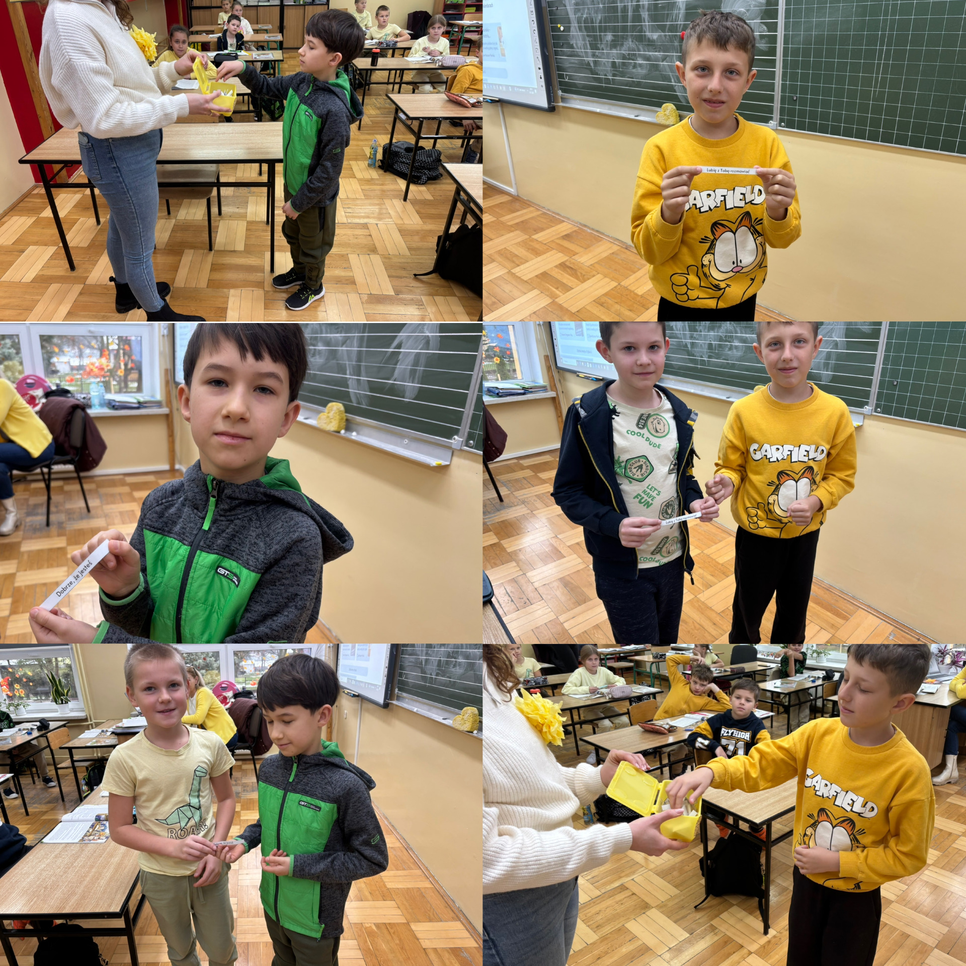 Każda dobra wiadomość trafiała do wybranej osoby z klasy — a to nie był koniec zabawy! Karteczki zostawały z uczniami i krążyły dalej, wywołując uśmiechy i dobre emocje.