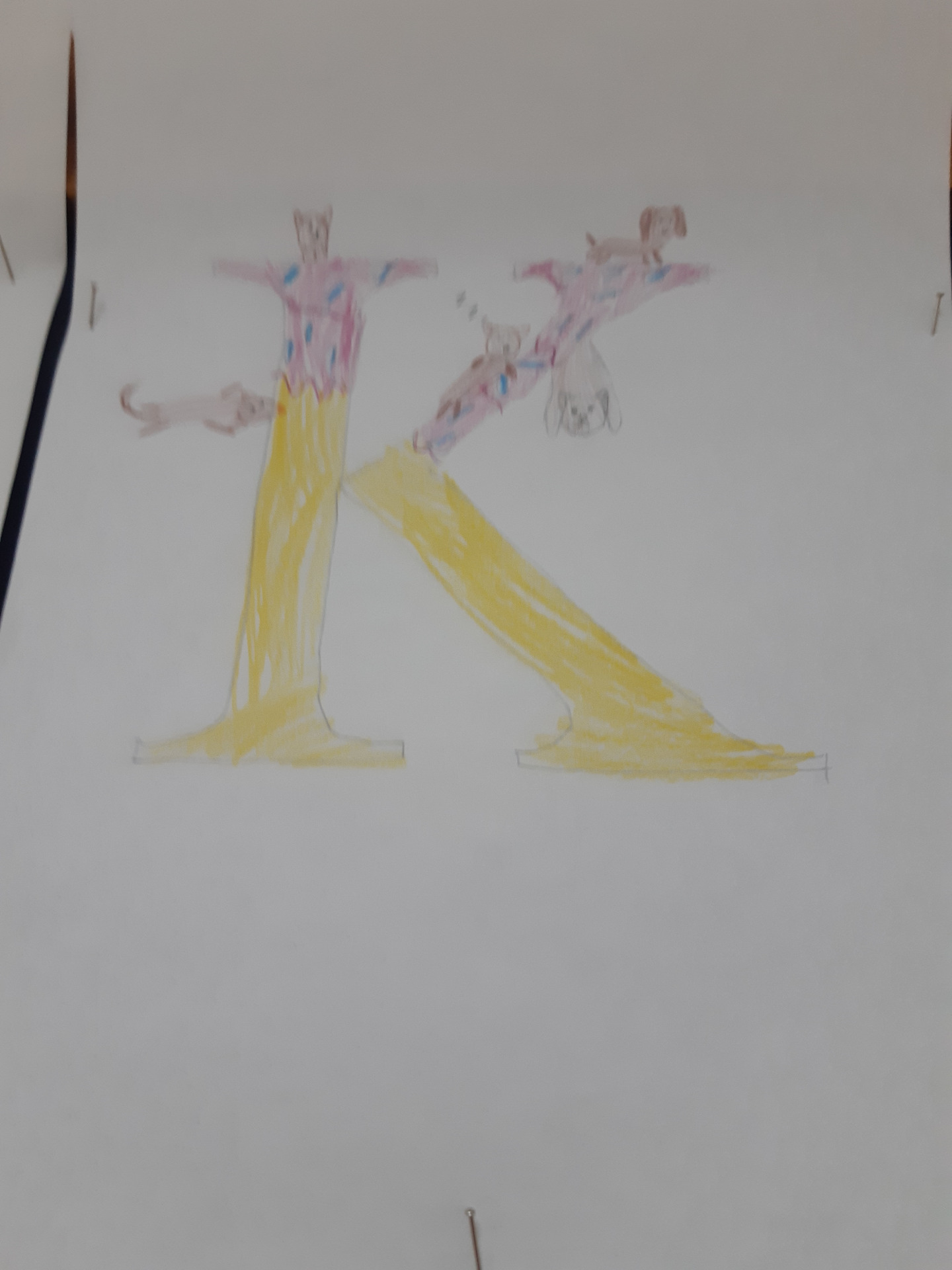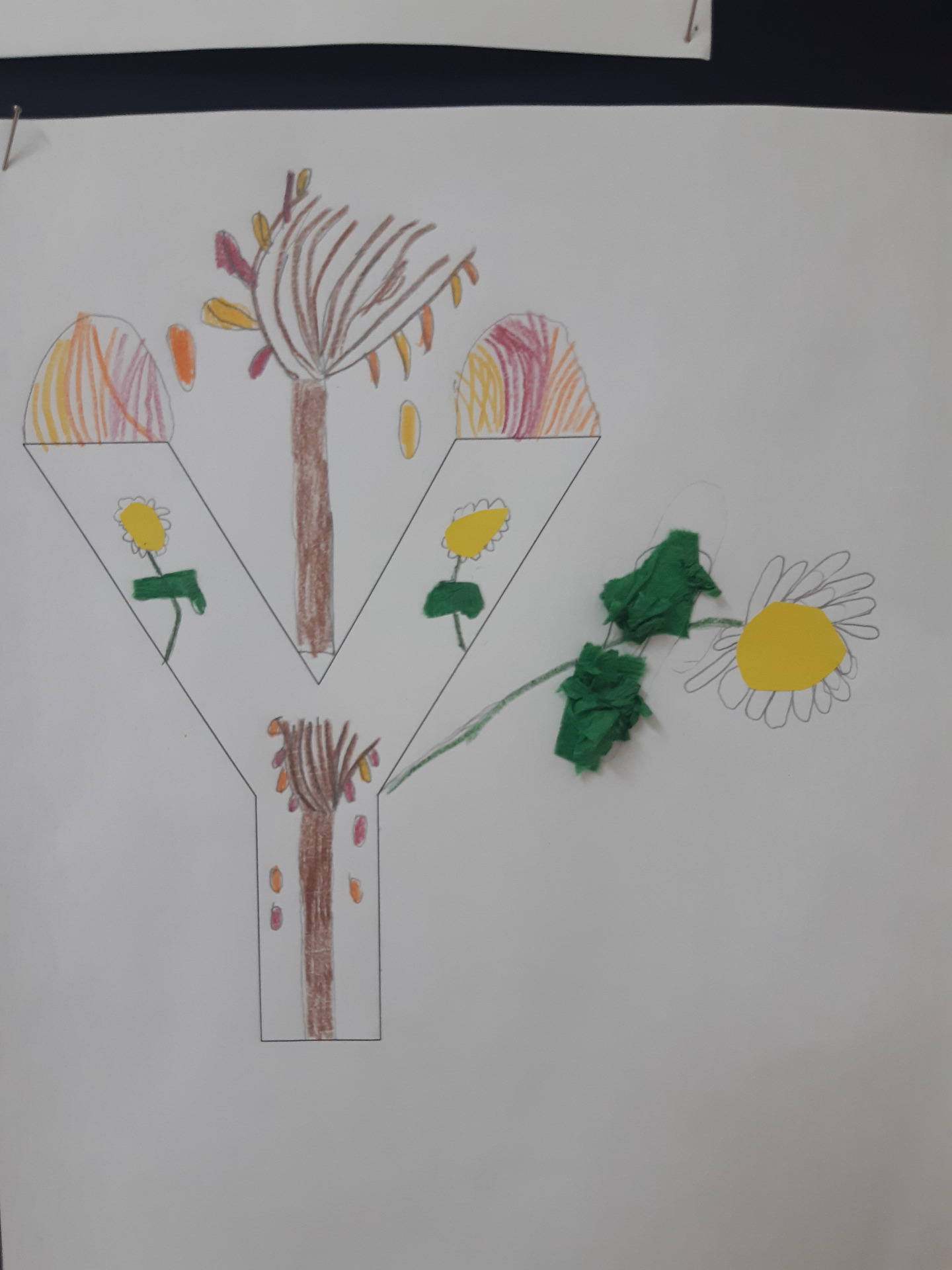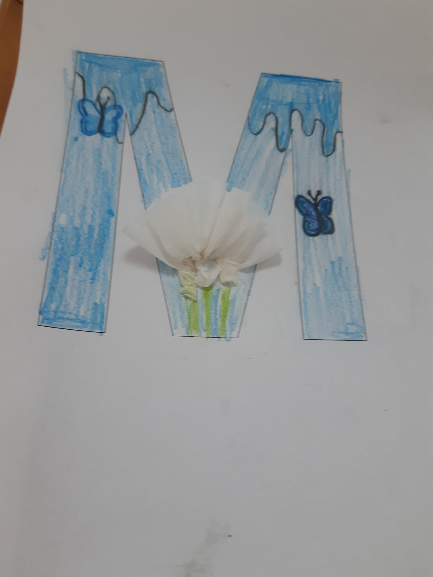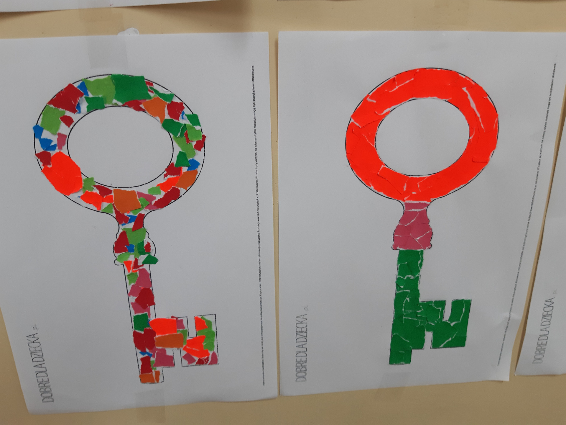 Obchodziliśmy również Święto Imion - uczniowie ozdabiali litery przez tworzenie kolaży z różnych materiałów na wydrukowanej literze, malowali kredkami i tworzyli własne wzory.