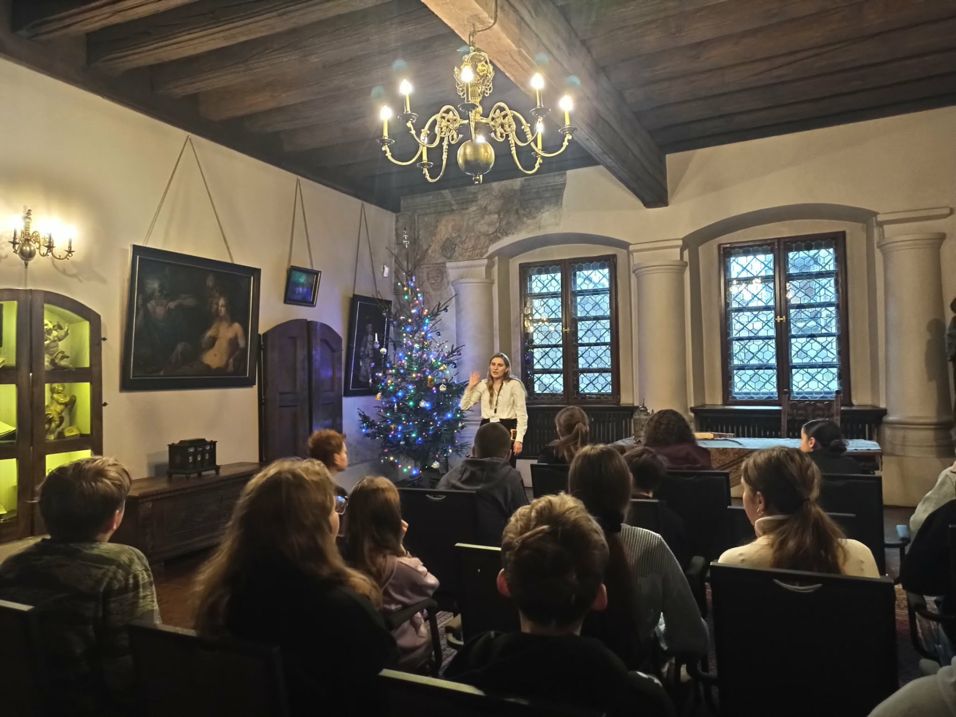 Uczniowie wzorowo zachowywali się w muzeum, byli zadowoleni iż niektóre eksponaty miały swoje repliki, które mogli dotknąć, a nawet na nich zagrać. Świetnie poradzili sobie z pytaniami, które zadawał im przewodnik. Mieli również własne ciekawe pytania dot. muzeum i jego eksponatów .