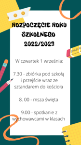 ROZPOCZĘCIE ROKU SZKOLNEGO 2022/2023
